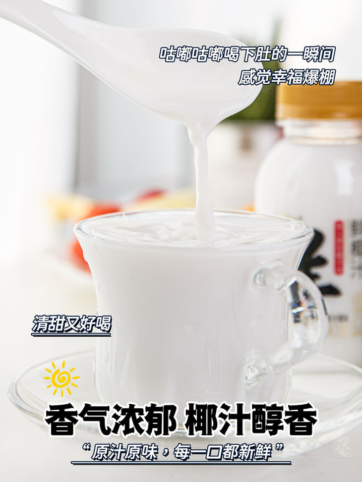 超鲜椰子肉生榨,无菌冷灌装,入口味道巨纯,椰香浓郁! 不添加香精 色素 防腐剂 椰子对身体好处超多的!不止味甘只可,还是天然的养肤佳品!!