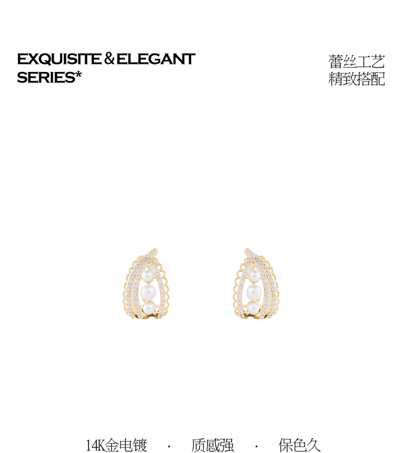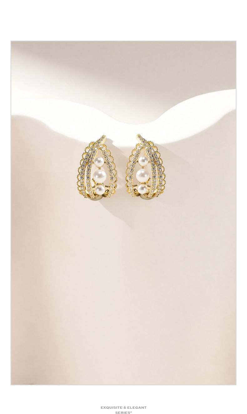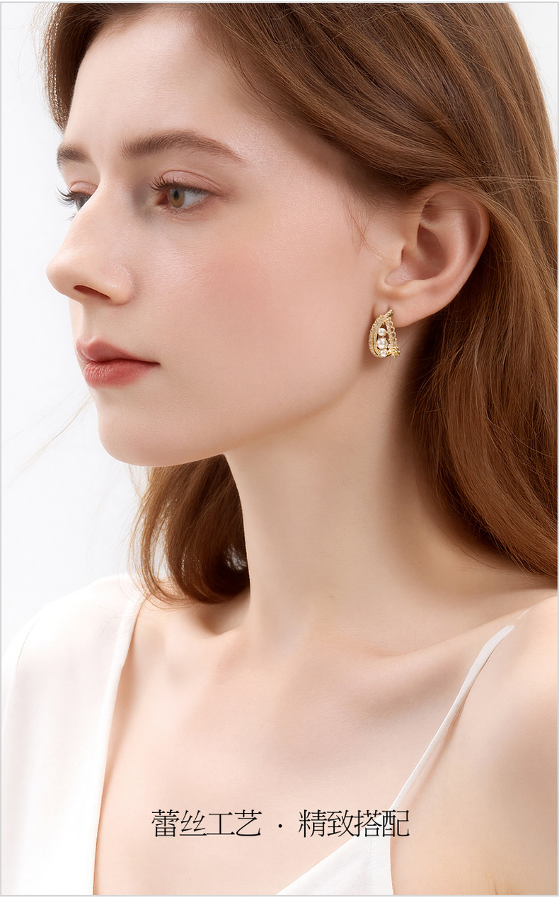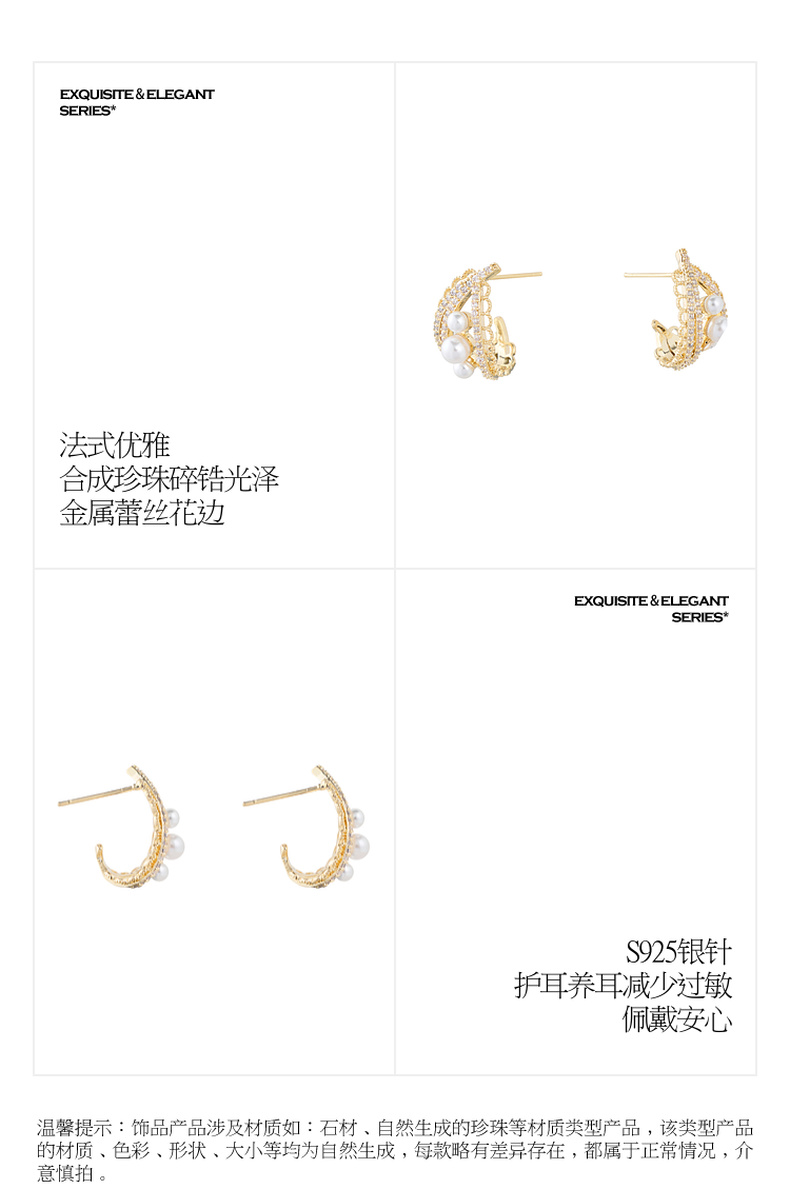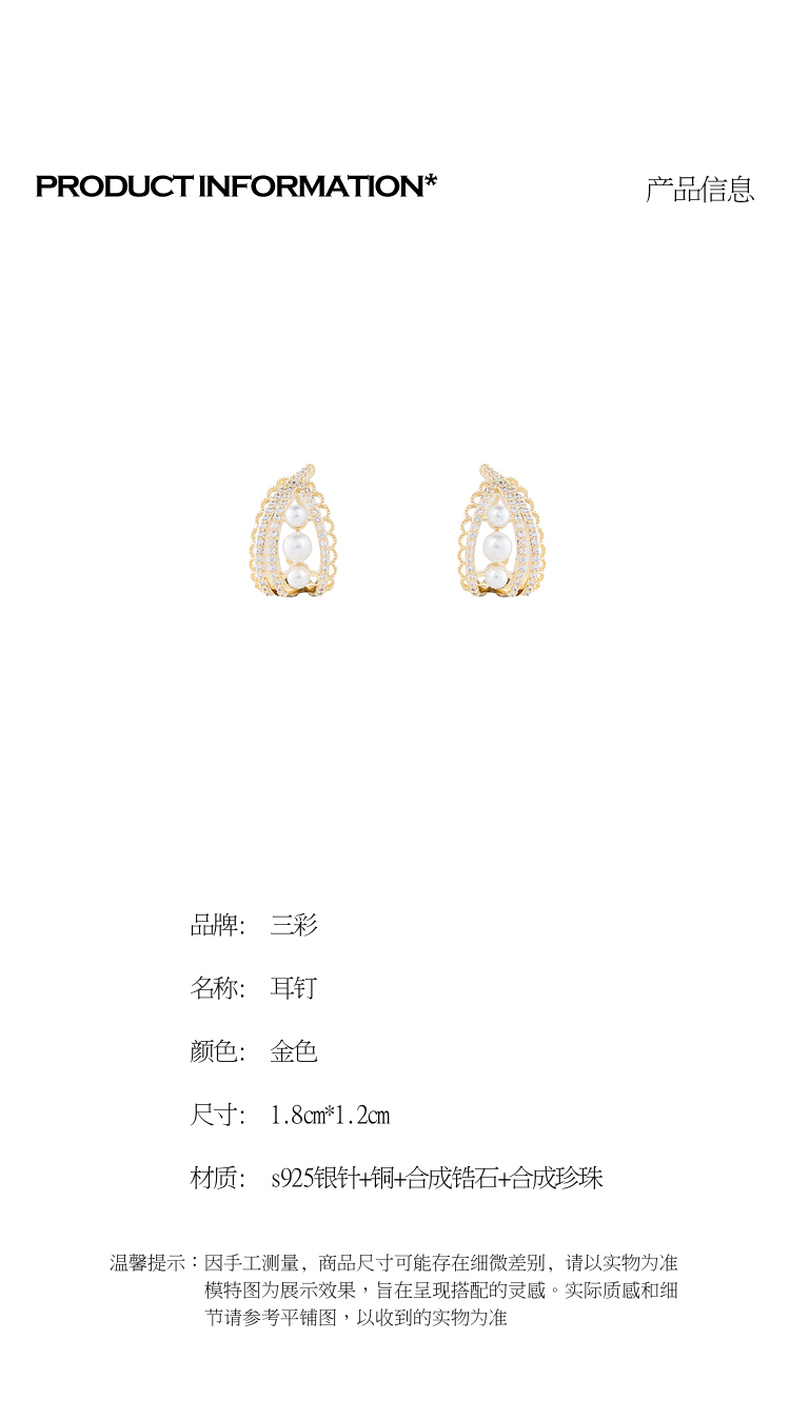三彩2026新款珍珠小碎锆石耳钉s925银针法式优雅香风通勤C形