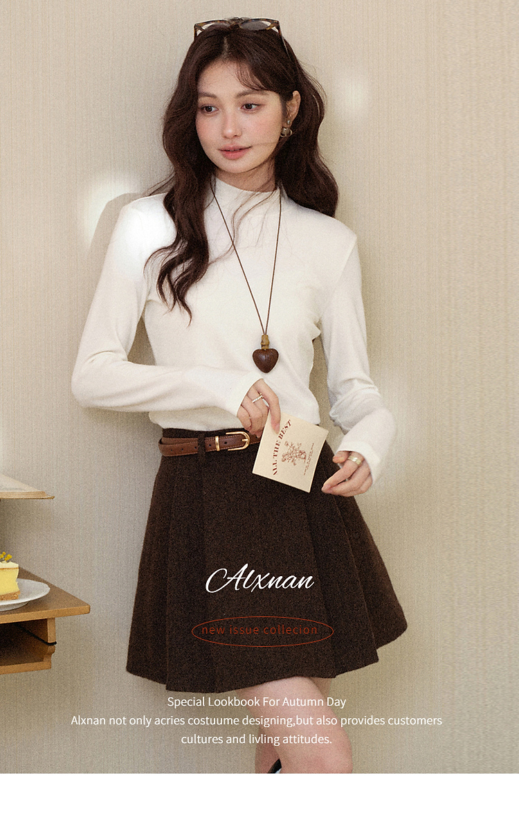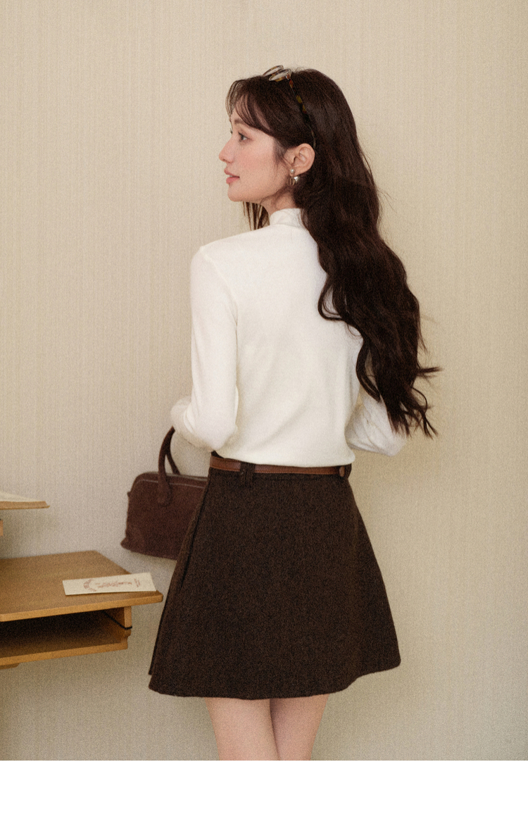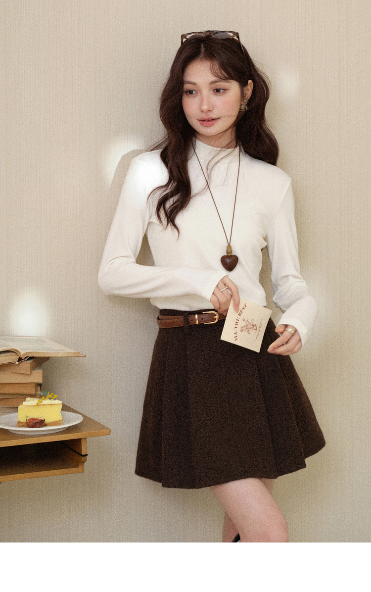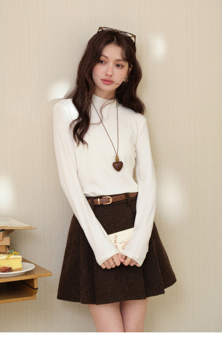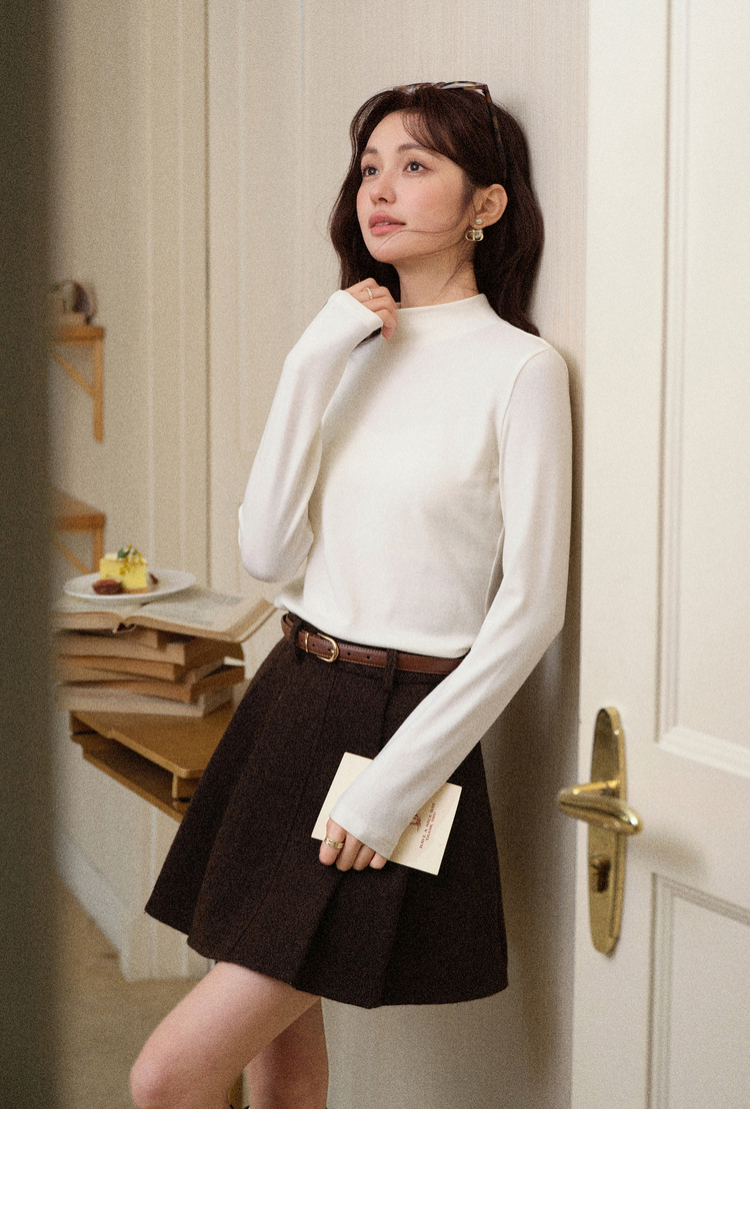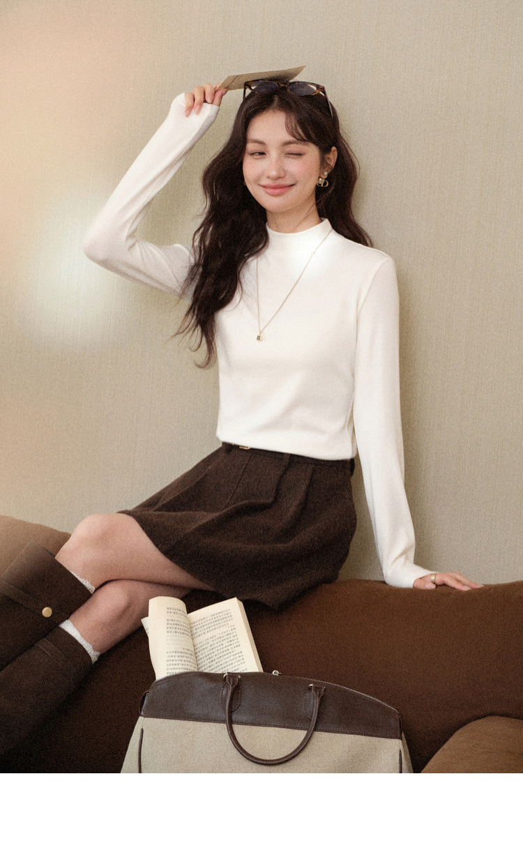 鹿向南「心素如简」白色修身长袖T恤女秋季打底衫显瘦内搭上衣