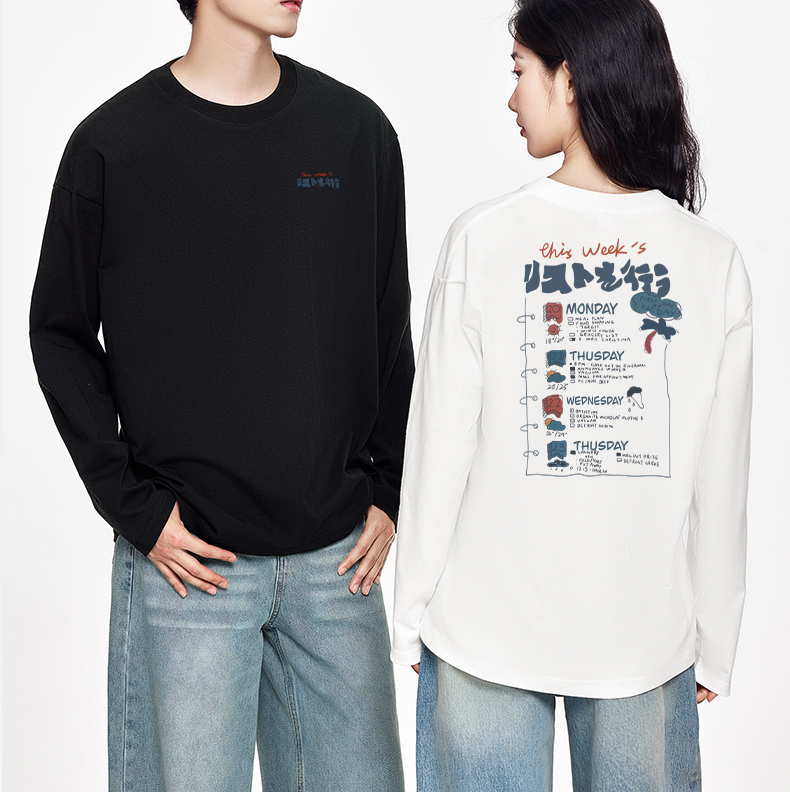 「棉的美学」萌趣卡通纯棉长袖T恤新款设计印花情侣同款打底上衣