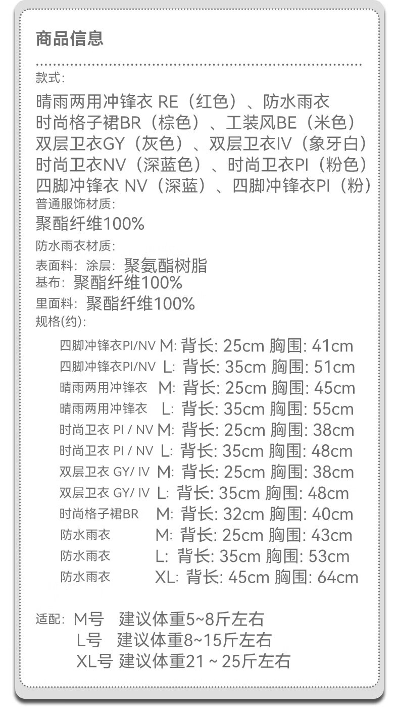 宠物衣服狗狗服饰冲锋衣休闲卫衣防水雨衣
