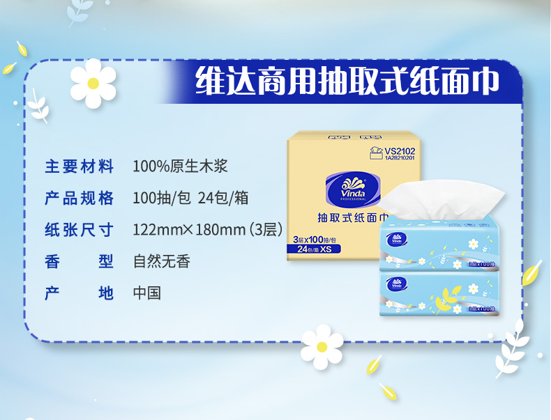 维达超韧抽取面巾3层S码100抽×24包(整箱装)2287