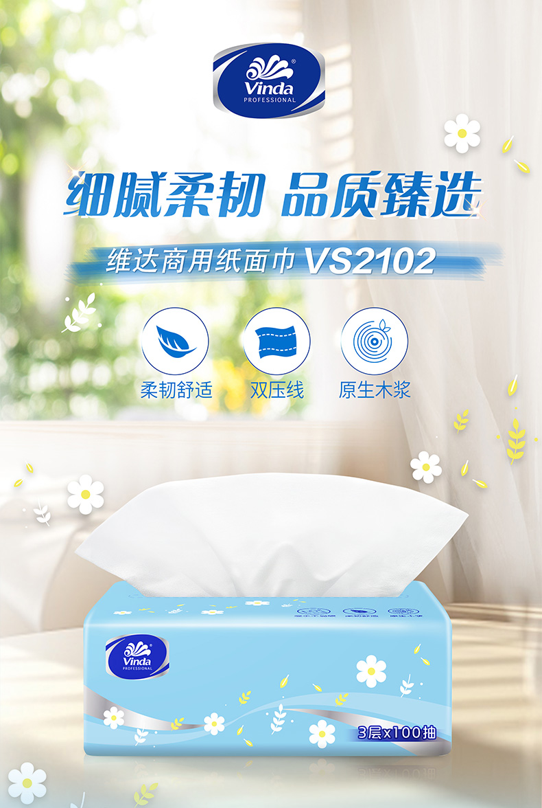 维达超韧抽取面巾 3层S码100抽×24包 VS2102
