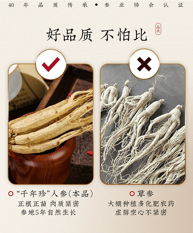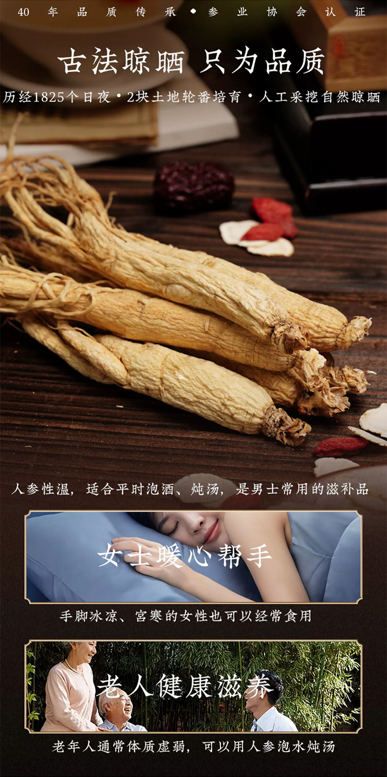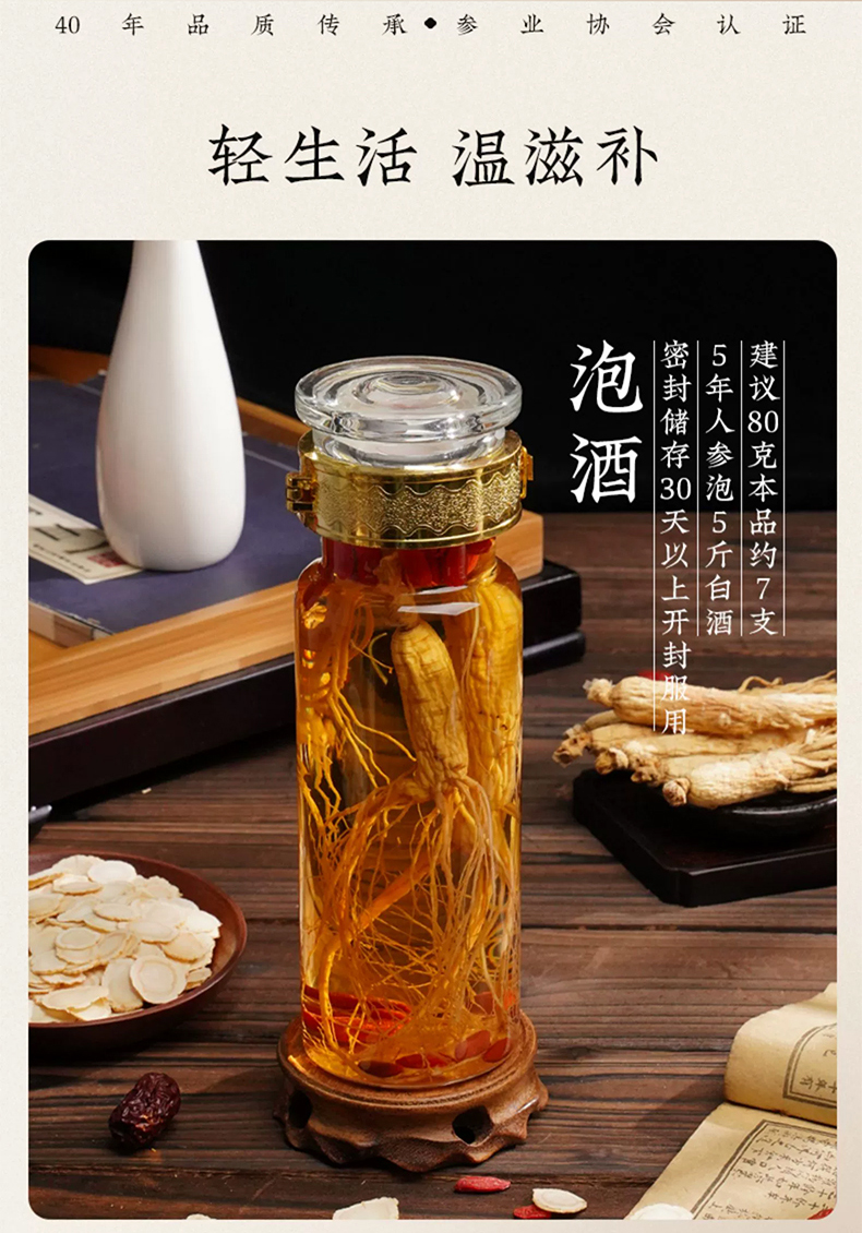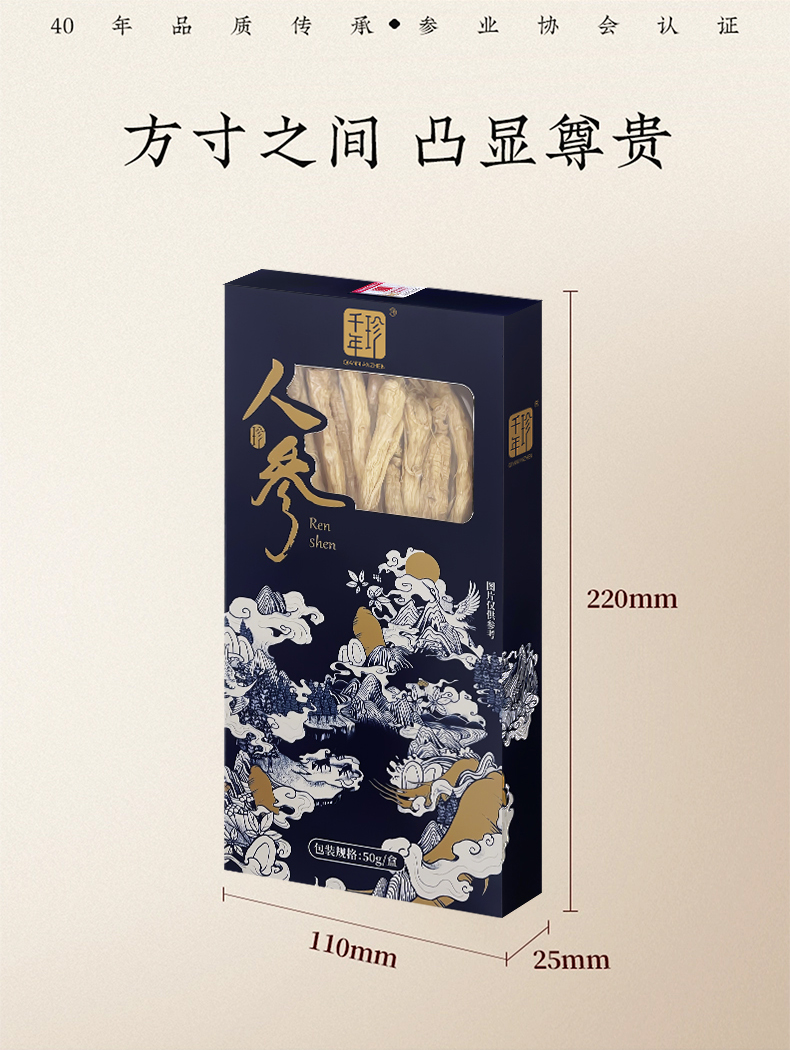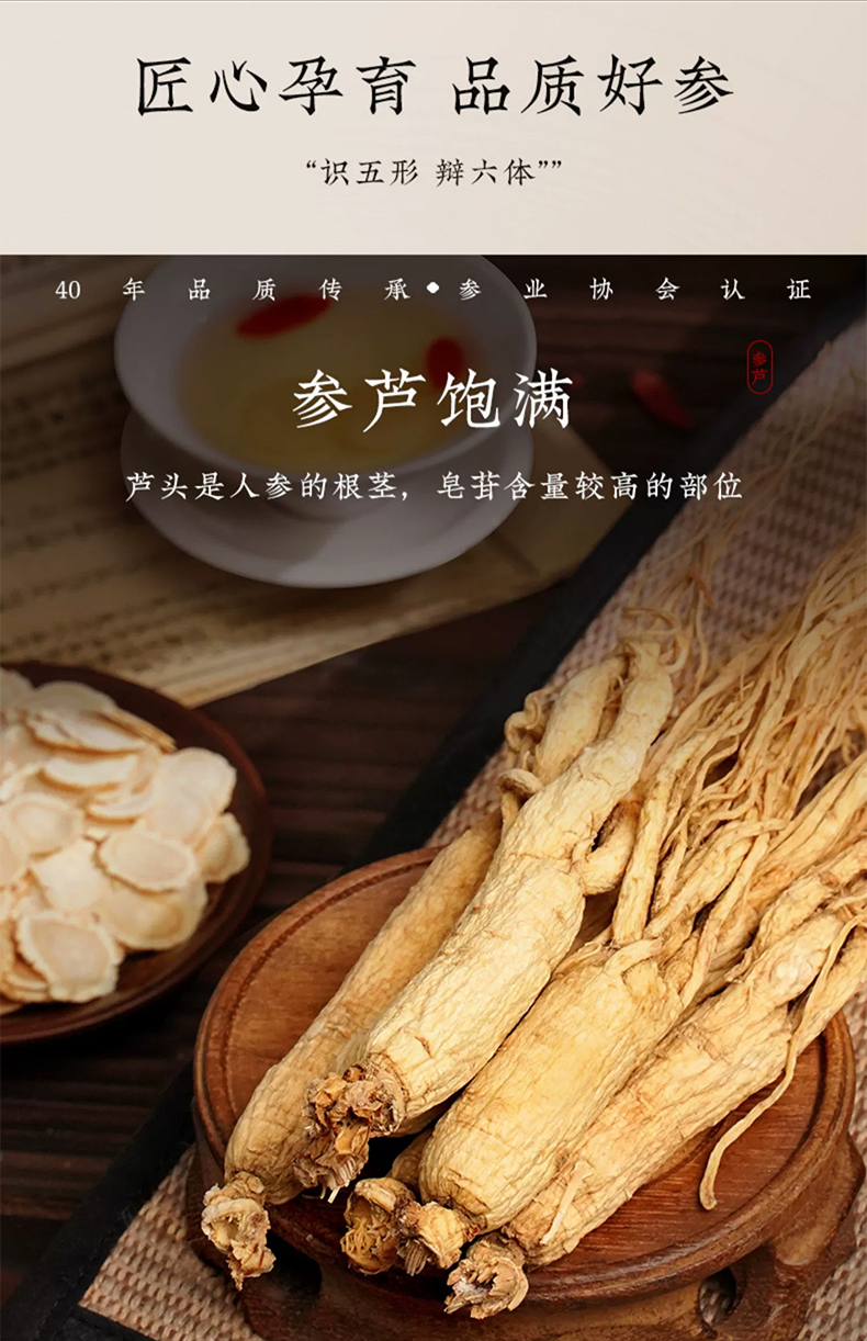 千年珍人参长白山生晒参营养品补品白参整支50g