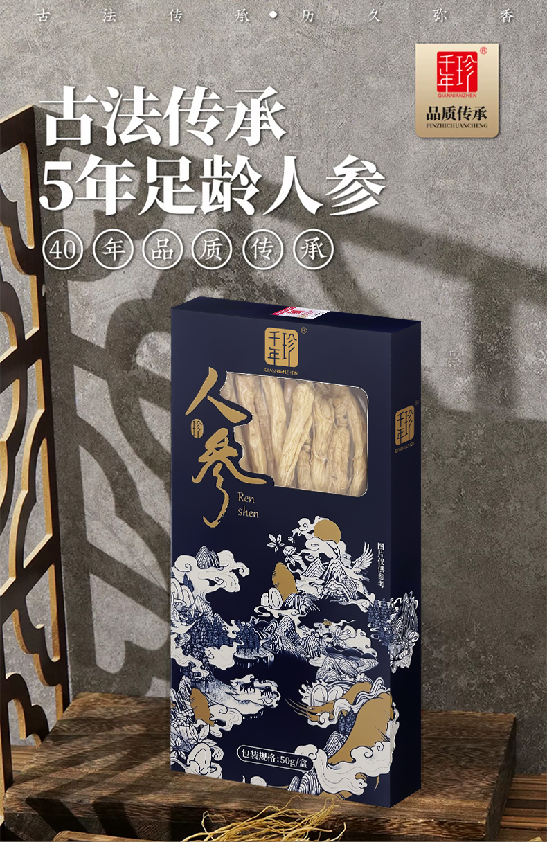 千年珍X吉山宝X长白山人参 西洋参片礼盒大片 100g(50g*2瓶)/盒