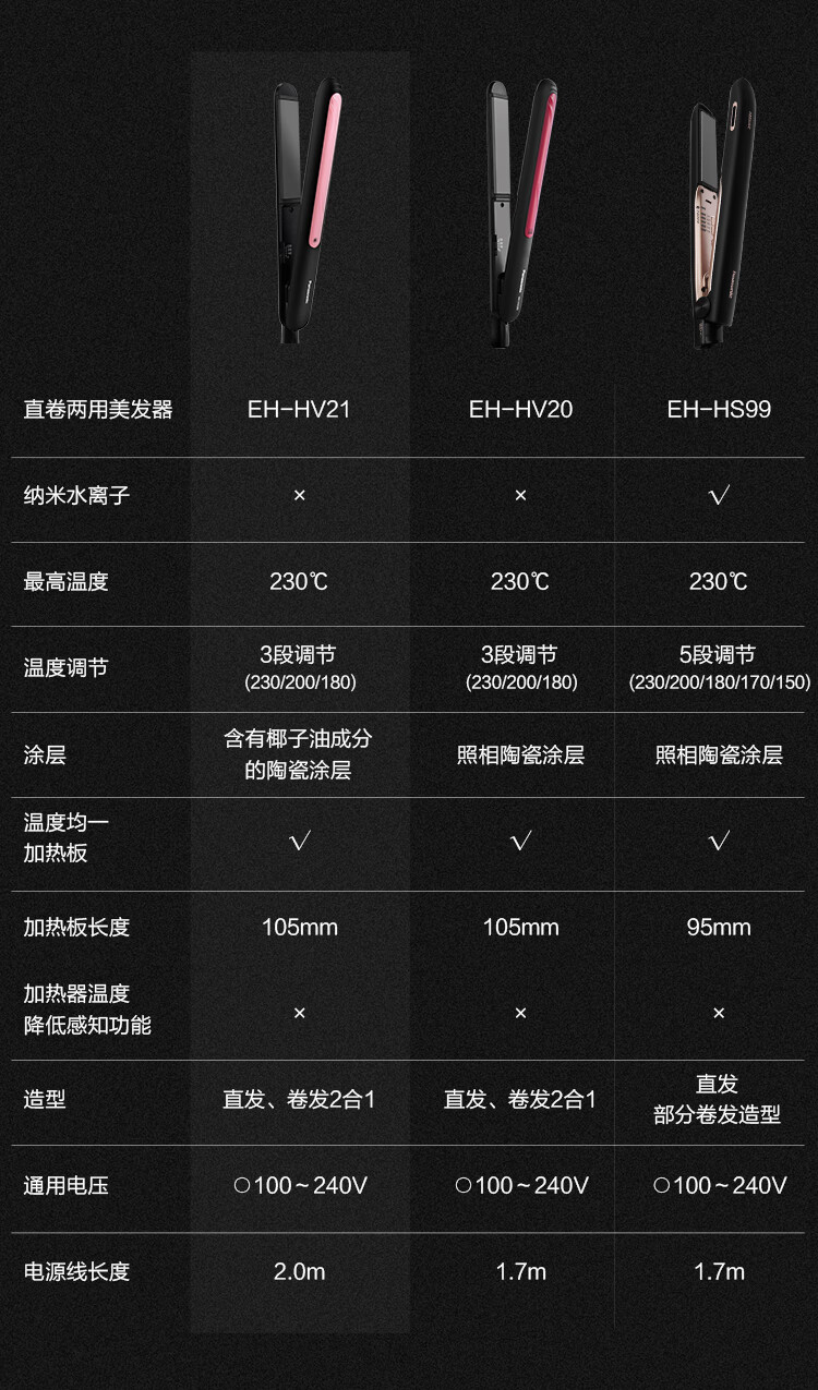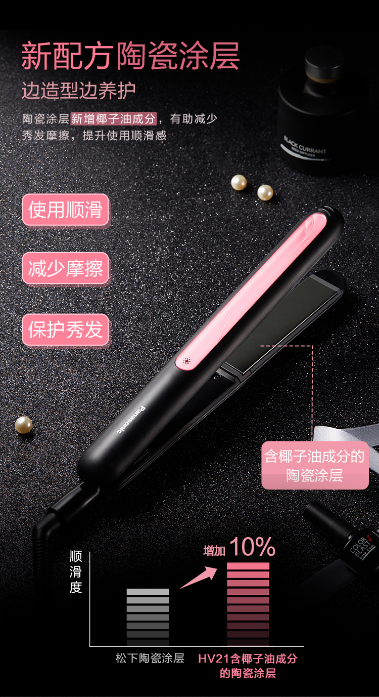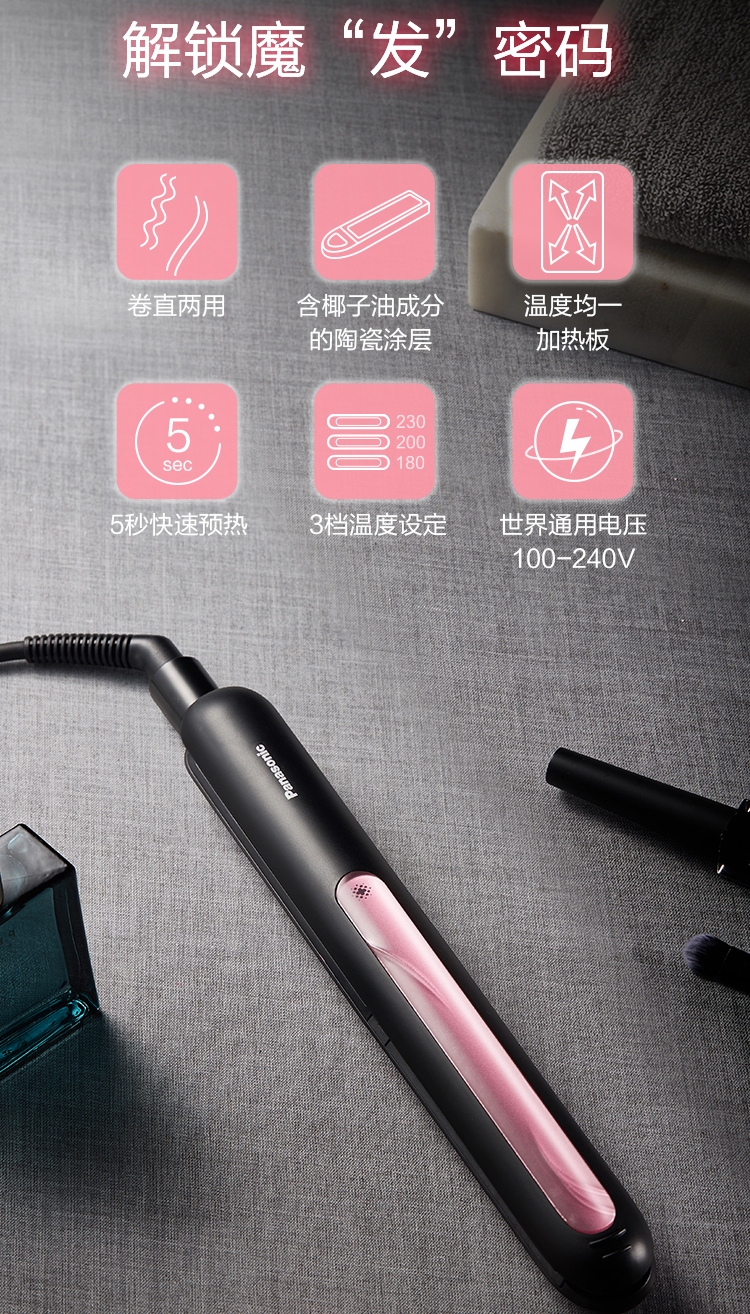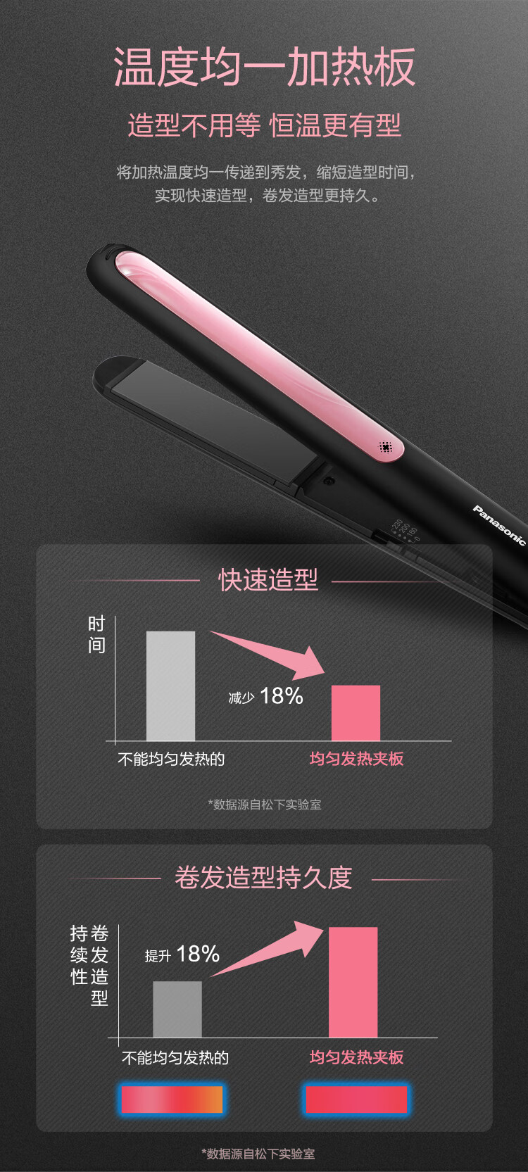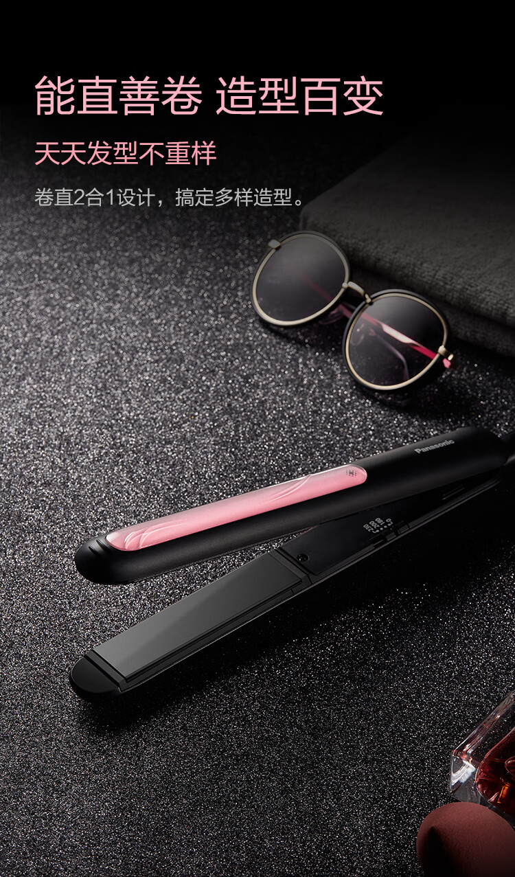 松下(Panasonic)卷发棒 卷/直两用卷发直发夹板 刘海烫发美发卷发器直发器直板夹 小V棒EH-HV21-K495