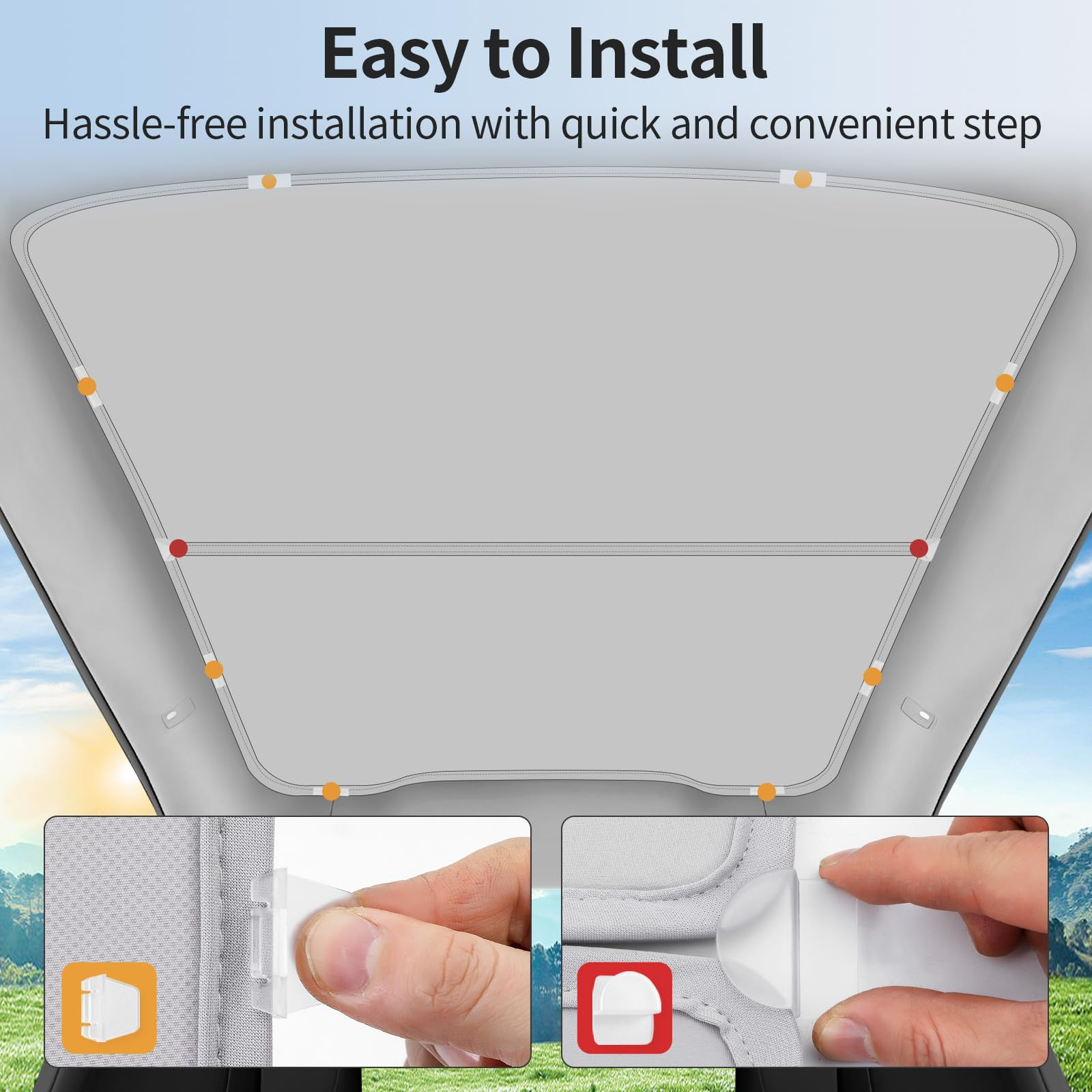 这款遮阳顶棚能完美贴合您的Model Y Juniper车顶,不留任何缝隙。精准的缝制工艺确保面料紧绷且无下垂,完美保留您的原车头部空间。