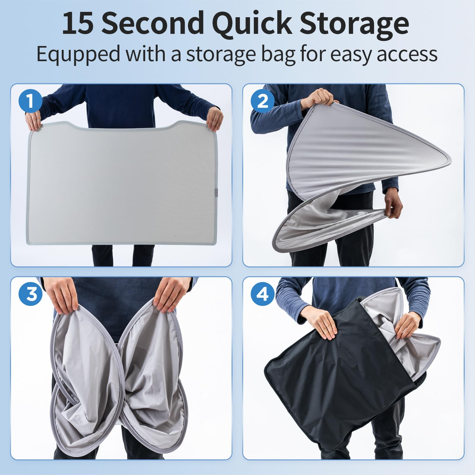 遮阳帘配有包装精良的收纳袋,方便存放在前备箱或后备箱。