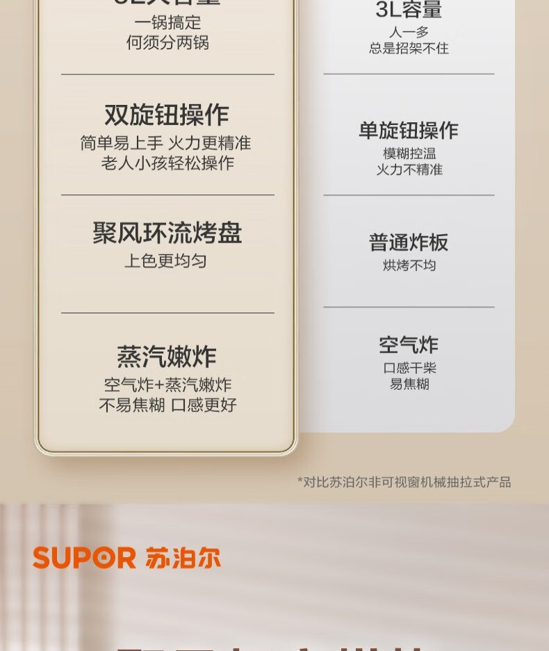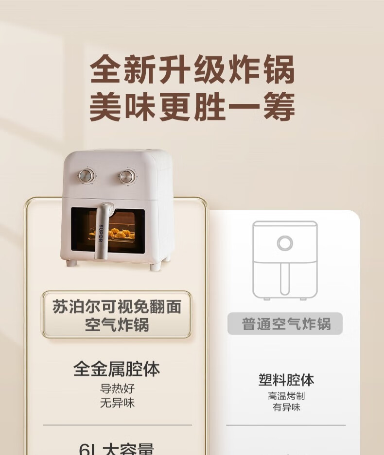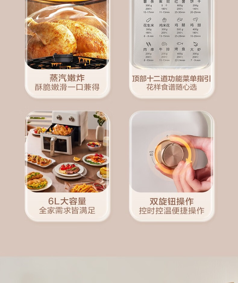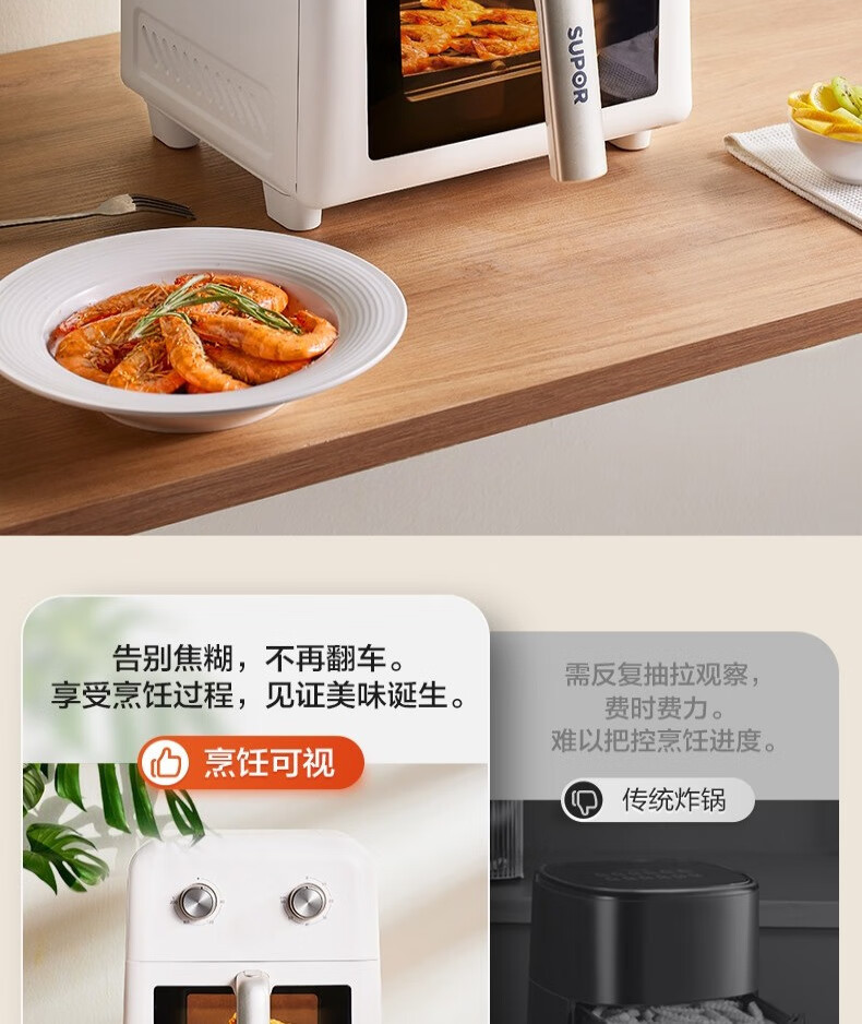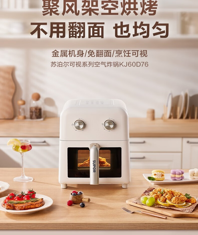 苏泊尔 6L可视 蒸汽嫩炸 空气翻炸锅KJ60D76