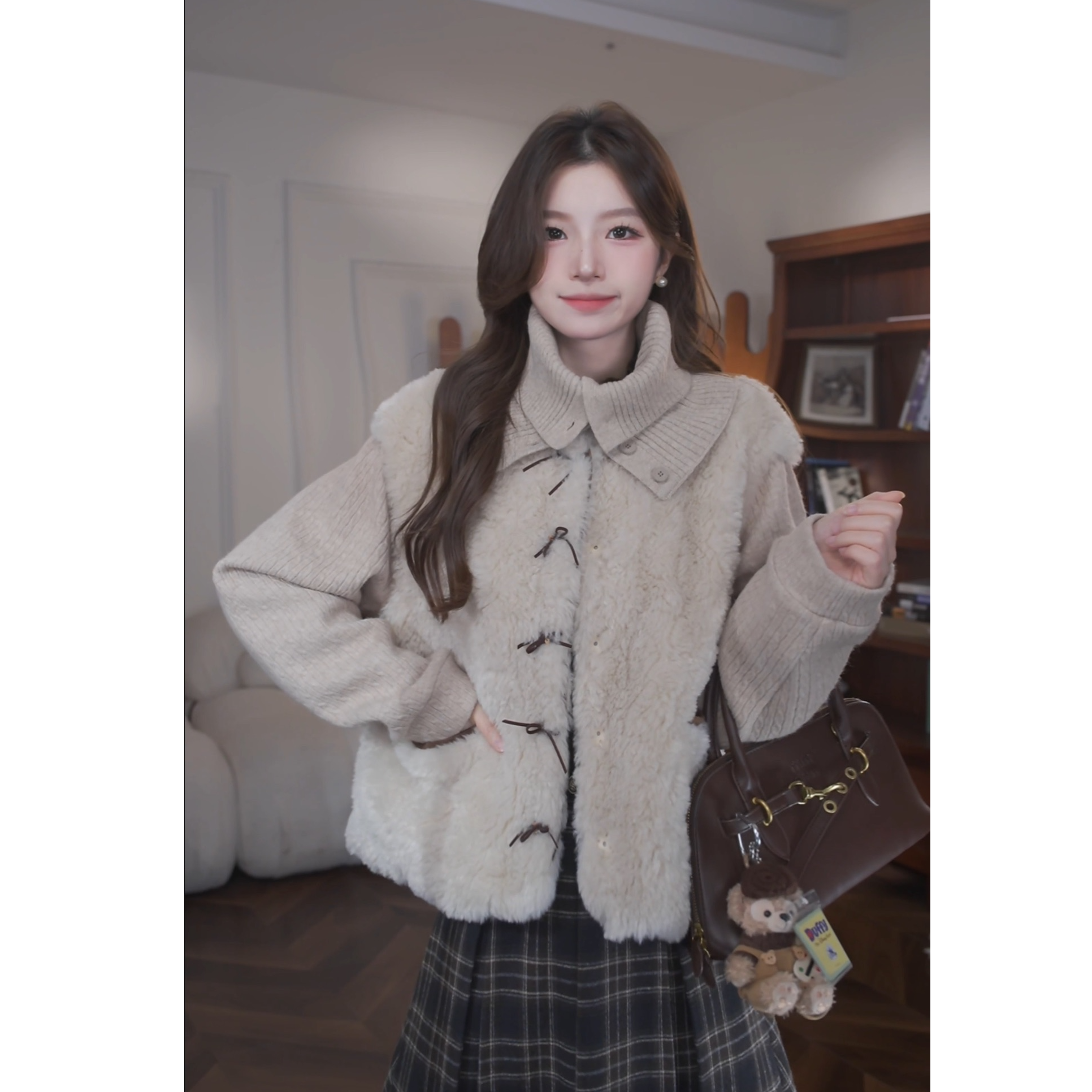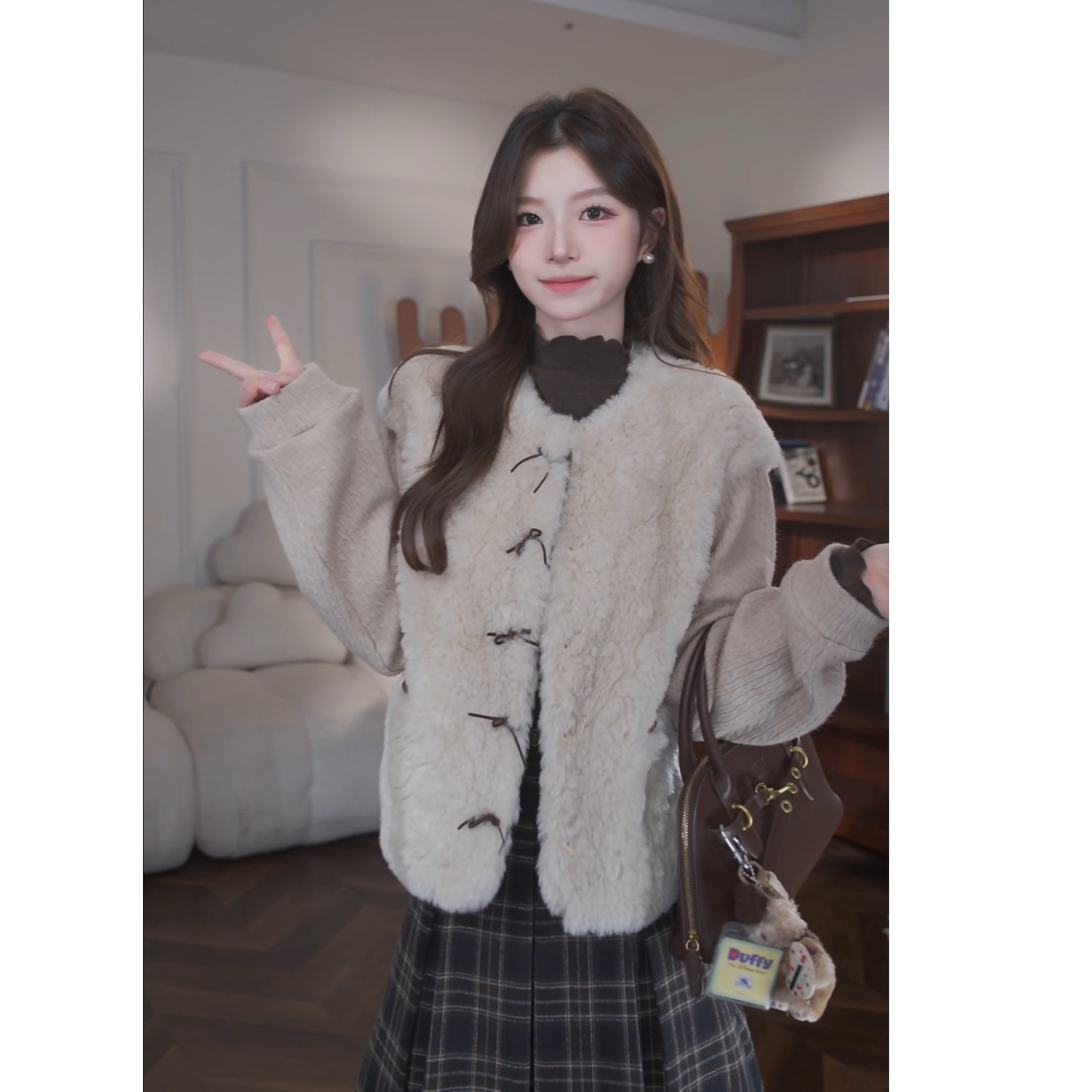 鹿向南【时空漫漫】秋冬新款韩系慵懒气质减龄加厚保暖毛毛外套女