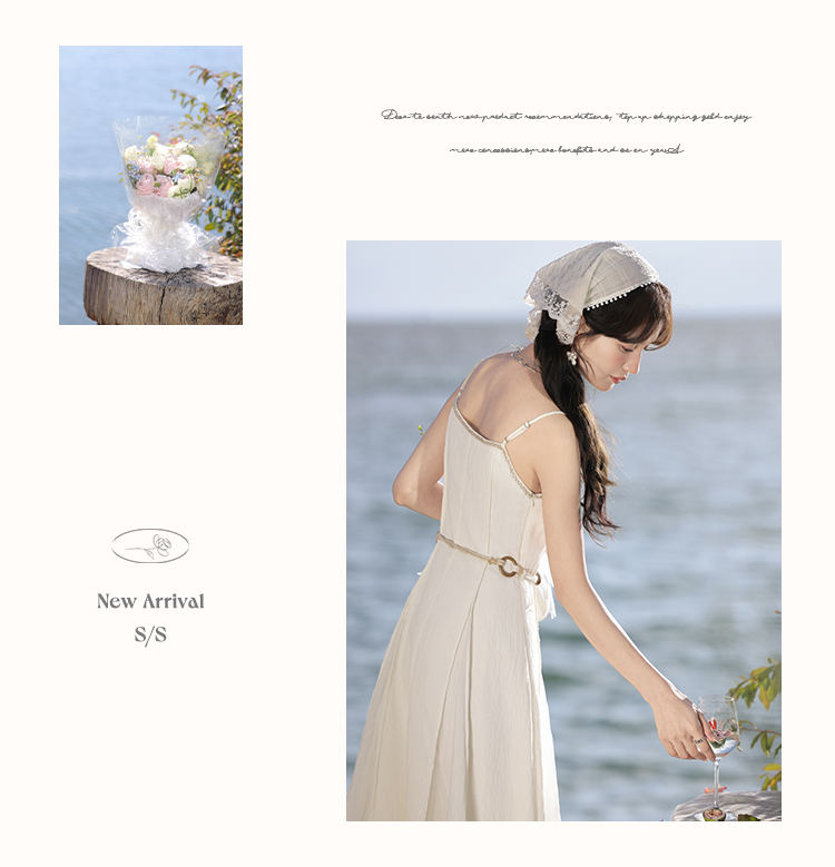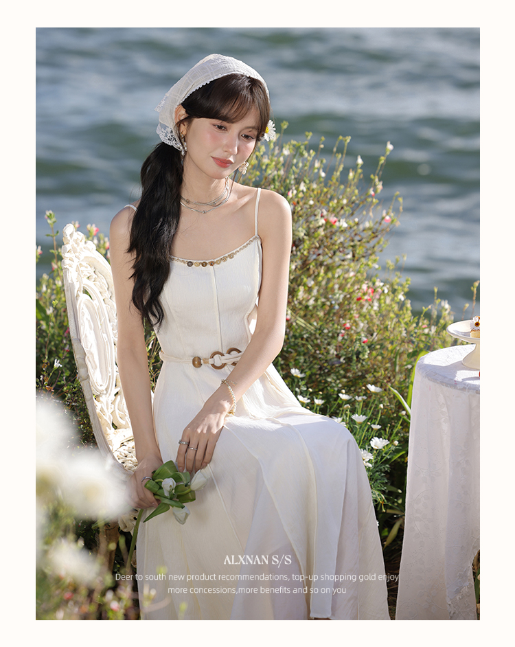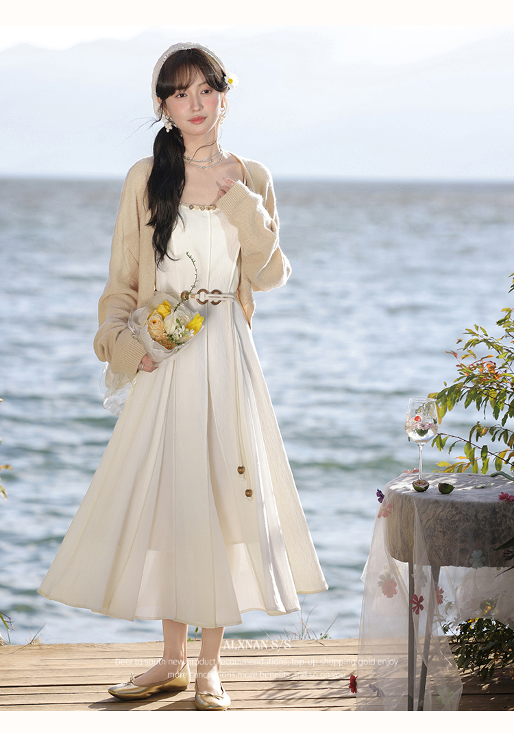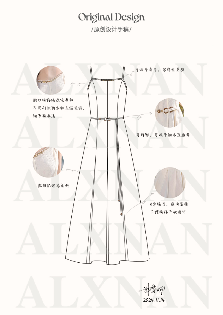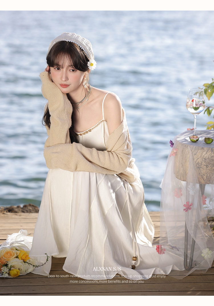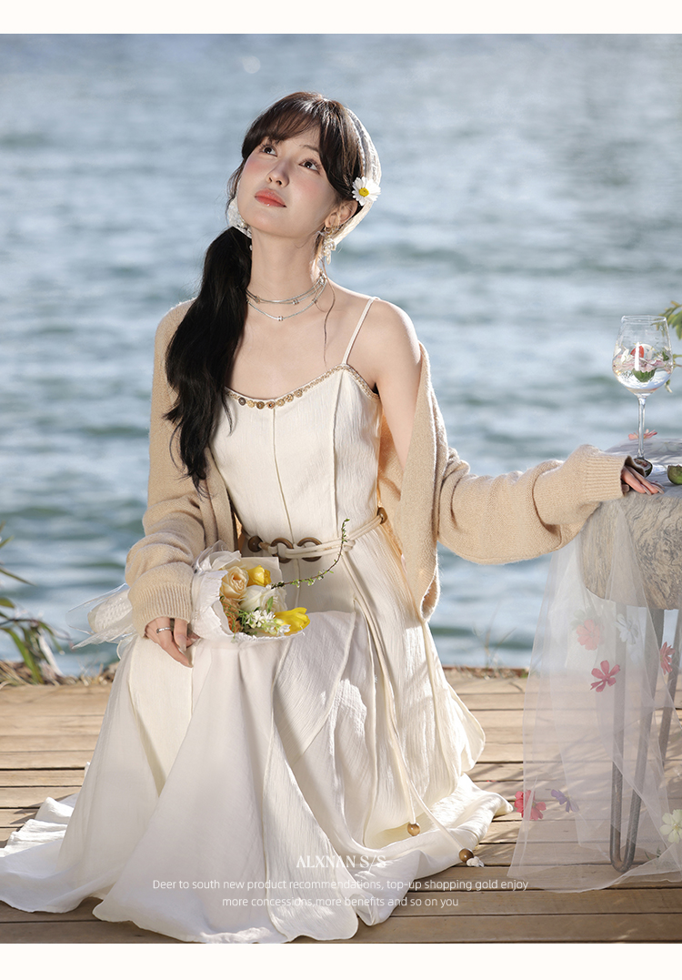 鹿向南「心动讯号」杏色连衣裙2025春季新款女装法式时尚吊带裙
