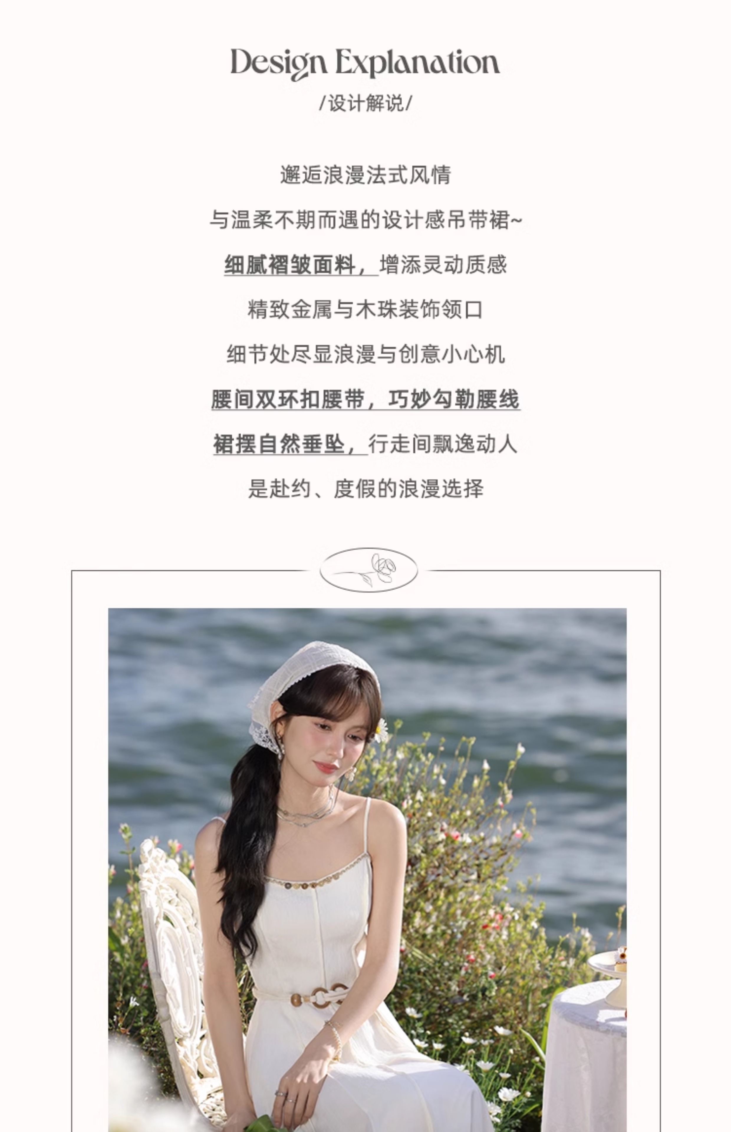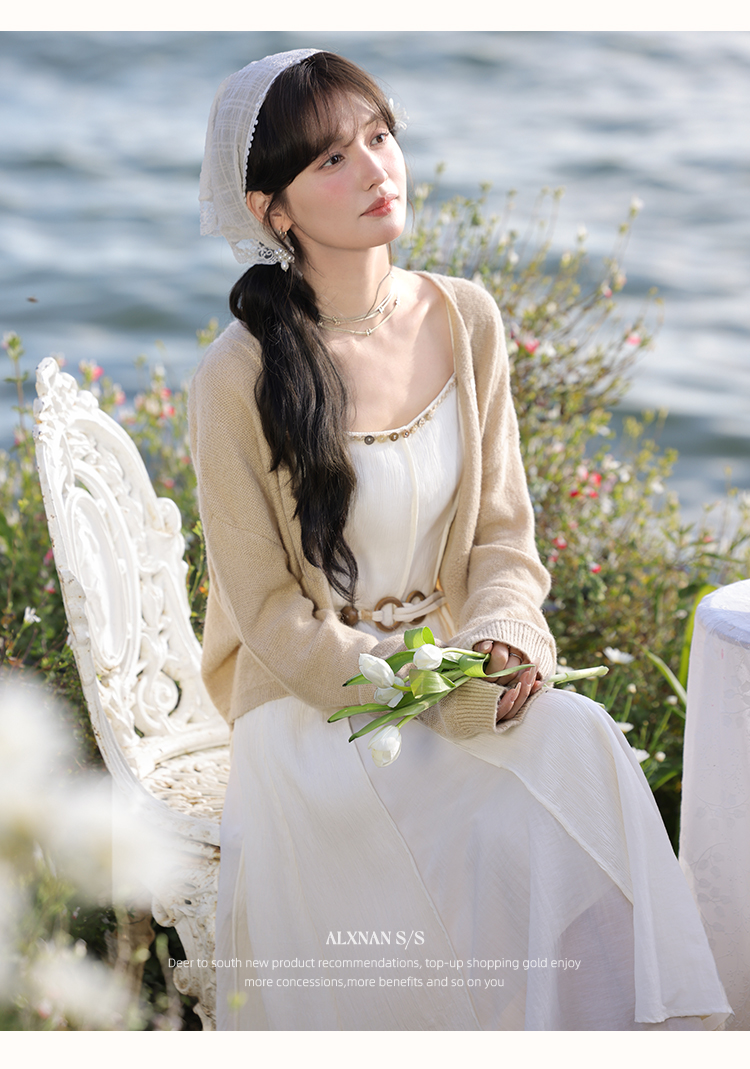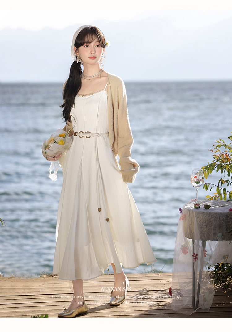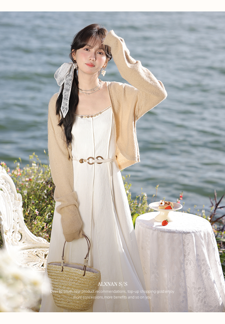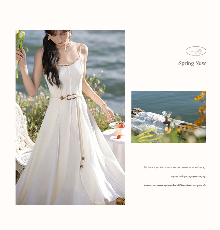 鹿向南「心动讯号」杏色连衣裙2025春季新款女装法式时尚吊带裙