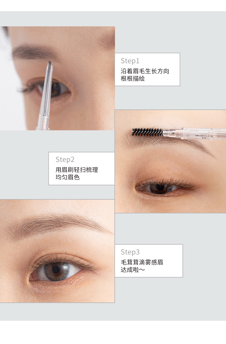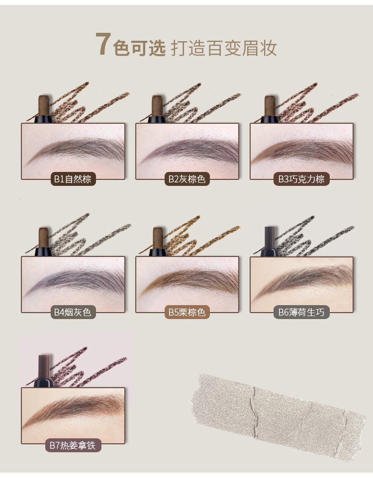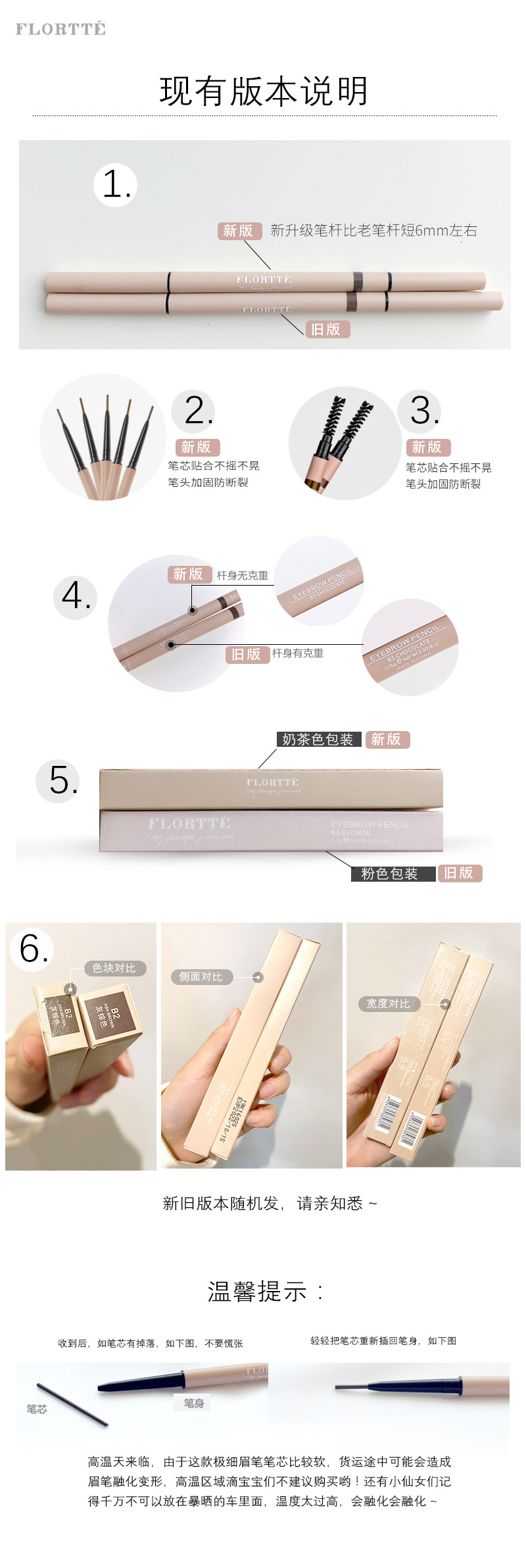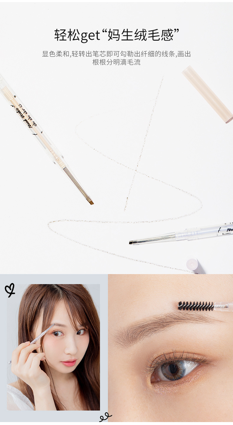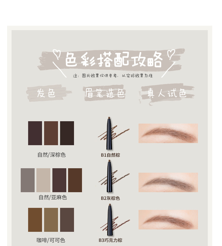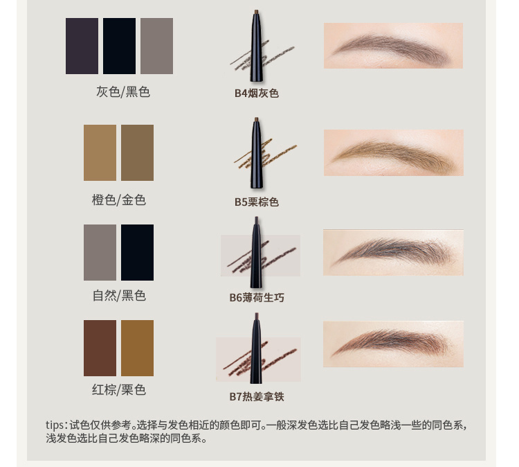 温馨提示: 如果你发现笔芯掉落,并不是断了或者坏了 眉笔本身采用的是推管式设计, 只需旋转到尽头, 把笔芯套回去再旋转即可! 平日用不能旋转太长哦,小心保管
