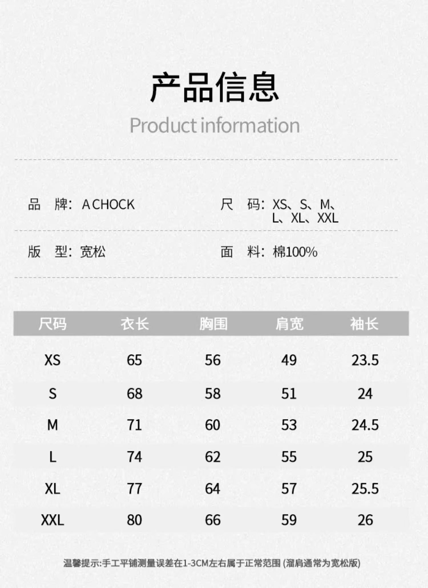 【Achock官方店】美式设计logo短袖男女高街夏短袖情侣五分袖t恤