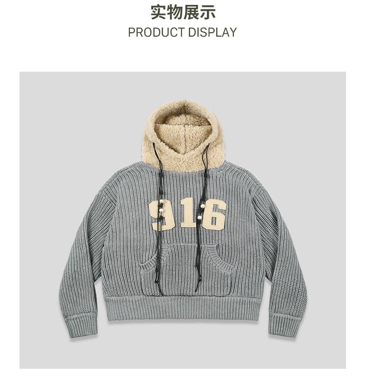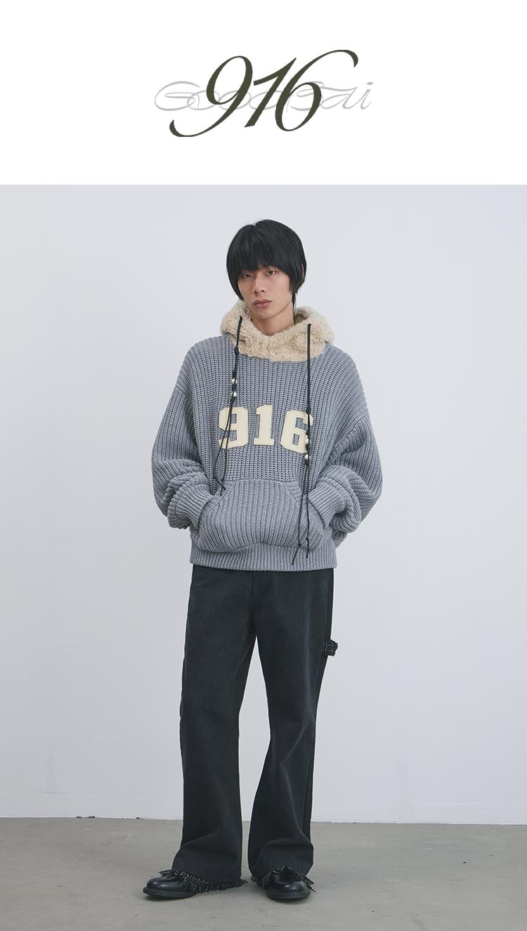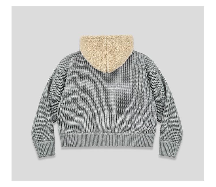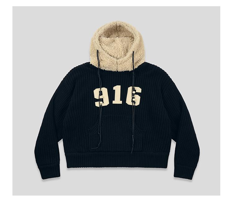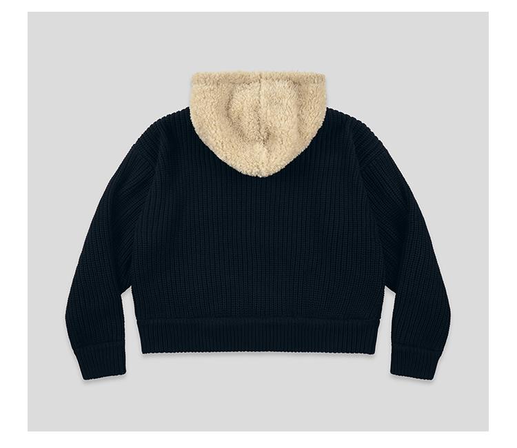 GOODBAI 916 贴布绣撞色拼接含羊毛连帽针织外套