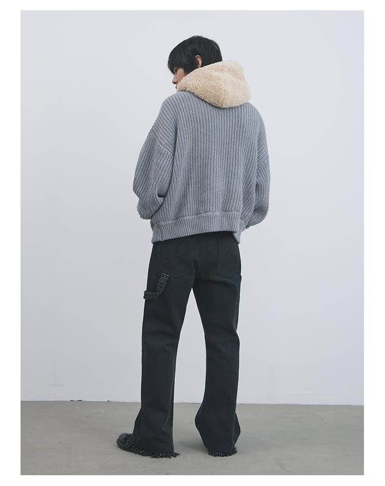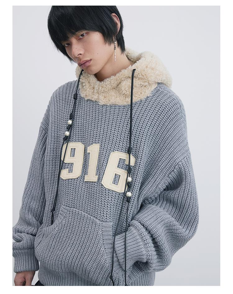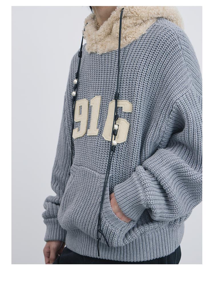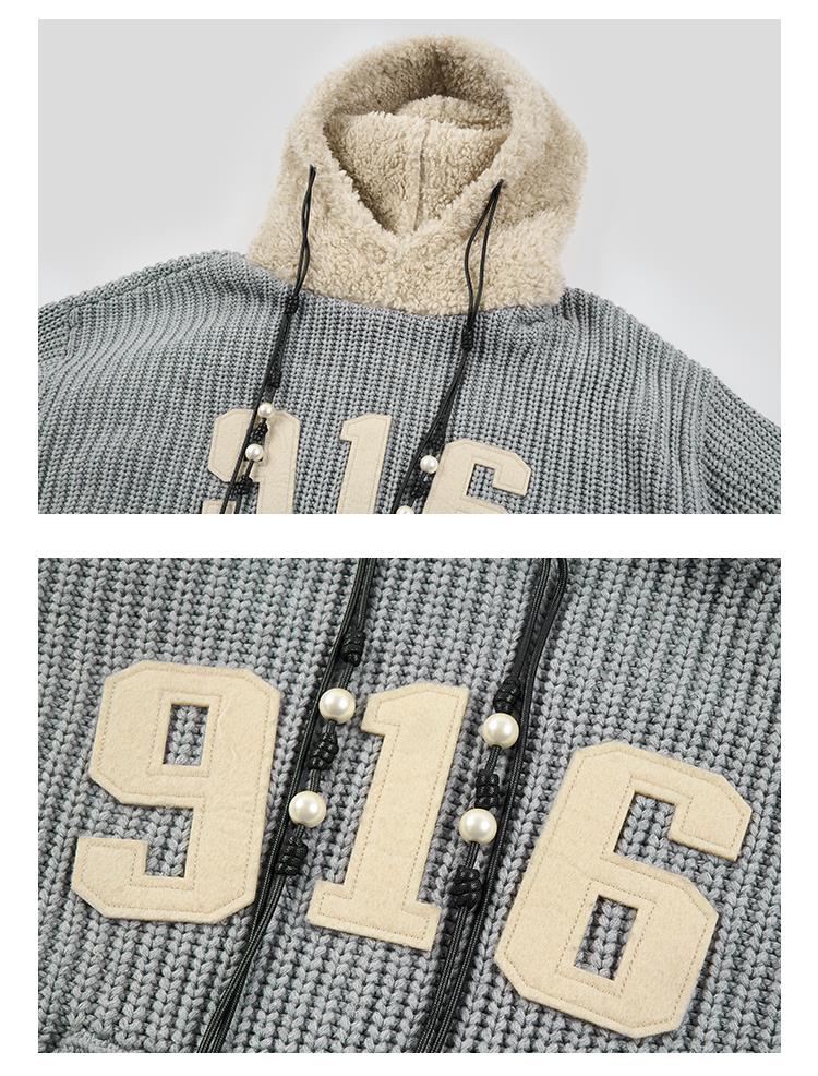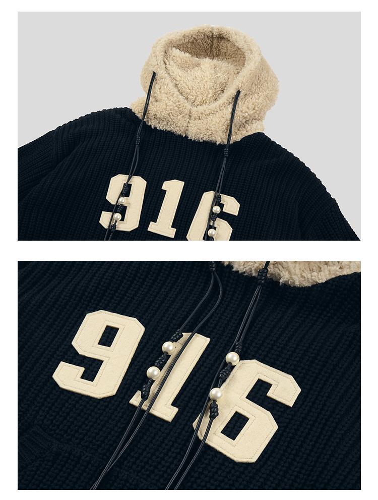 GOODBAI 916 贴布绣撞色拼接含羊毛连帽针织外套