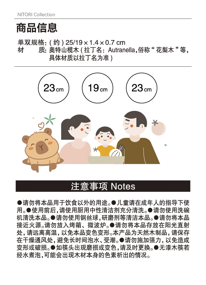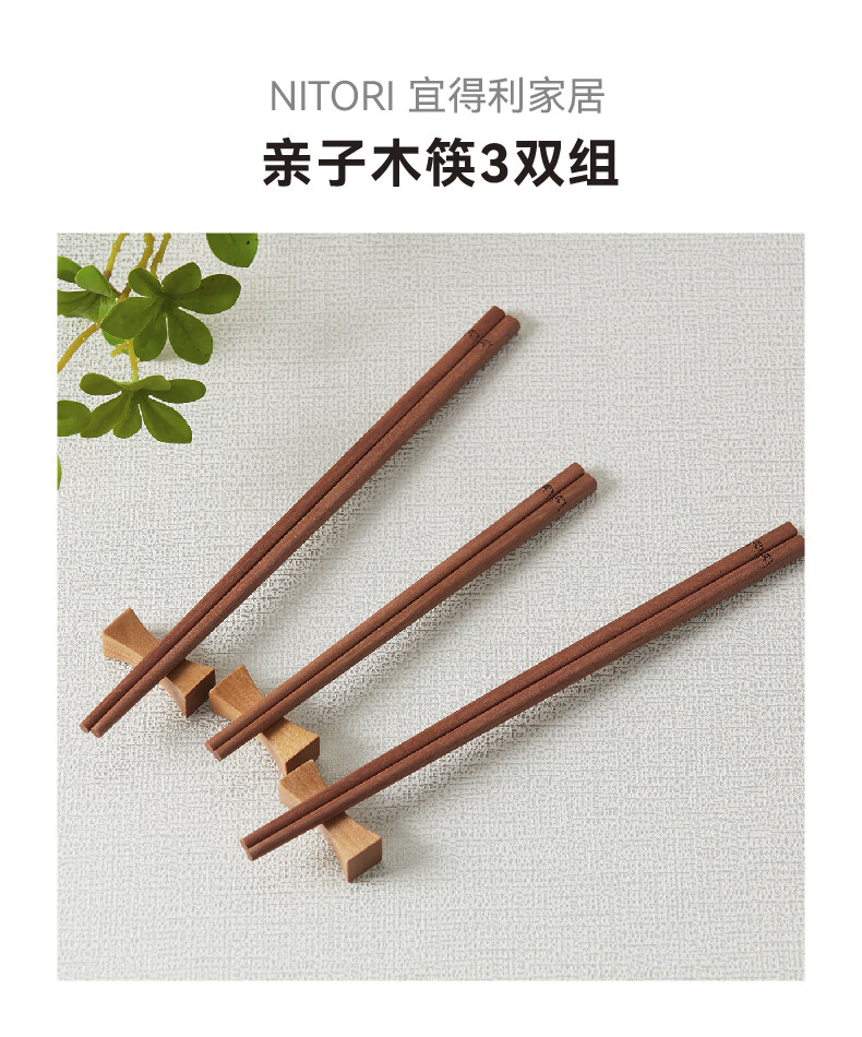 NITORI宜得利家居 厨房餐具筷子木筷亲子木筷3双组