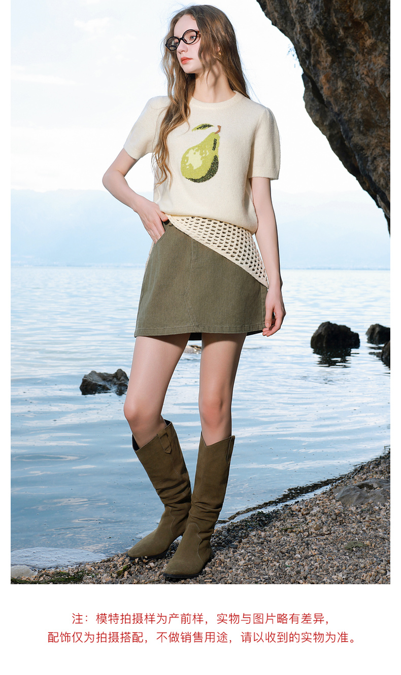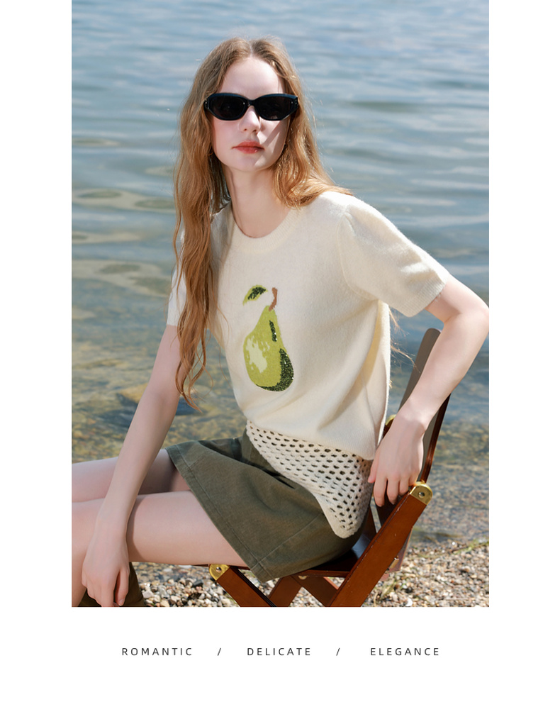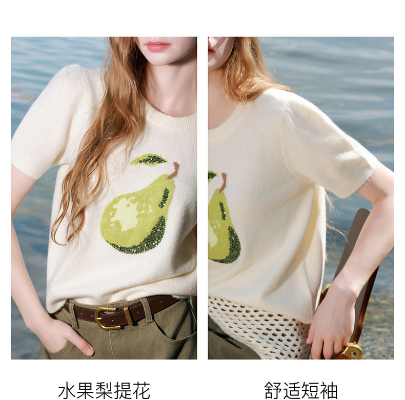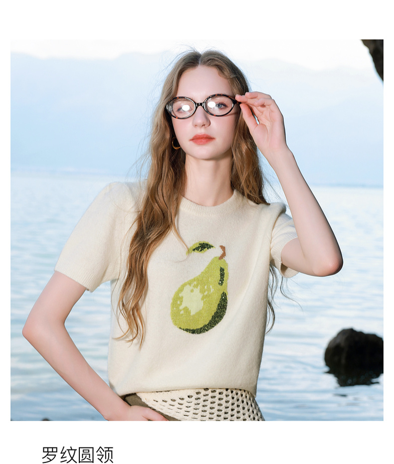 三彩2025秋季新款提花针织衫圆领短袖毛衫套头衫休闲M