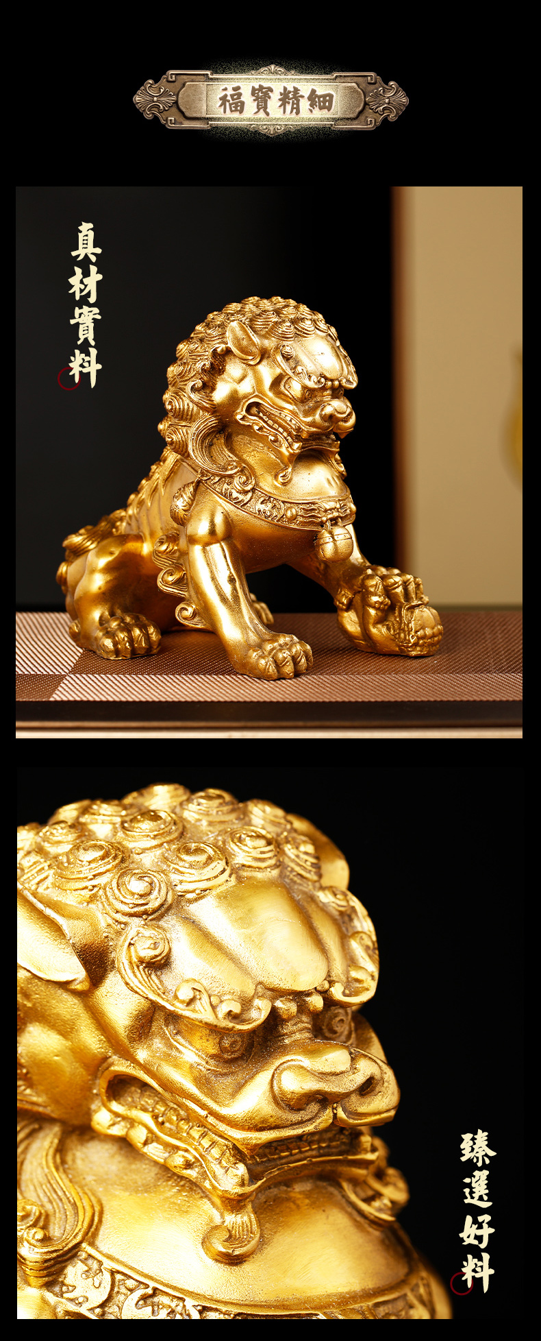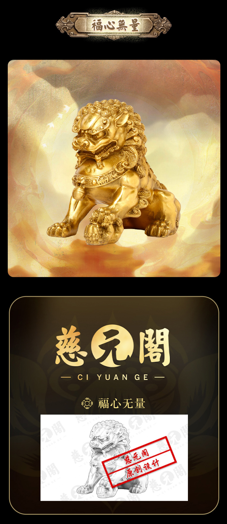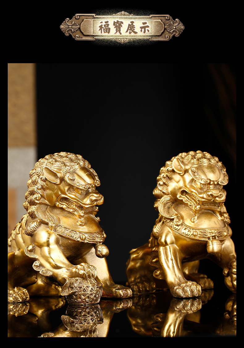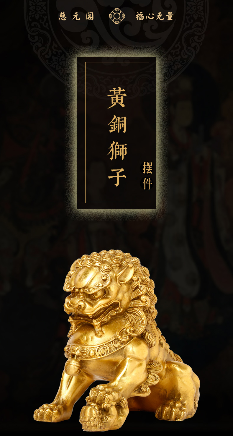 慈元阁定制黄铜狮子摆件喜狮宫门狮摆设家居办公客厅装饰开业礼品