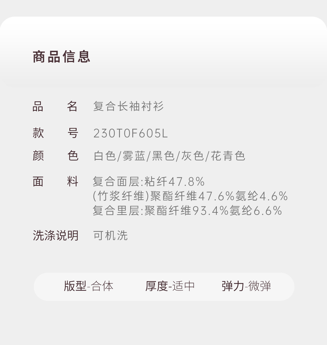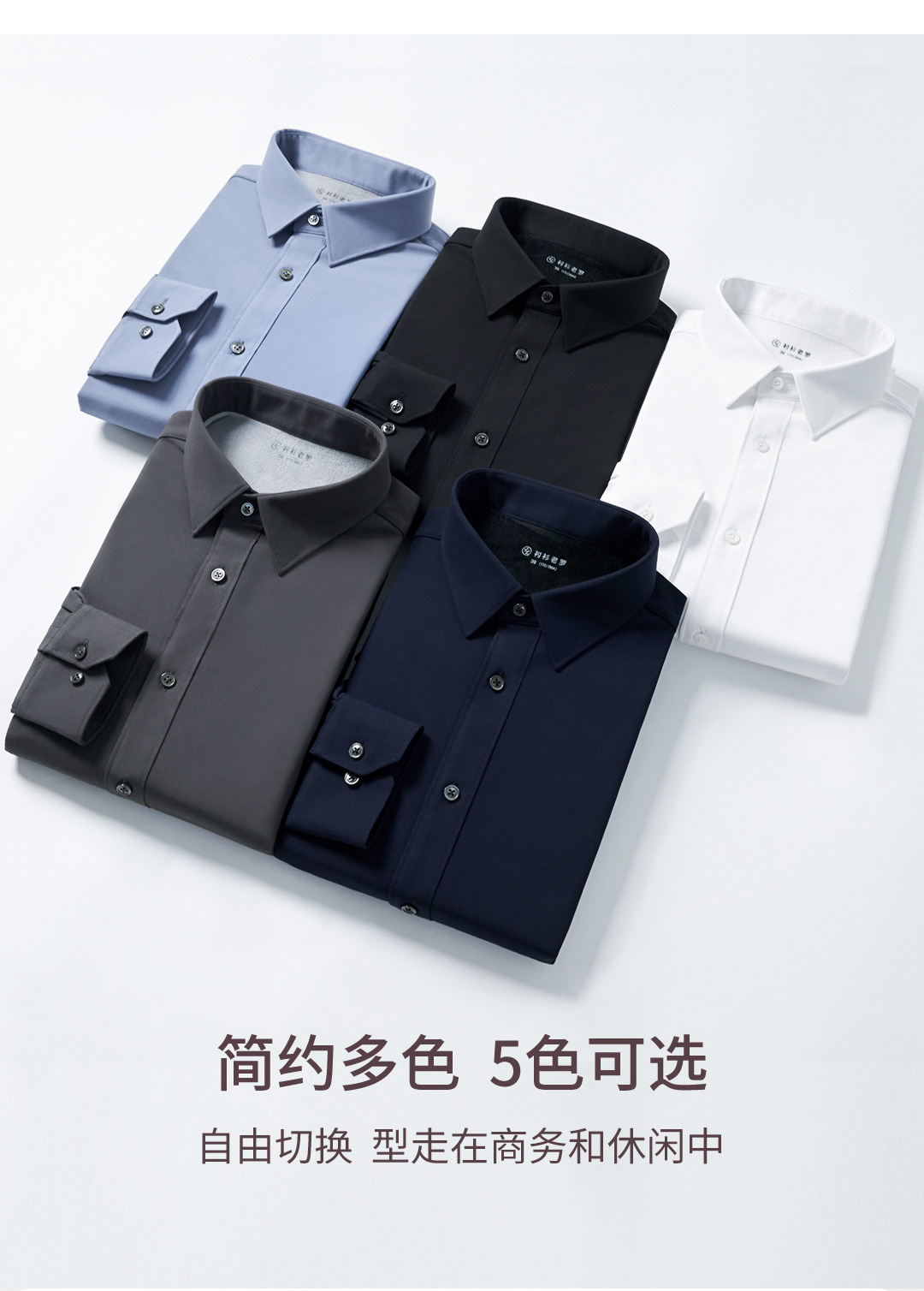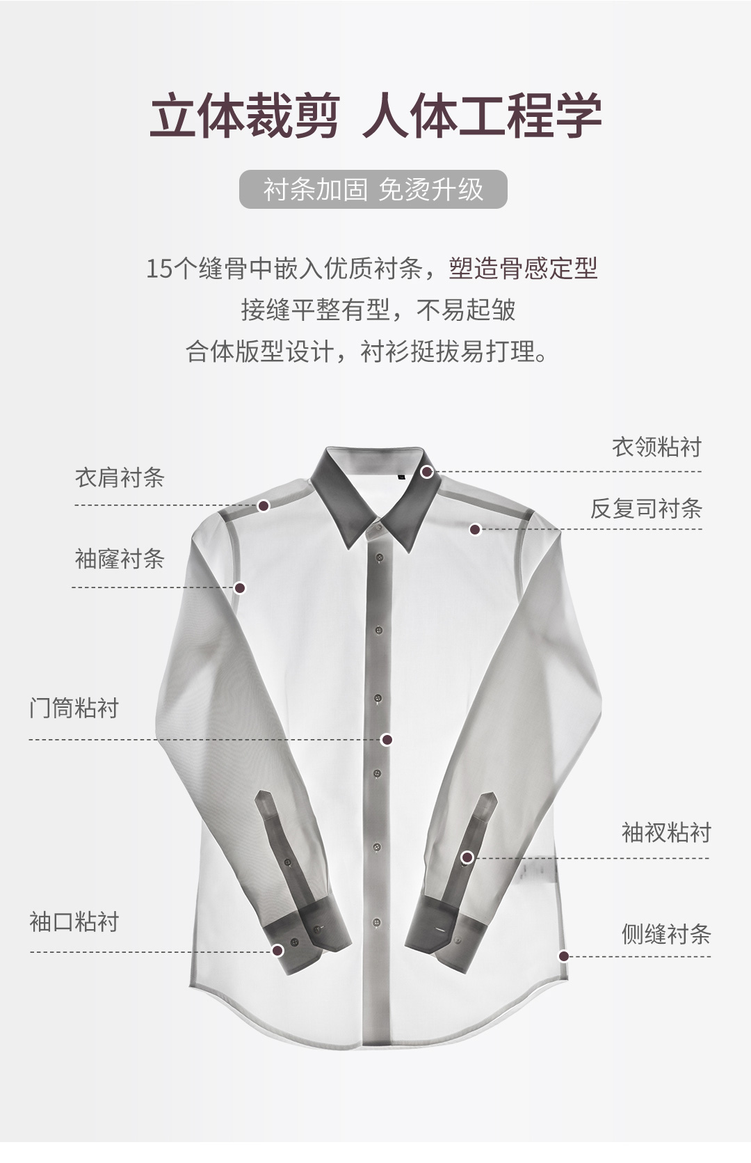 【凌志T5】暗扣领竹纤维抗皱长袖衬衫M666S