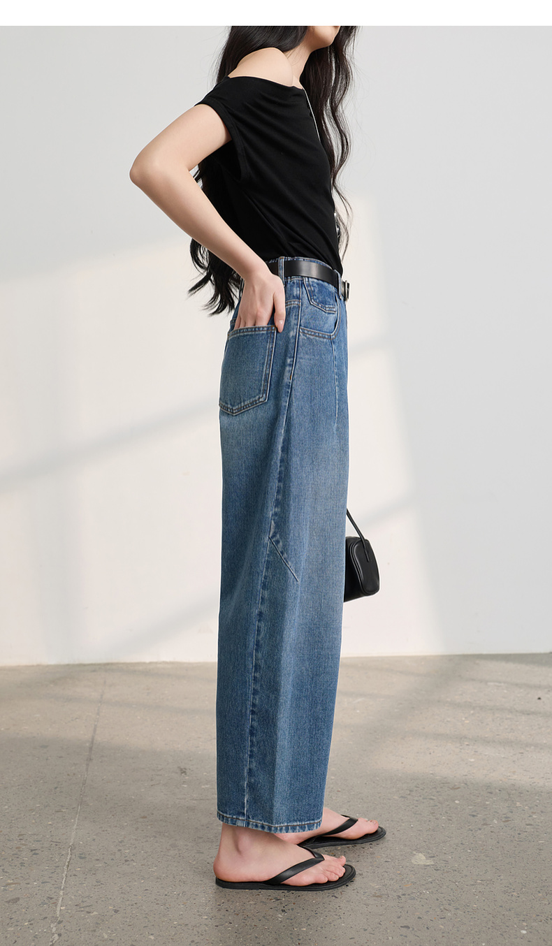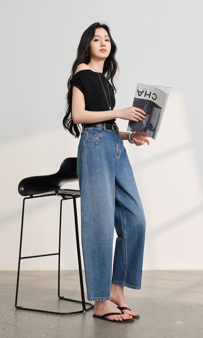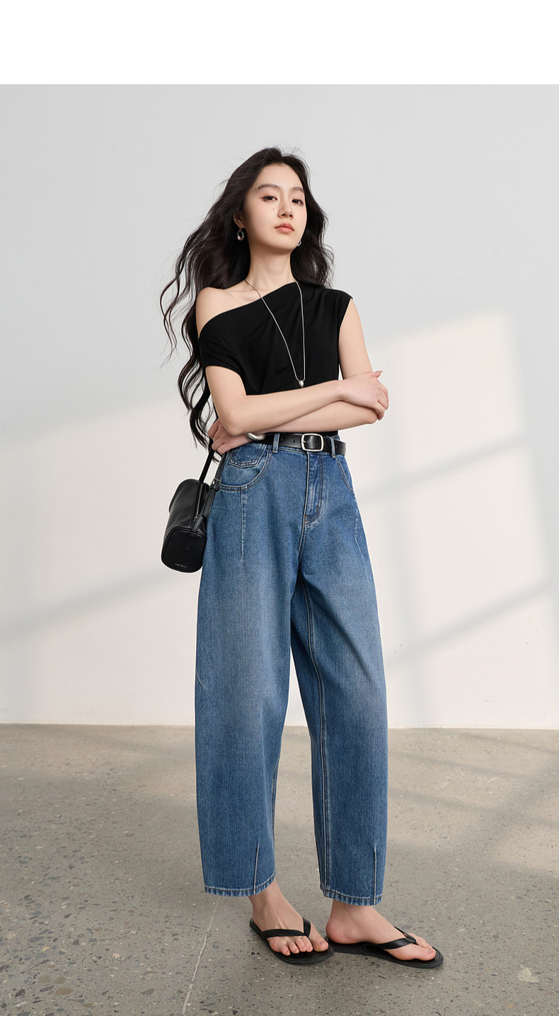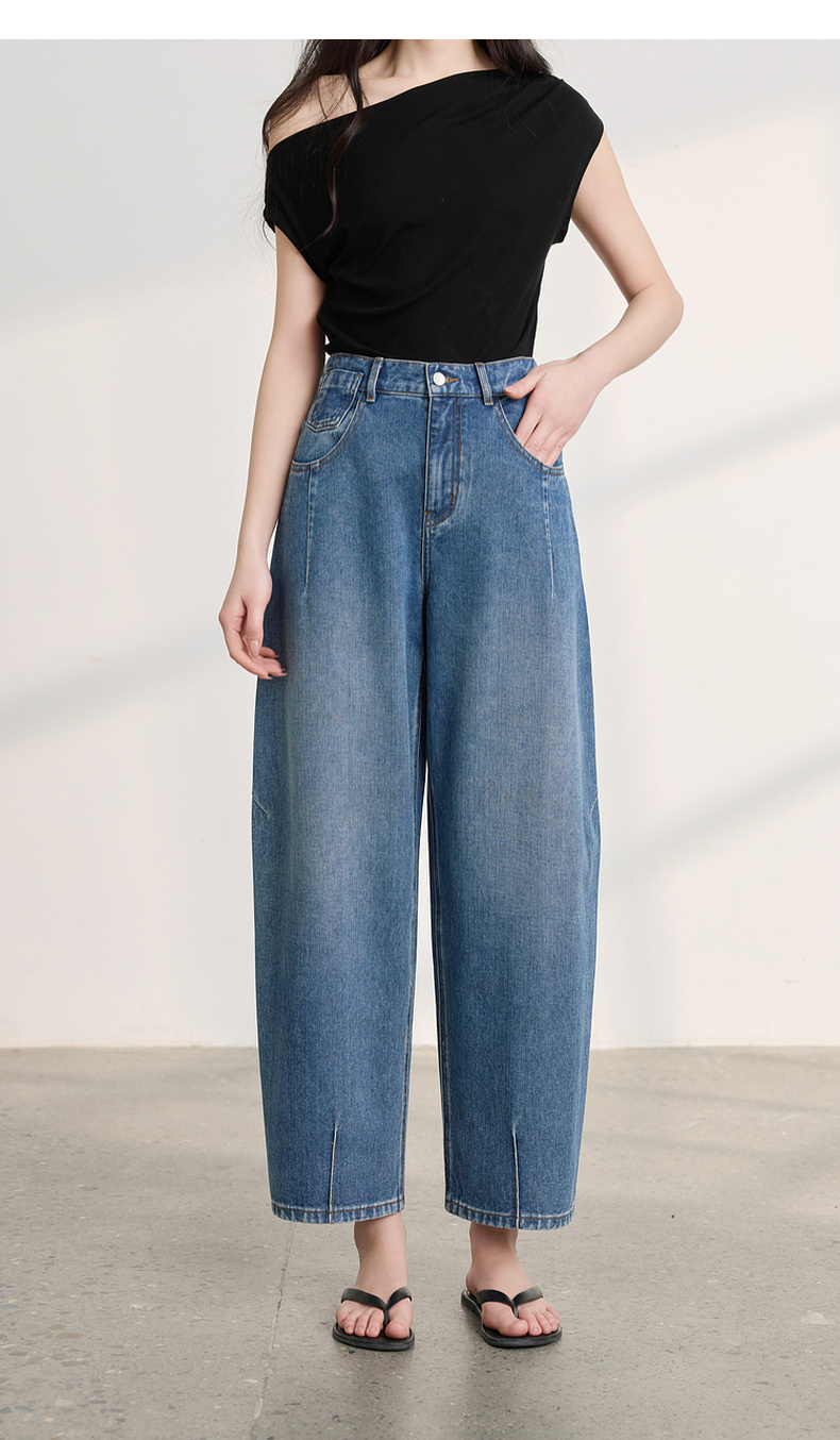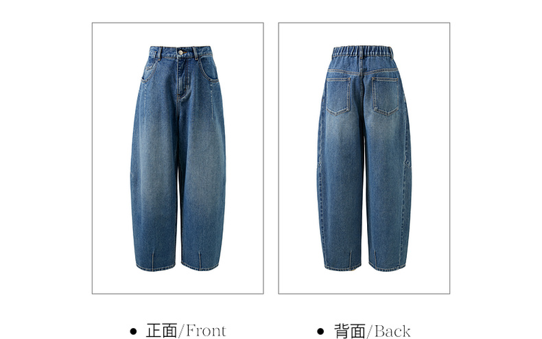 三彩2026春季新款复古休闲裤高腰牛仔裤气球裤九分裤宽松遮肉M