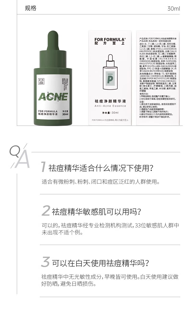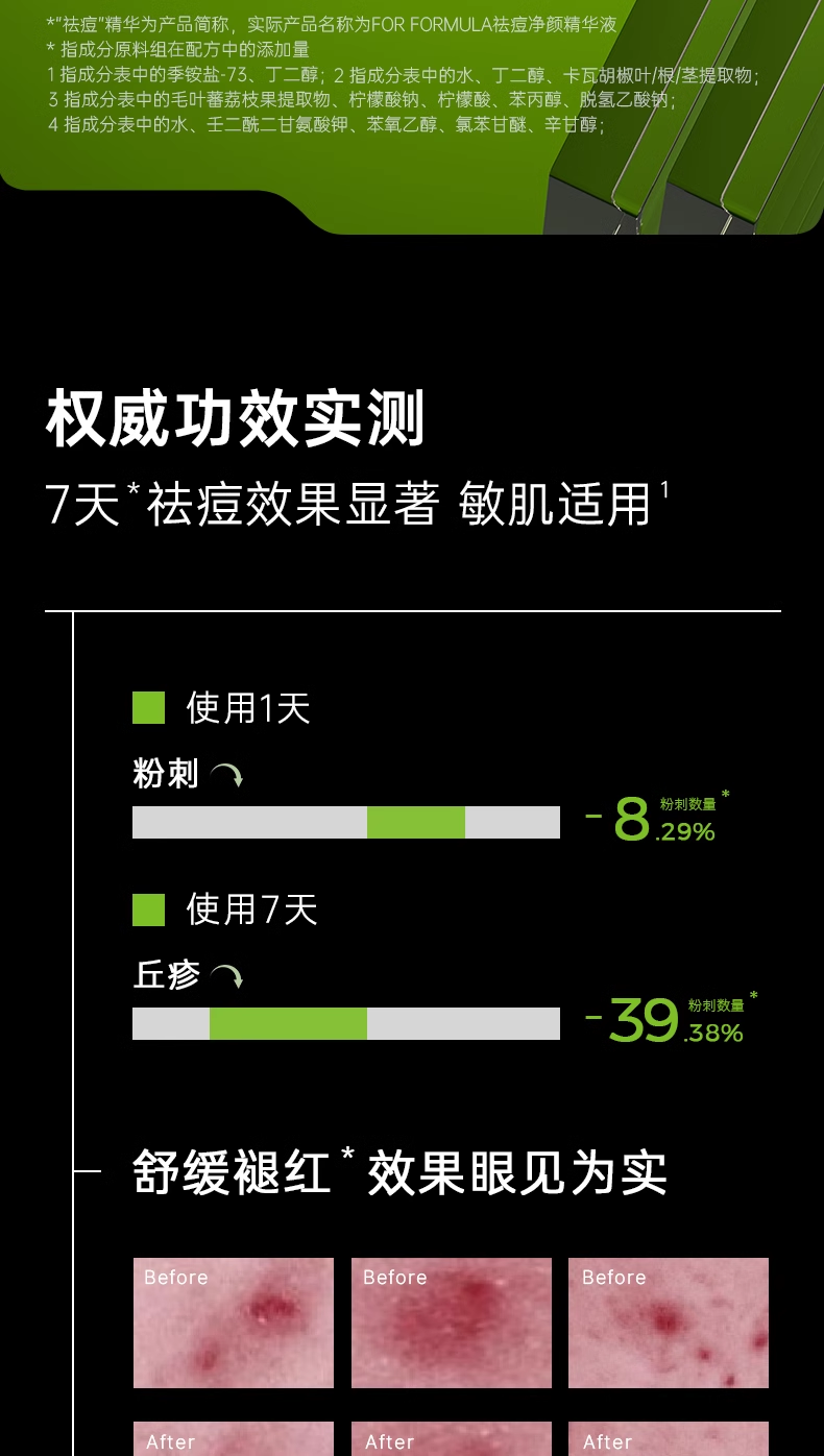 因此FF对于油痘肤质进行了针对性的配方搭建,
