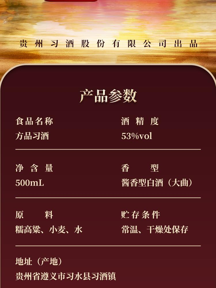 【高端品鉴】习酒 方品红 酱香型白酒 53度 500ml单瓶 500ml*6