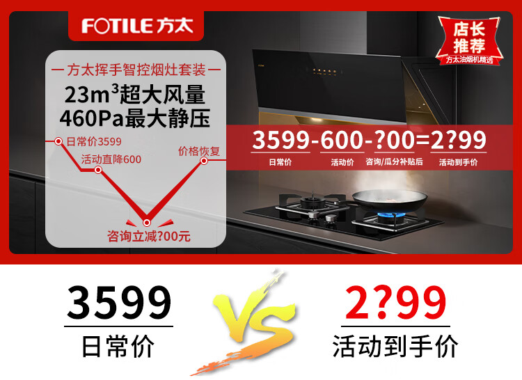 方太(FOTILE)油烟机侧吸油烟机23立方大吸力挥手智控抽油烟机燃气灶套装JCD10B+TH31B 【店长推荐高端烟灶套装】