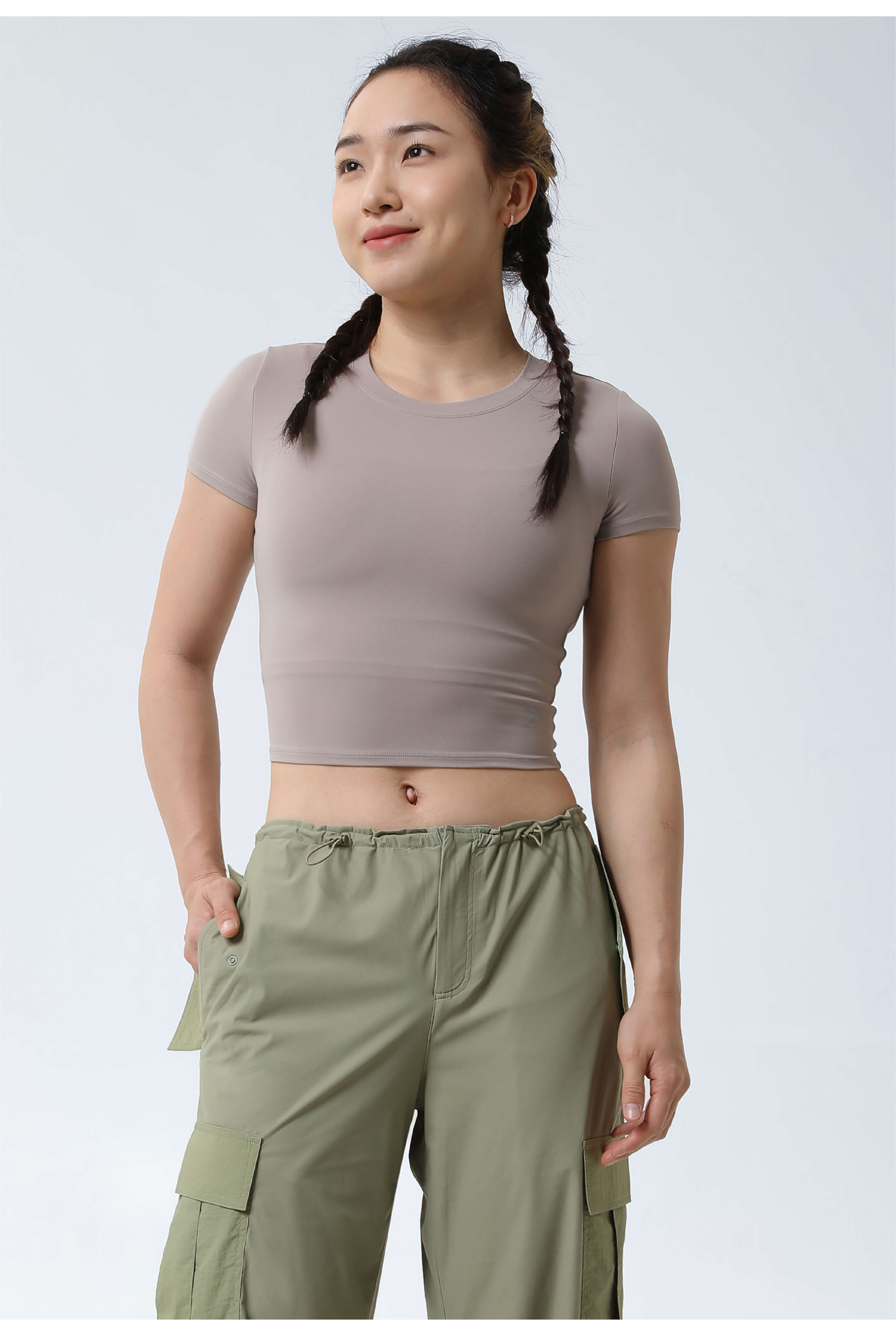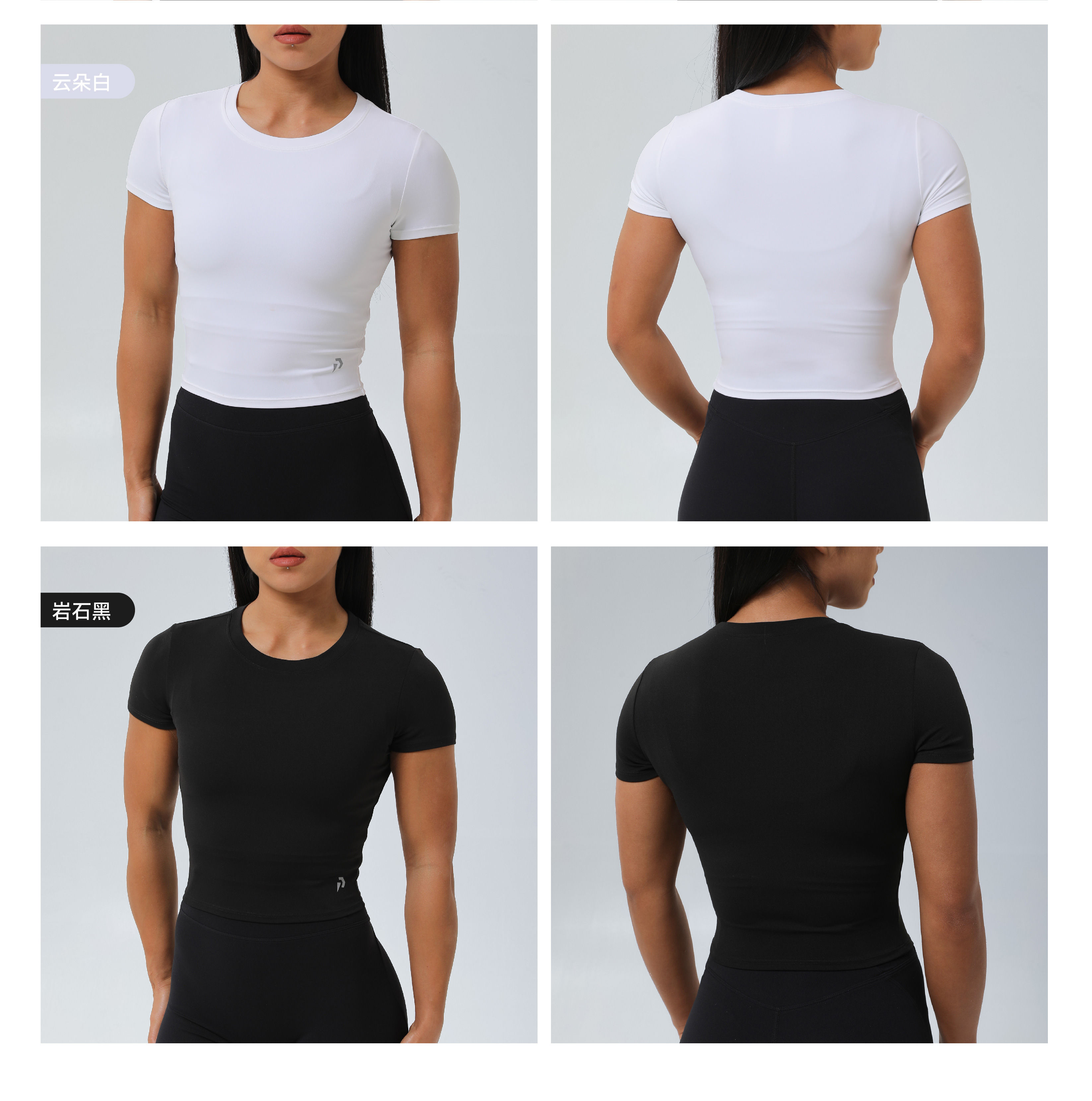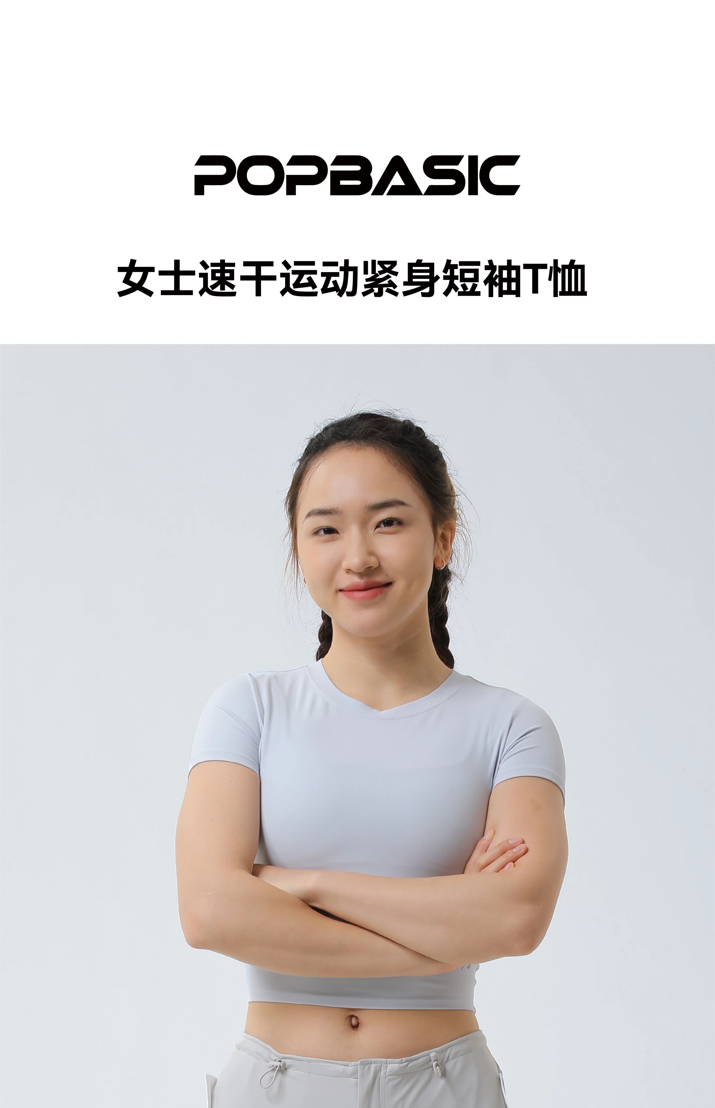 POPBASIC Highlight系列 运动健身服运动上衣无缝带胸垫落日粉