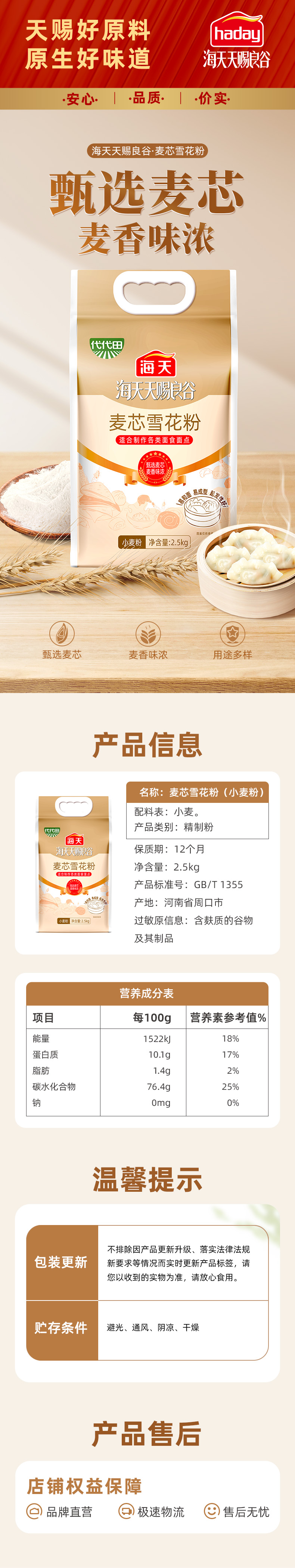 必选推荐-代代田麦芯雪花粉2.5kg面粉5斤适用各类面食面点四边封塑包产自河南