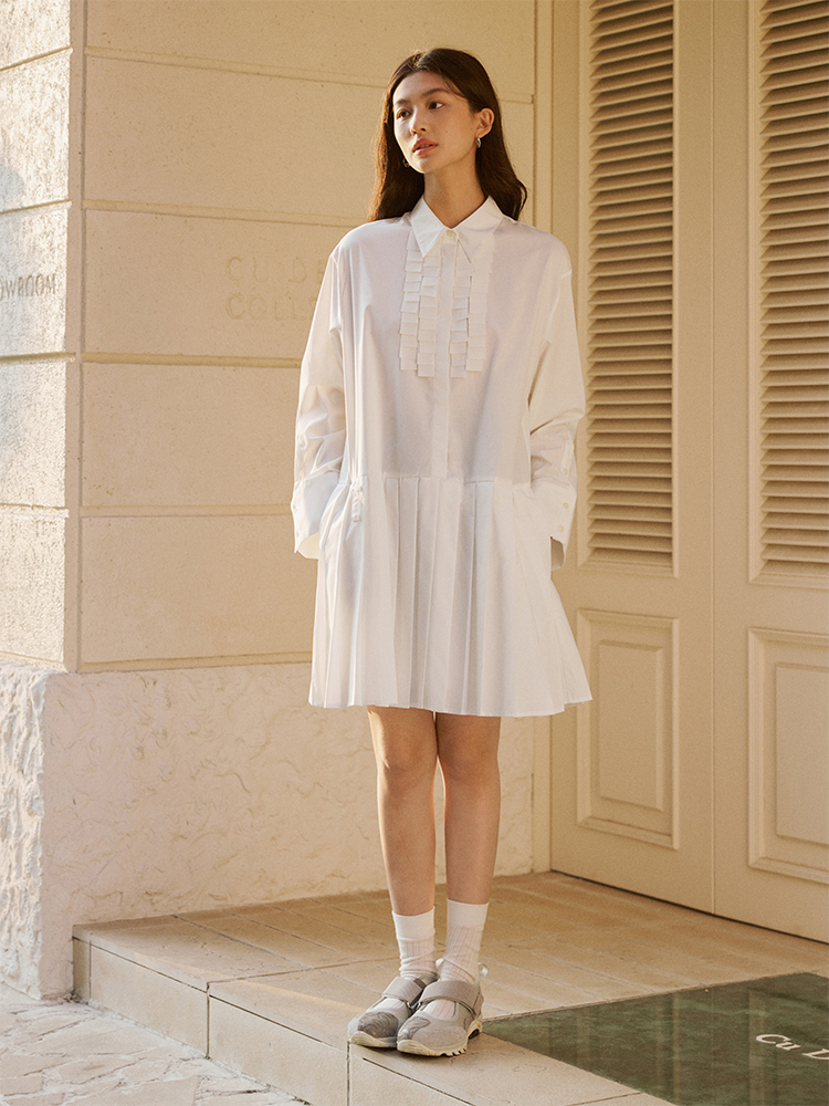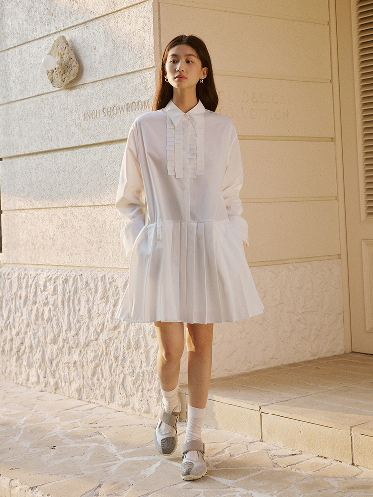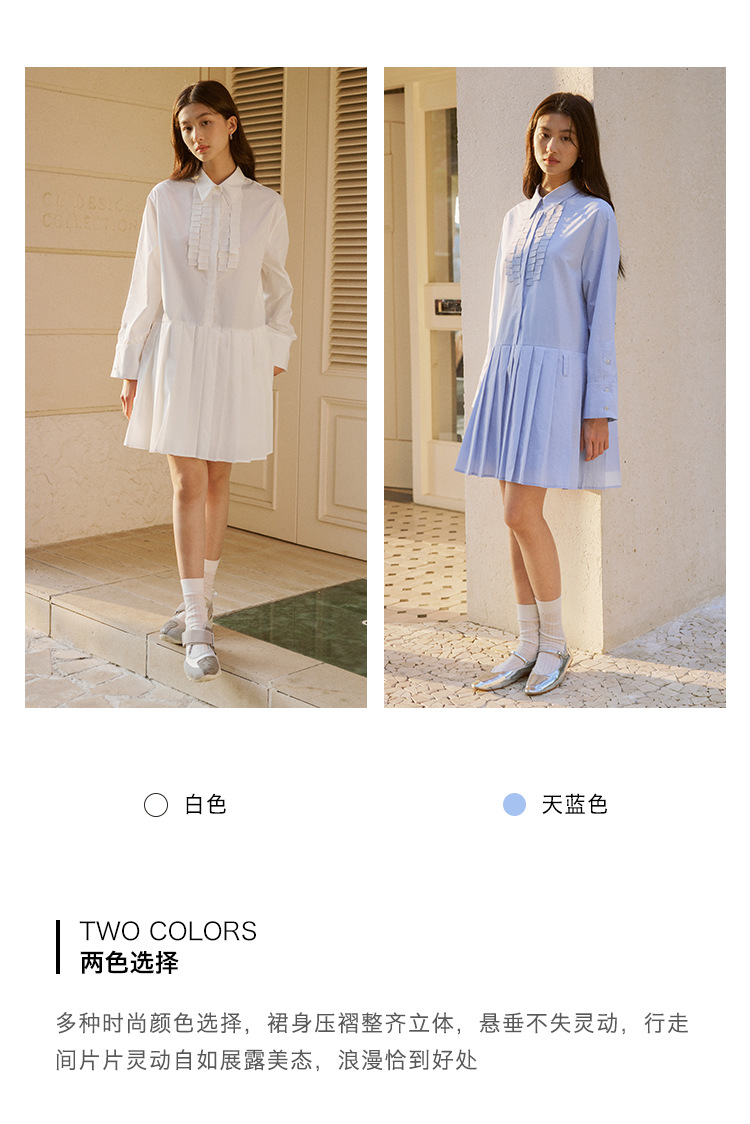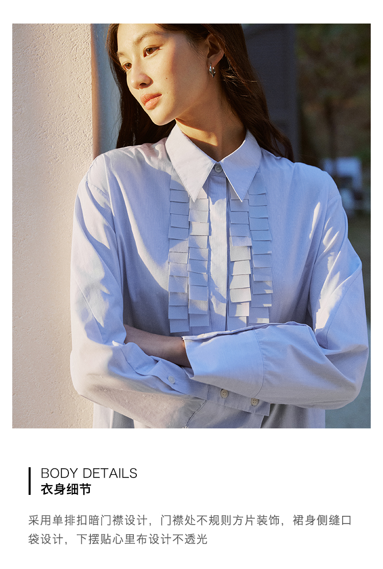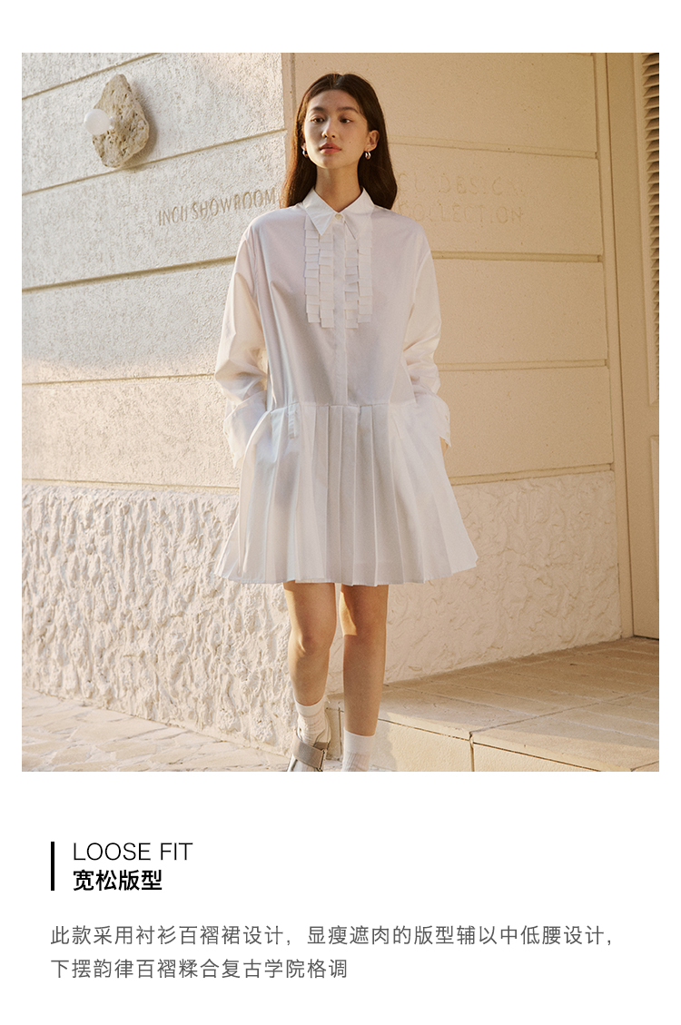 ForPoem 现货 24/SS原创设计片片装饰长袖宽松衬衫裙女百褶下摆连衣裙