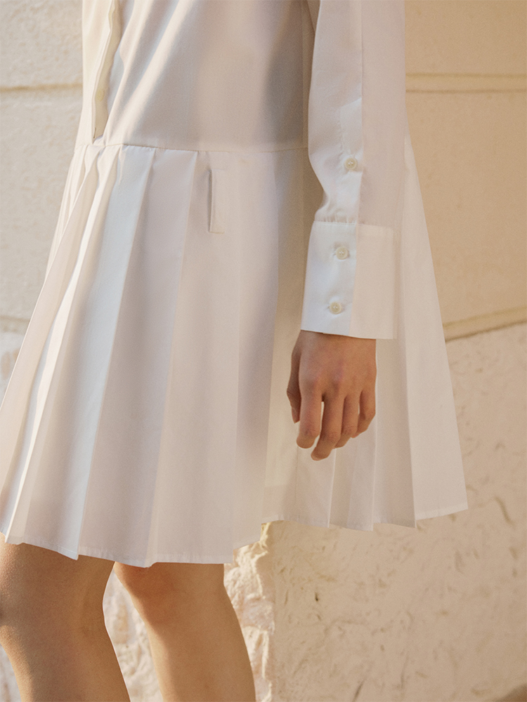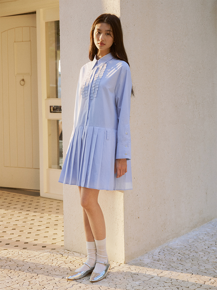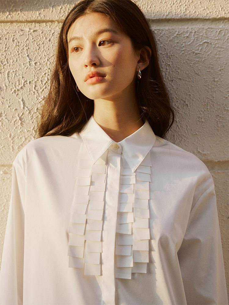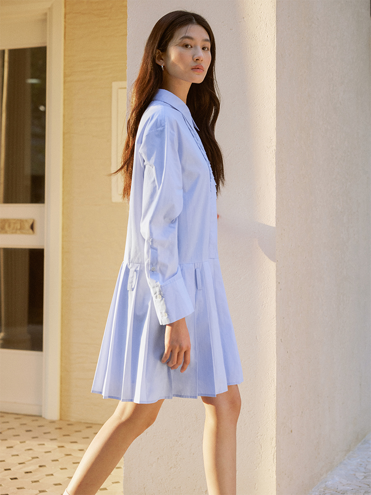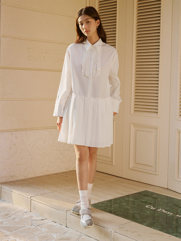 ForPoem 现货 24/SS原创设计片片装饰长袖宽松衬衫裙女百褶下摆连衣裙