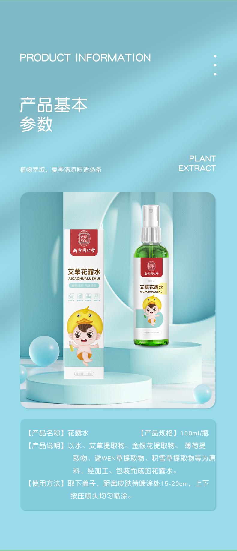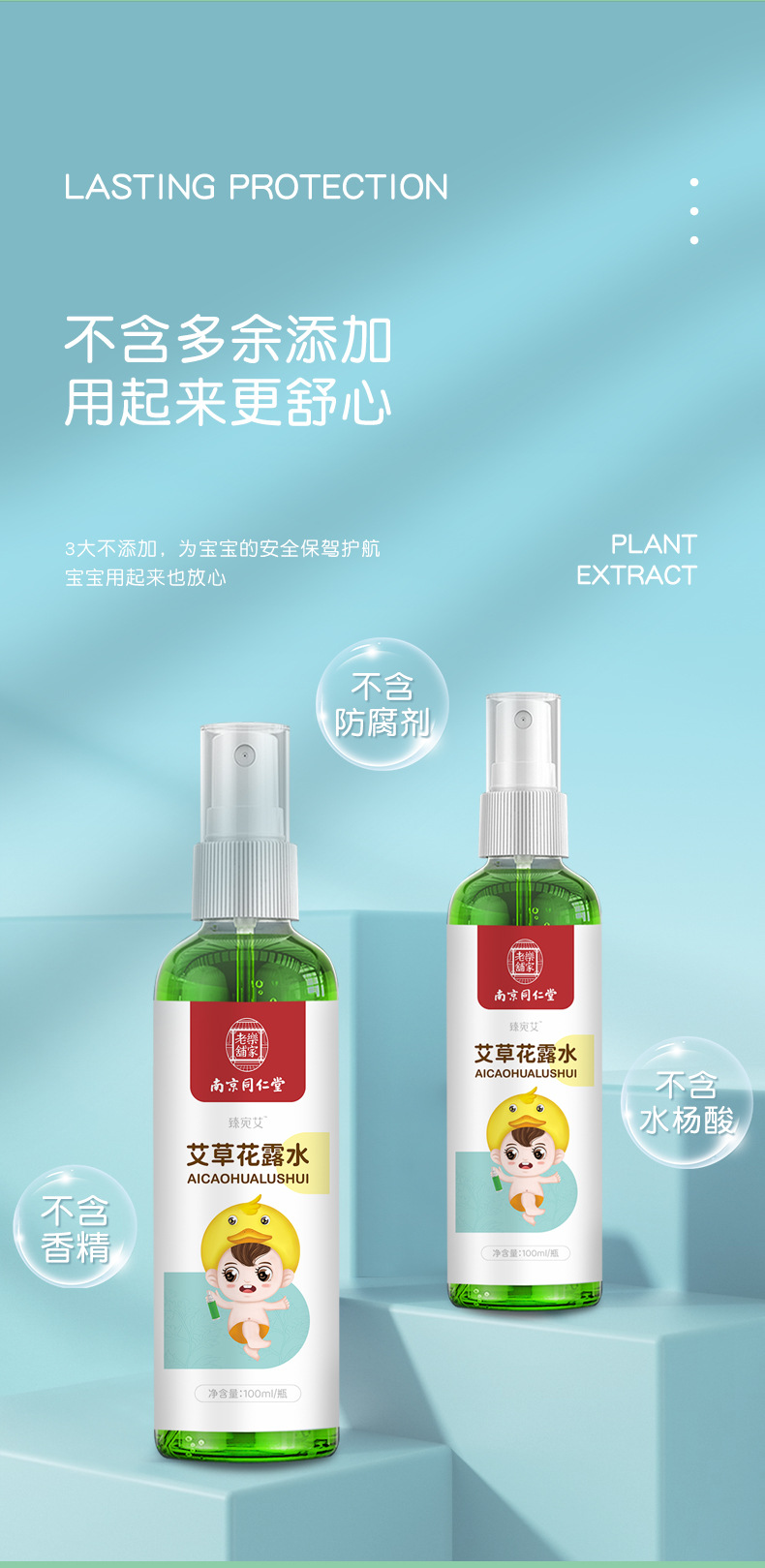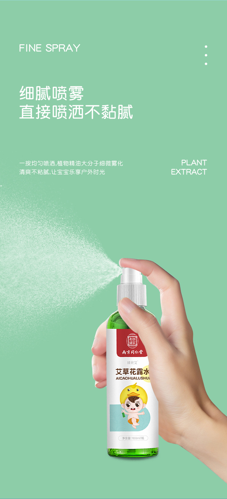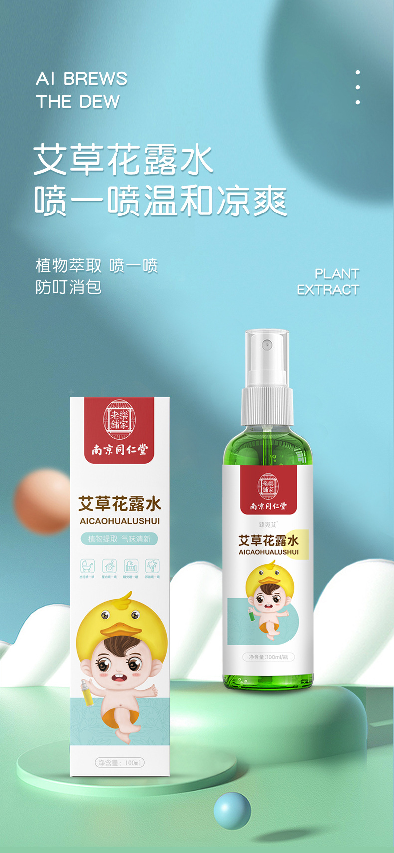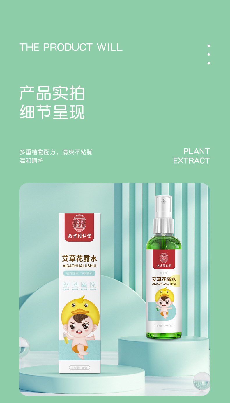 【南京同仁堂】艾草花露水100ml/瓶防叮咬消包植物萃取360°保护助浴伙伴不含防腐剂、香精、水杨酸随身携带