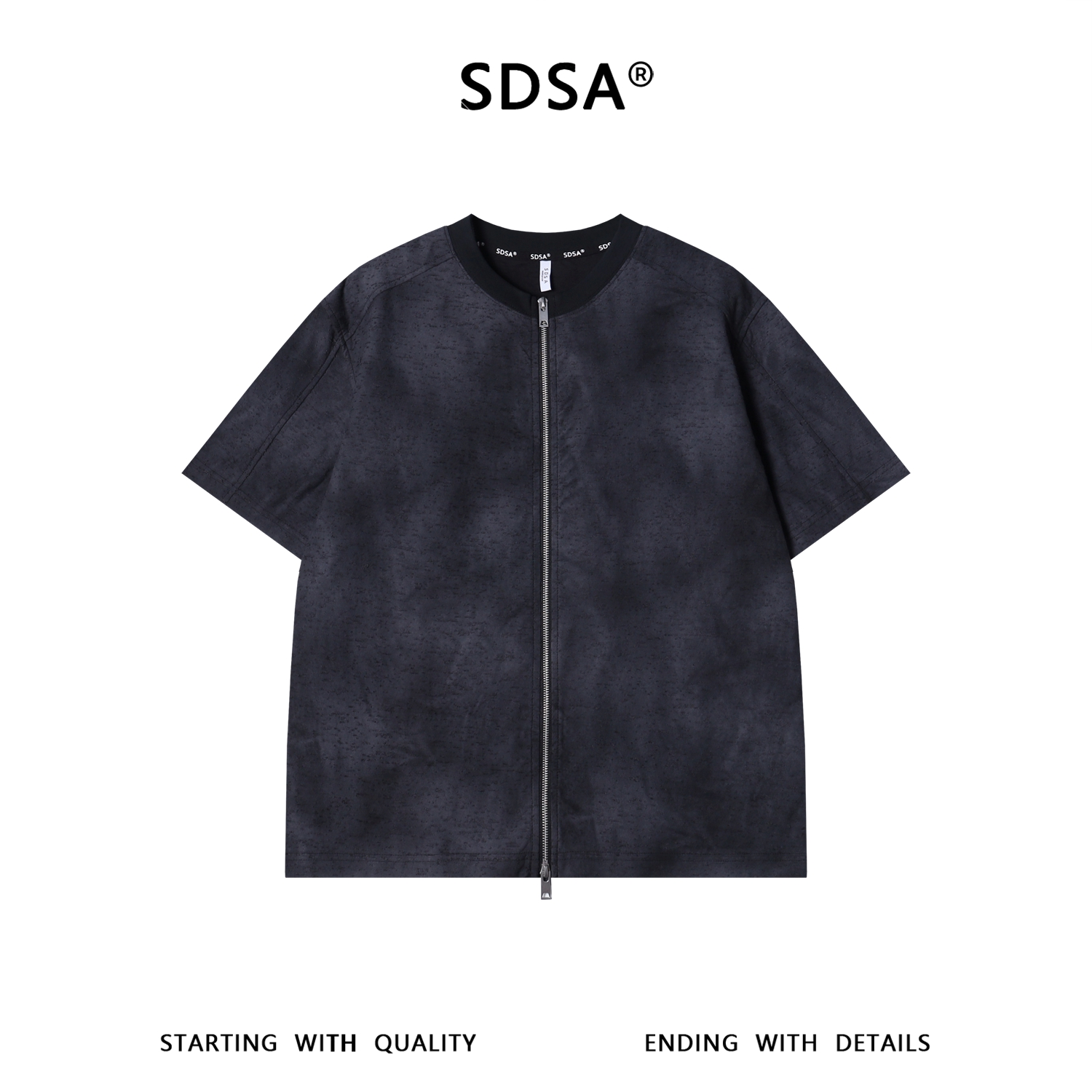 SDSA男装2026新款高贵轻奢潮牌扎染提花拉链开衫短袖T恤百搭时尚