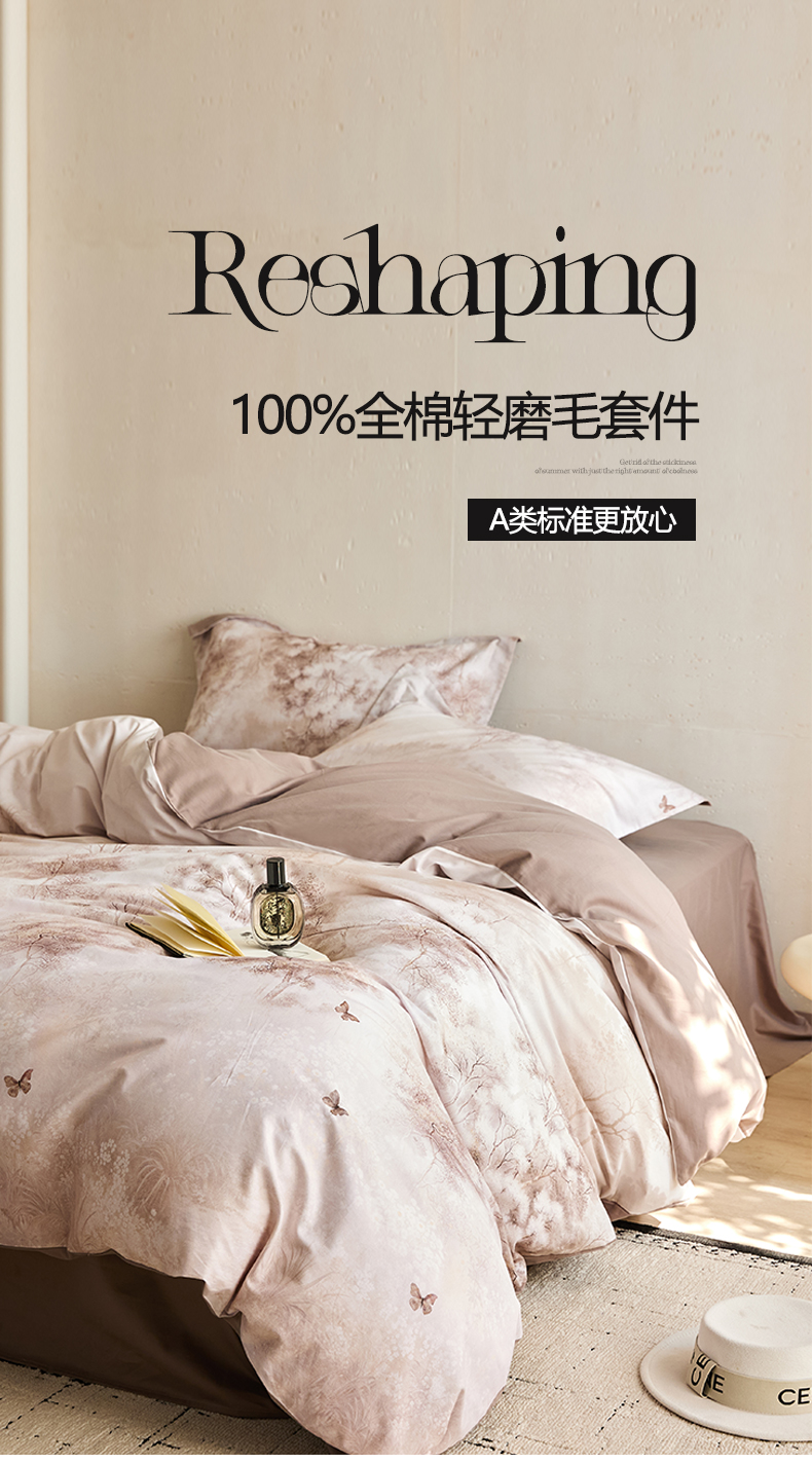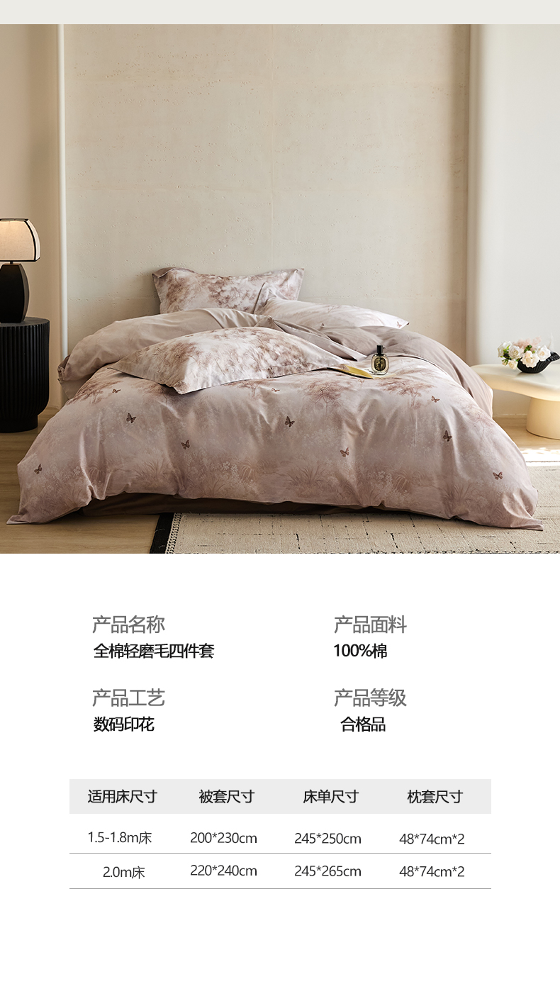 【品牌直发限时清仓】加倍生活 A类100支全棉长绒棉磨毛四件套礼盒装 多色可选