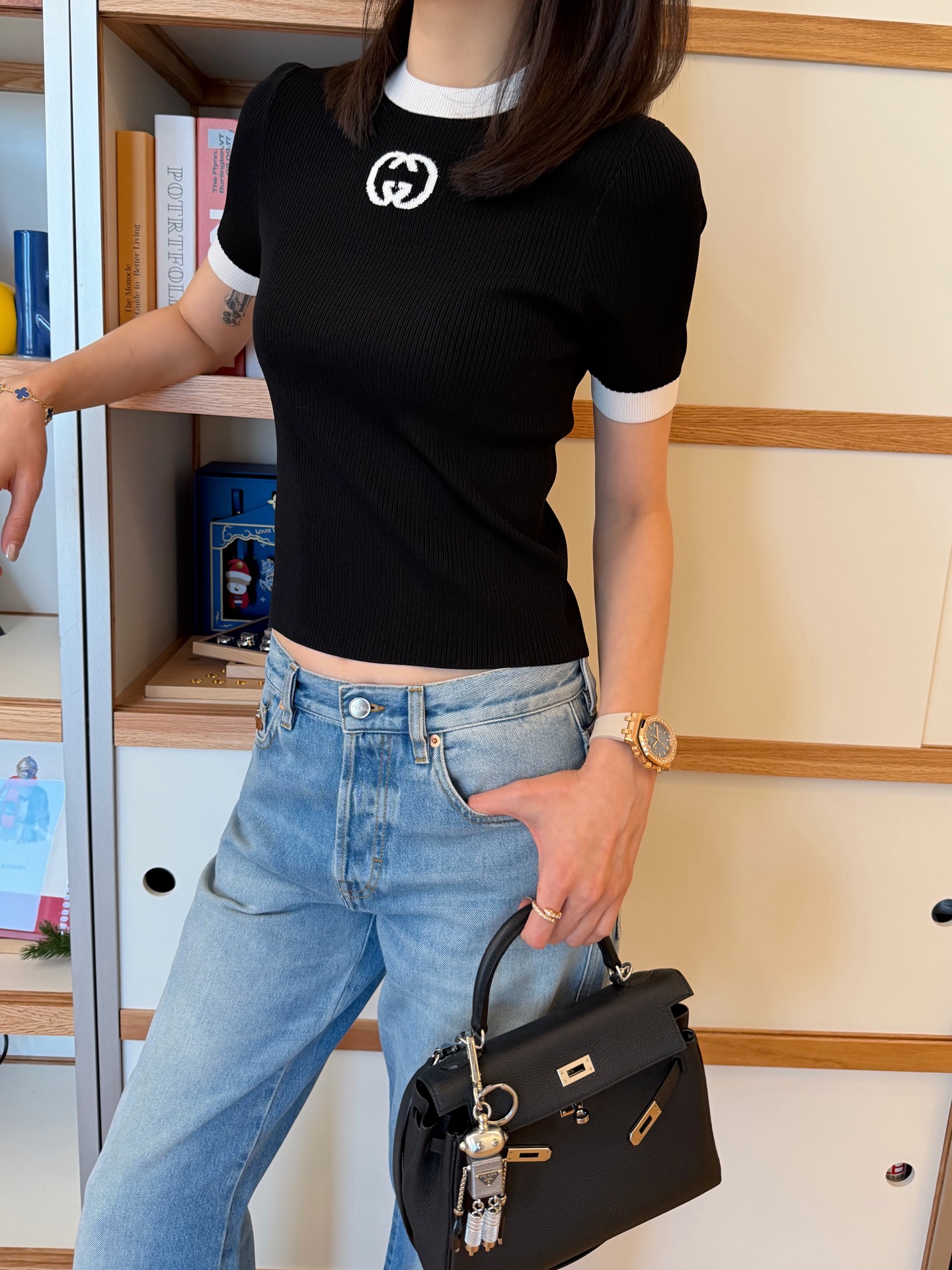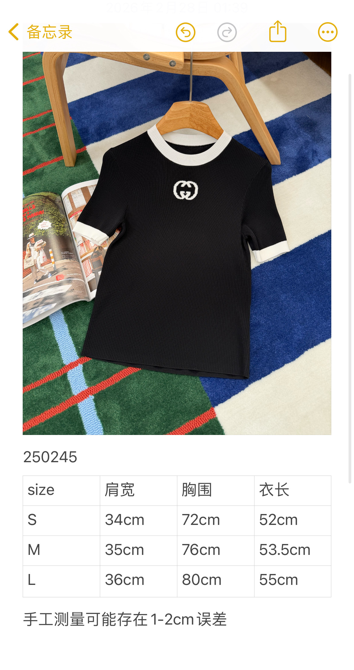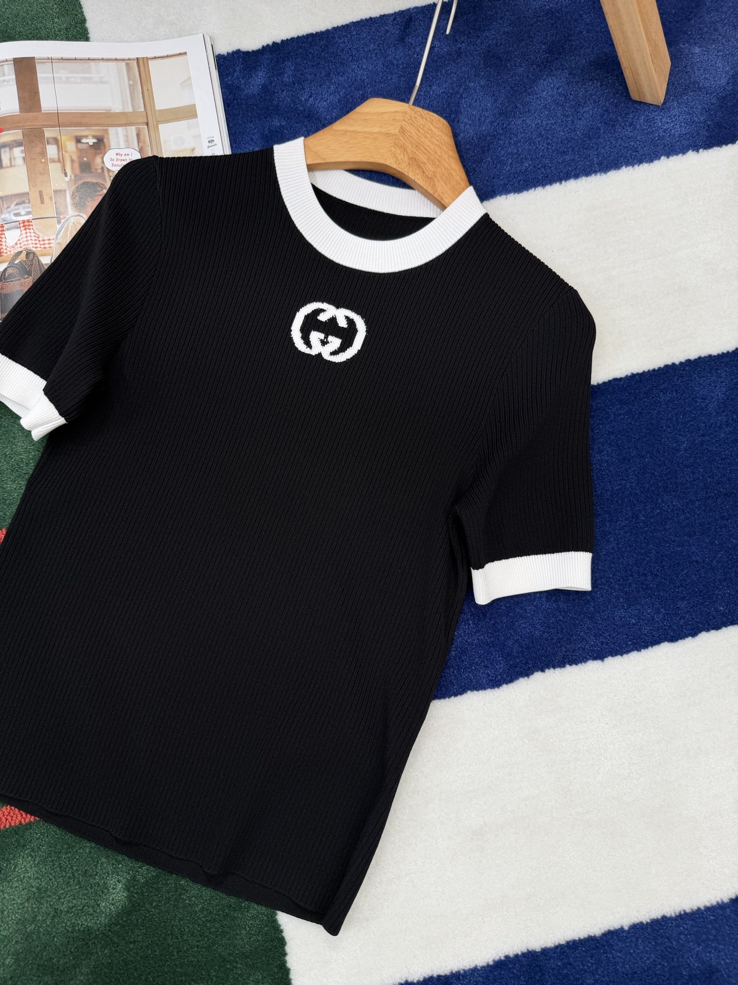 26春夏最新上线🆕字母针织短袖🥰顶级进口织机精密针织工艺😆😆YB定制纱线🧵两种材质混纺黄金配比凝于衣间🍒粘胶纤维赋予它如丝般的垂坠感与亲肤透气🫧聚酯纤维则赋予利落挺括与抗皱质感🌙让黑白撞色的罗纹细节更具弹性贴合度。胸口低调的字母标识💫在细腻肌理中悄然彰显品牌底蕴✨无需张扬,便已将松弛与精致的高级感🌼码数SML