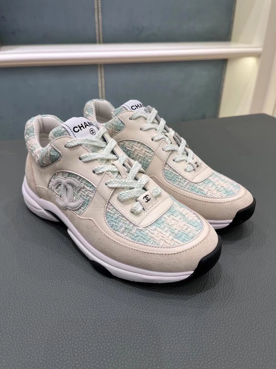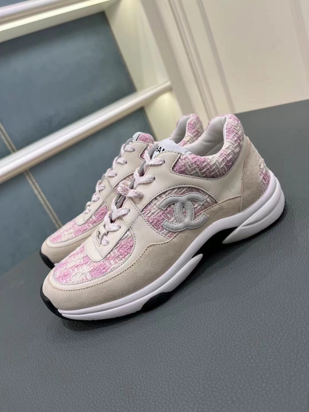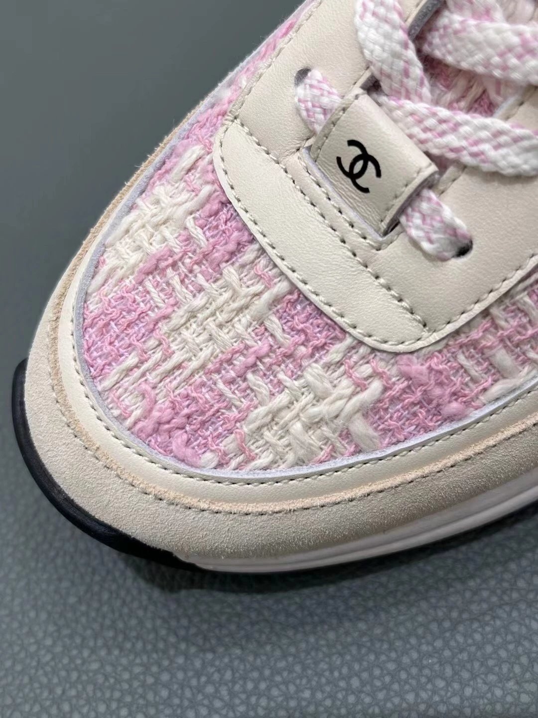 Chanel这个系列的休闲鞋大家都知道我们出过好几个版面了,虽然这款已经是轻车熟路,但这个最新的花呢颜色工艺还是花了很大功夫力争和zp一模一样,目前市面上这两个新色也有便宜的版本,但对于材质的排版和颜色的校对都不是那么准确,材质用料更是比较廉价,还是那句话——认准我们吧,给你惊喜!