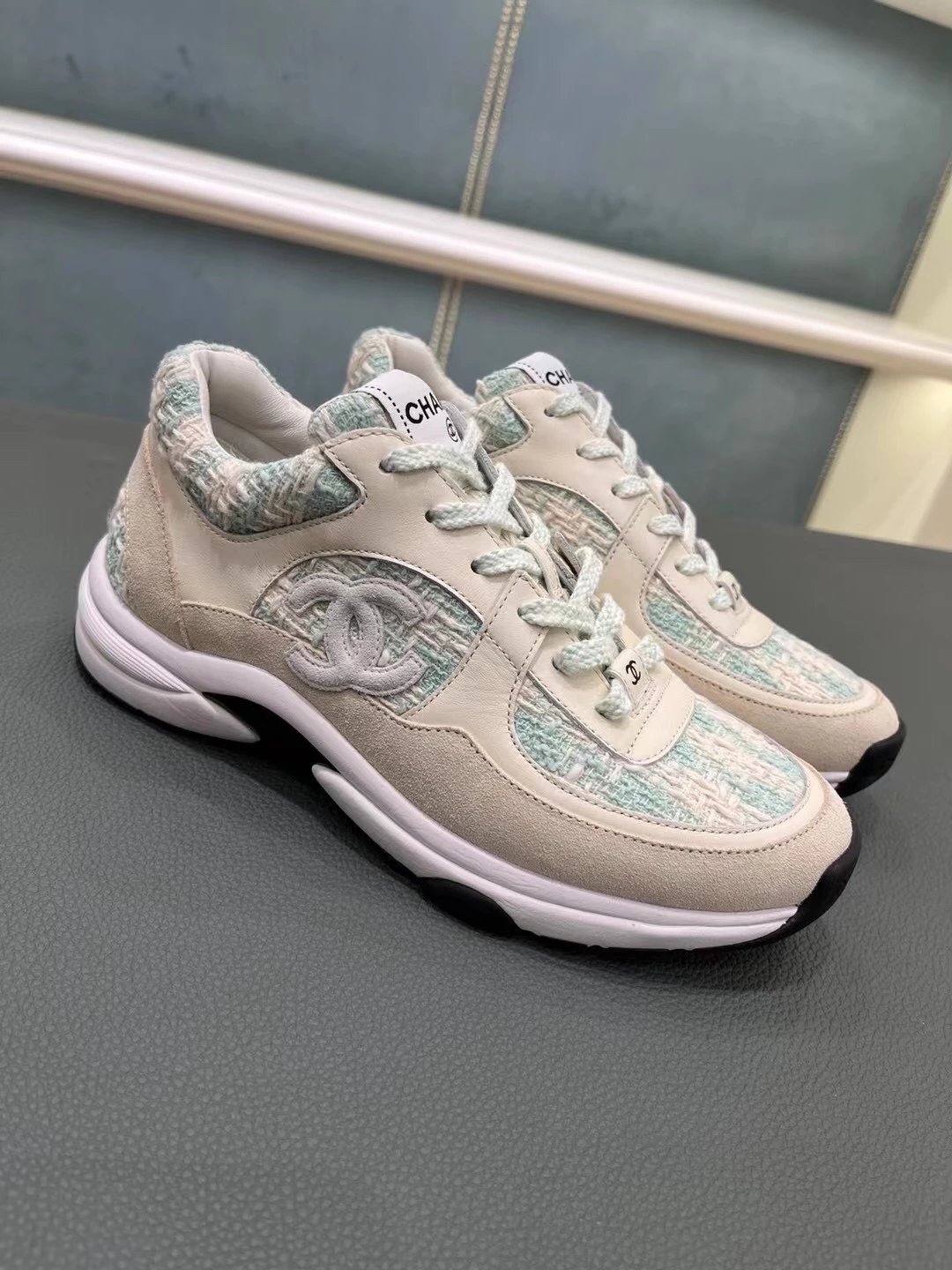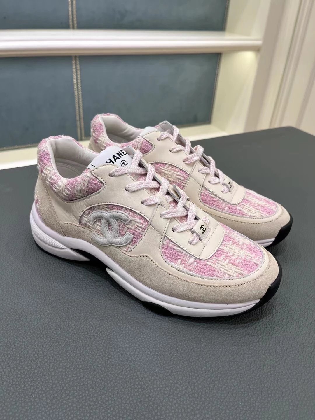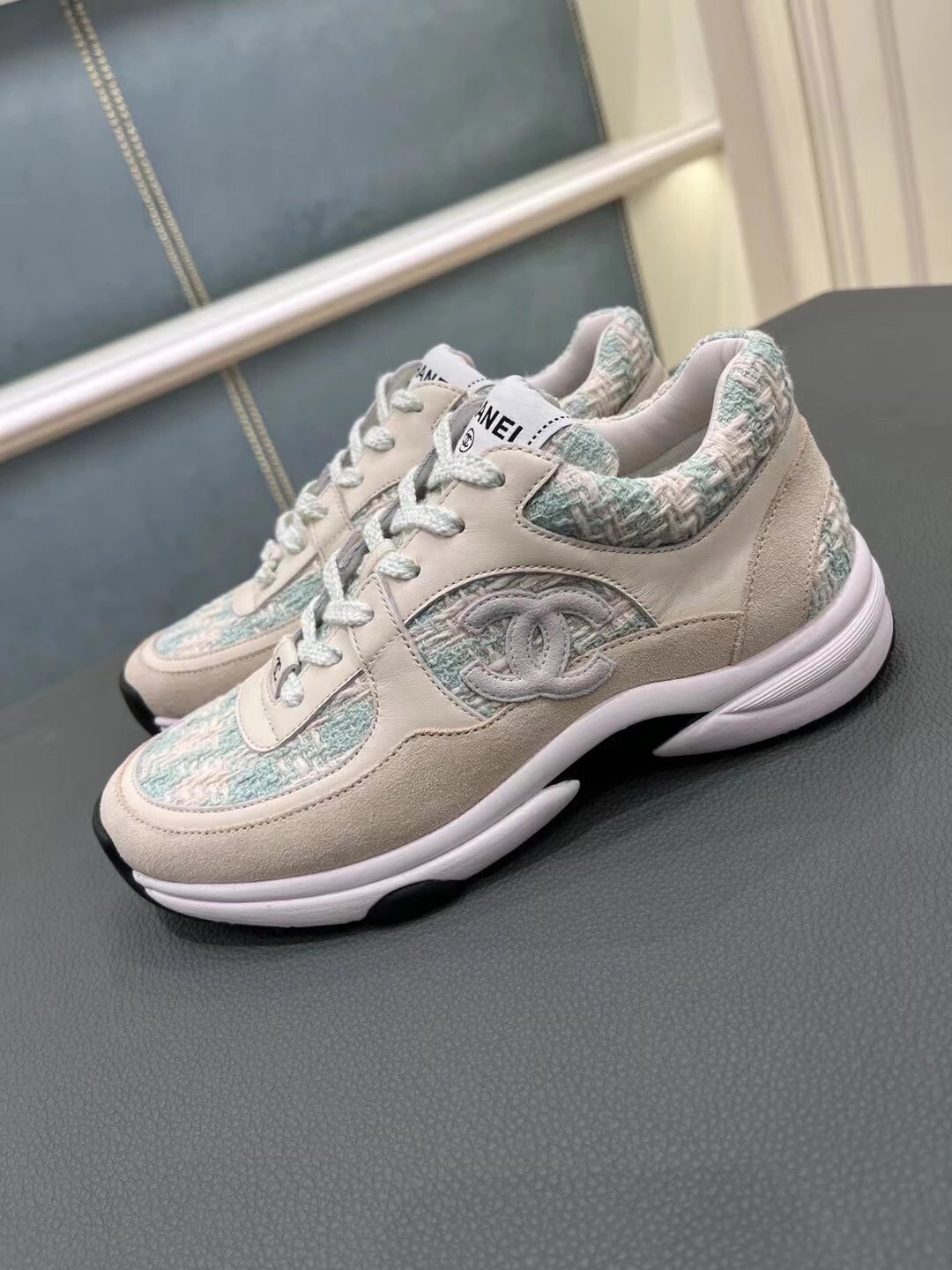 Chanel这个系列的休闲鞋大家都知道我们出过好几个版面了,虽然这款已经是轻车熟路,但这个最新的花呢颜色工艺还是花了很大功夫力争和zp一模一样,目前市面上这两个新色也有便宜的版本,但对于材质的排版和颜色的校对都不是那么准确,材质用料更是比较廉价,还是那句话——认准我们吧,给你惊喜!