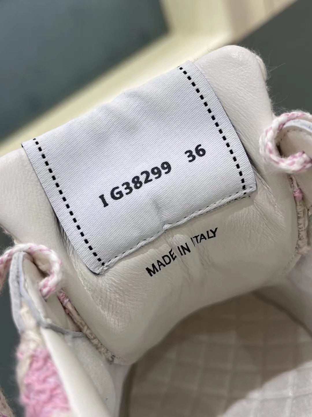 【面料】配色长在了多少人的审美点上啊,整个鞋面是由牛麂皮和花呢拼接的,米色的麂皮+奶蓝/粉白的花呢,配的鞋带也特别美丽,是由同色系编织的,配色真的好高级,很好搭配并且非常舒服,你们一定要冲!