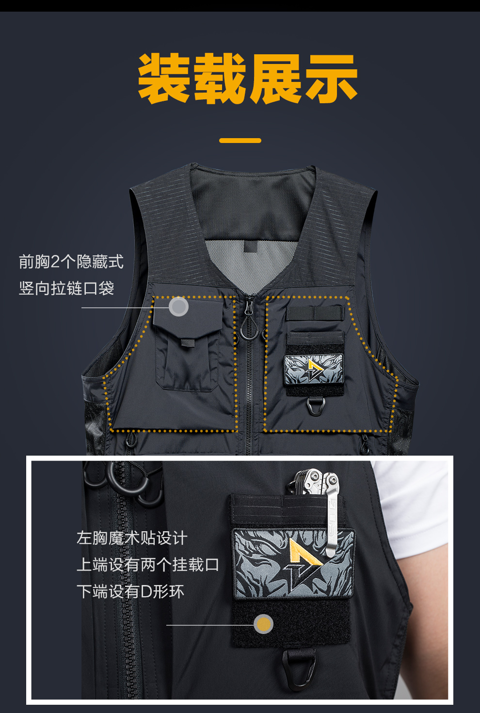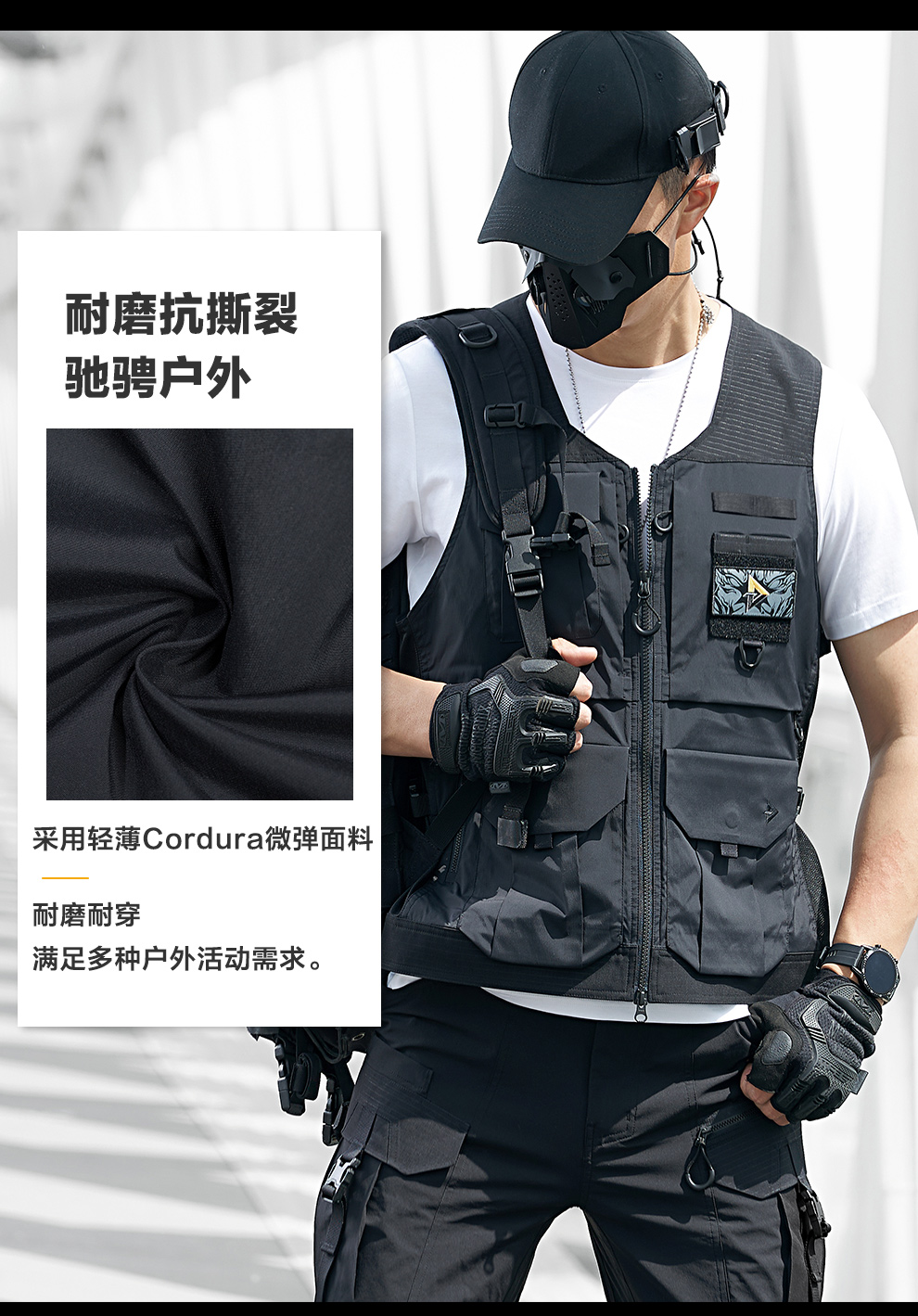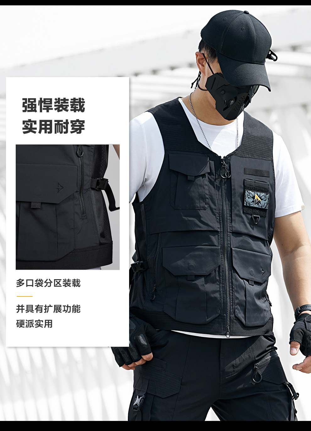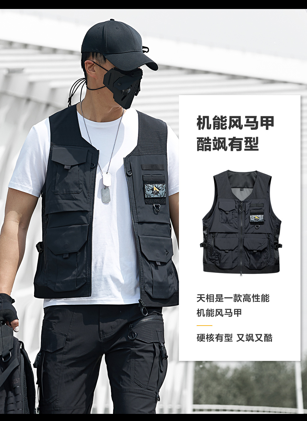 天相机能轻量马甲户外休闲运动工装风背心多口袋男透气无袖