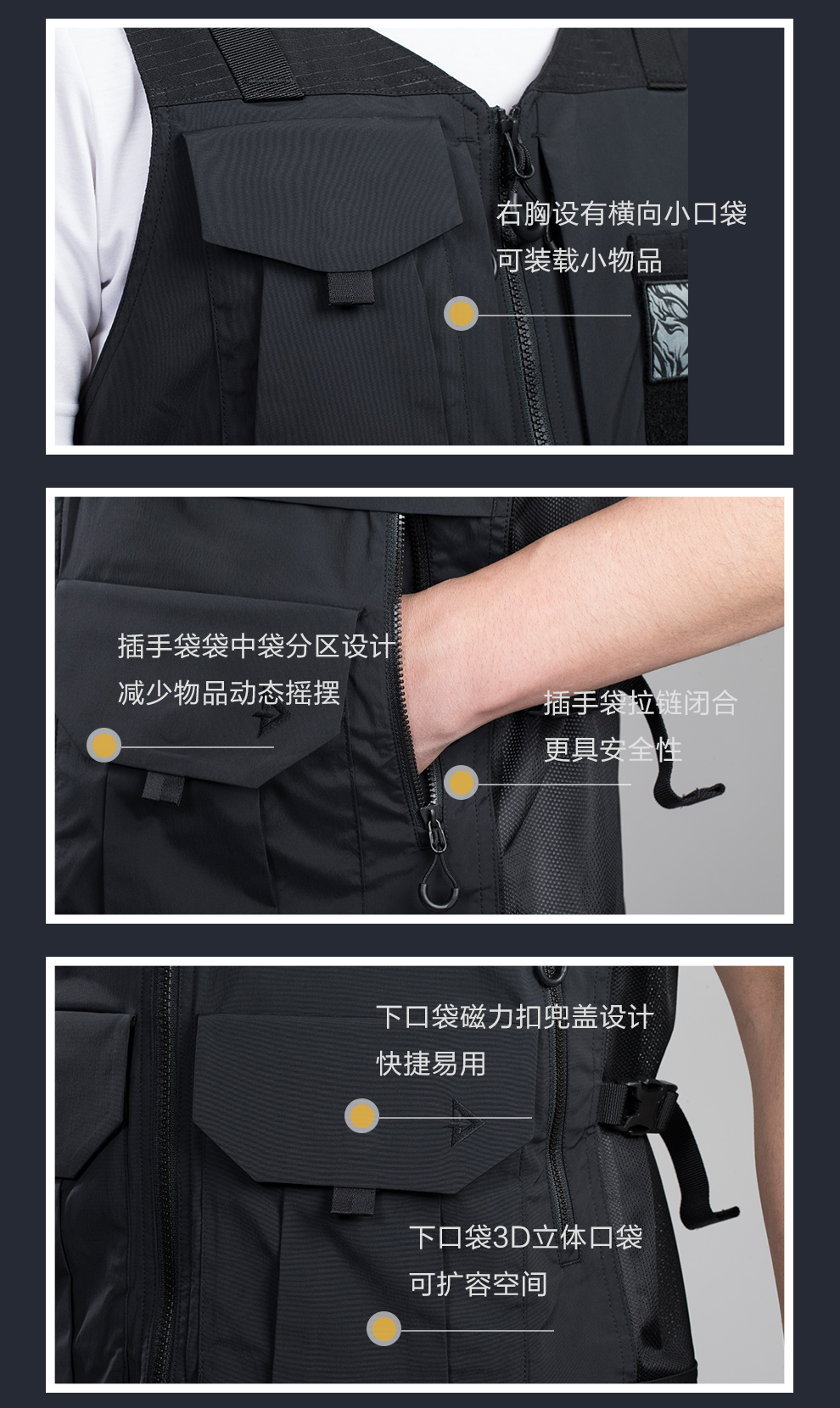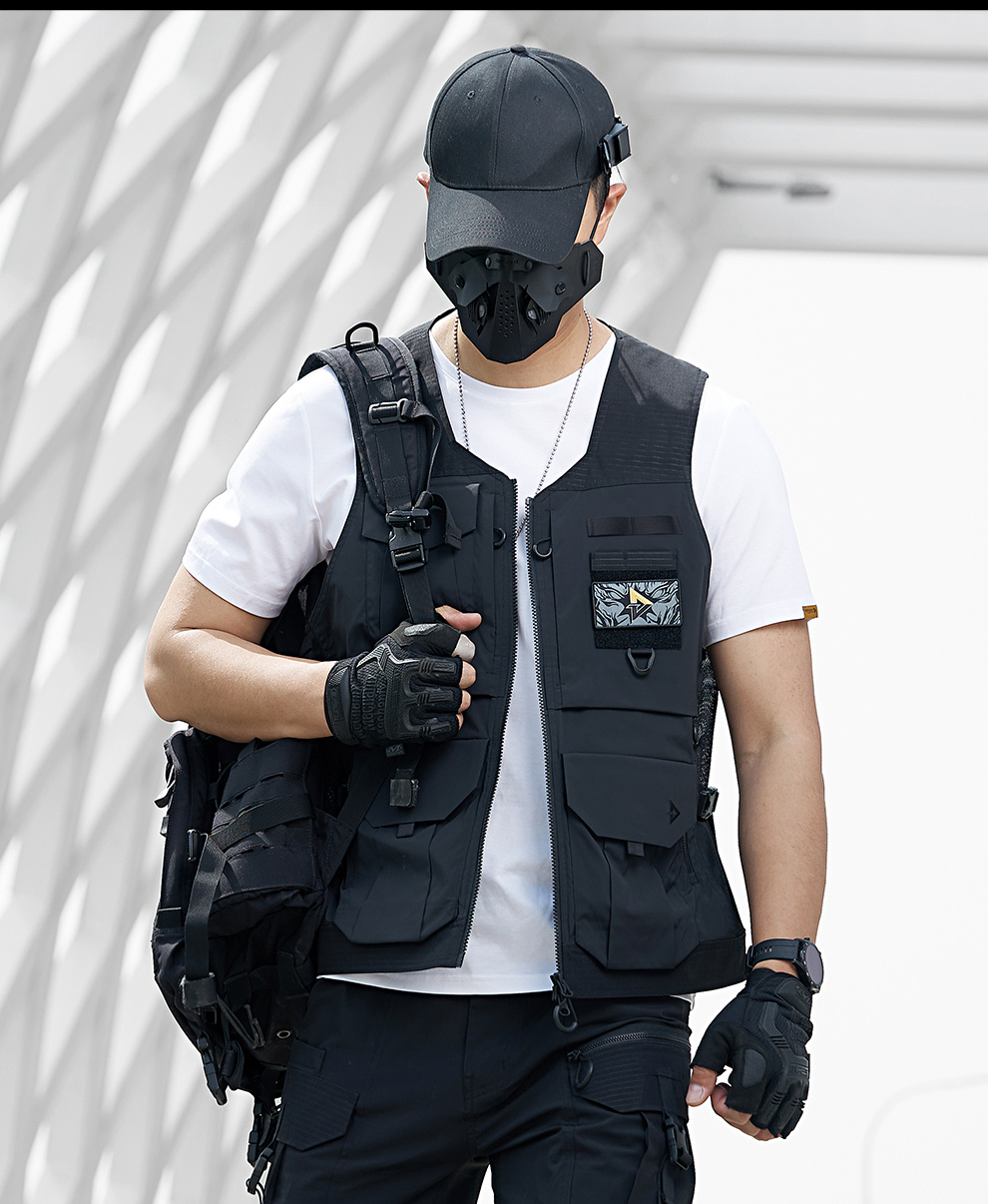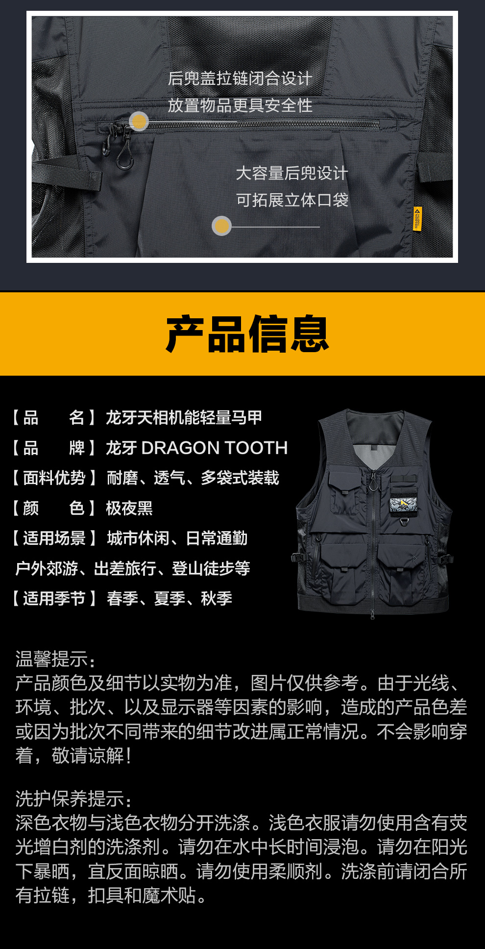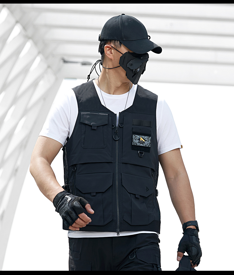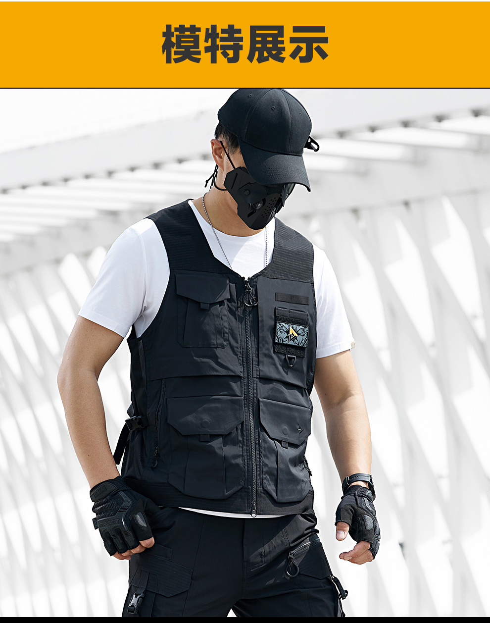 天相机能轻量马甲户外休闲运动工装风背心多口袋男透气无袖