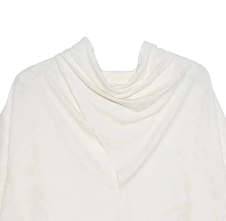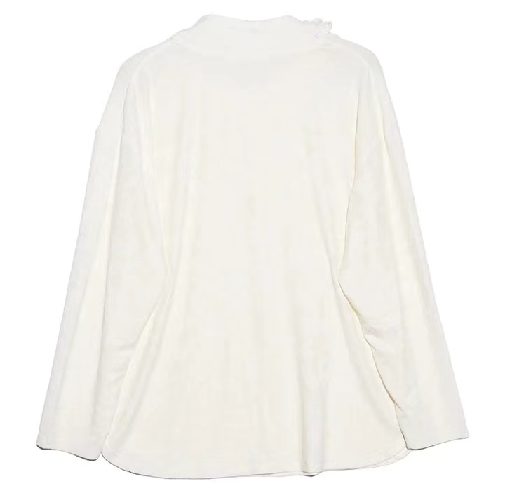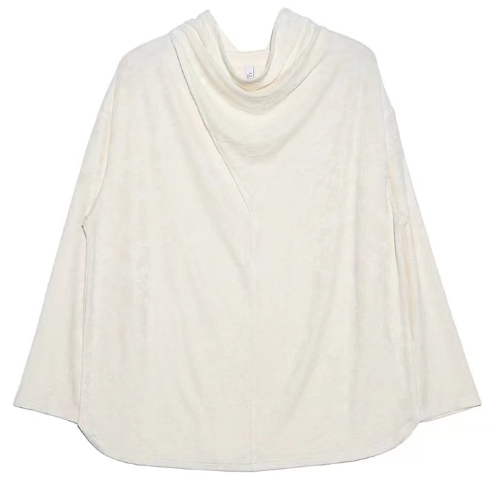 T472早春新款纯色堆堆领打底衫满印提花设计日常休闲宽松上衣