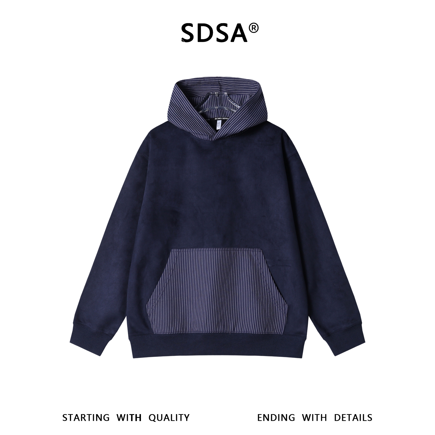 SDSA男士秋冬新款痞帅男装潮牌撞色条纹拼接连帽卫衣百搭时尚上衣