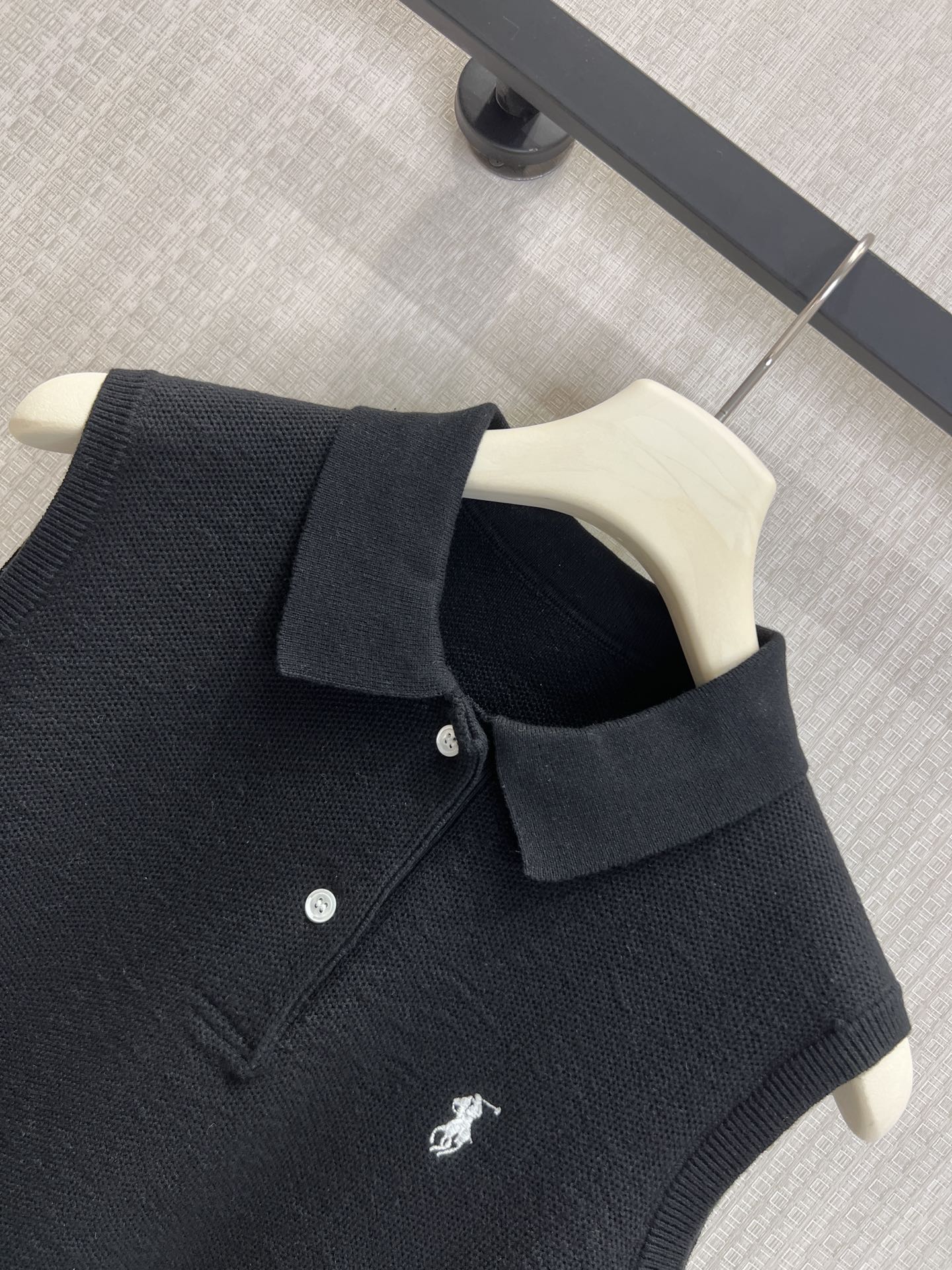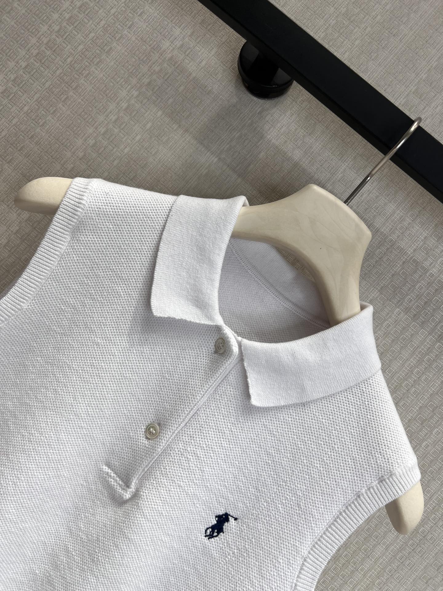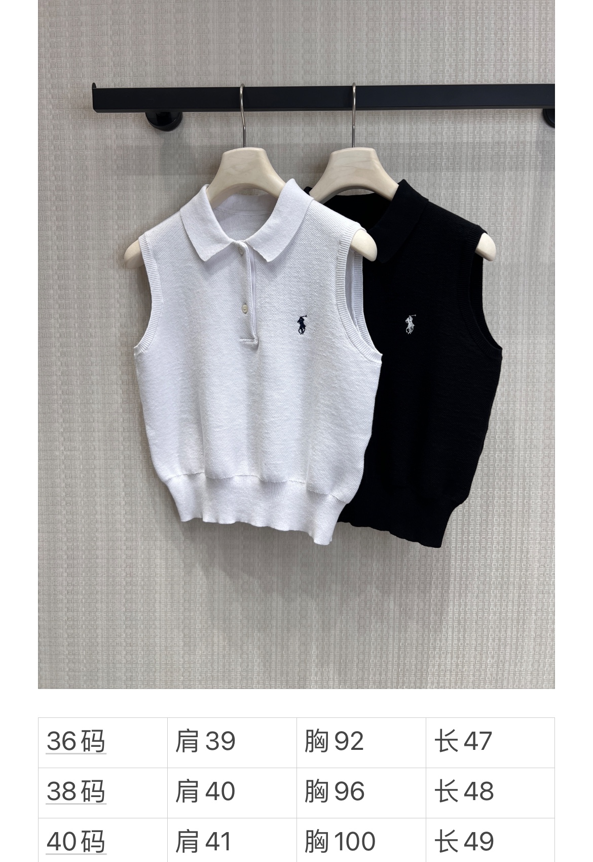 Ralp* 26SS春夏新款 无袖套头翻领polo针织背心丨⚠独家yb开发!顶级高版出品!标志性小马刺绣点缀胸前,低调传递品牌基因,黑白两色适配多元风格:白色干净通透,搭配印花牛仔或西装裤都自带松弛感;黑色酷感利落,叠穿白裤或半裙秒变都市通勤风。现货发售S/M/L