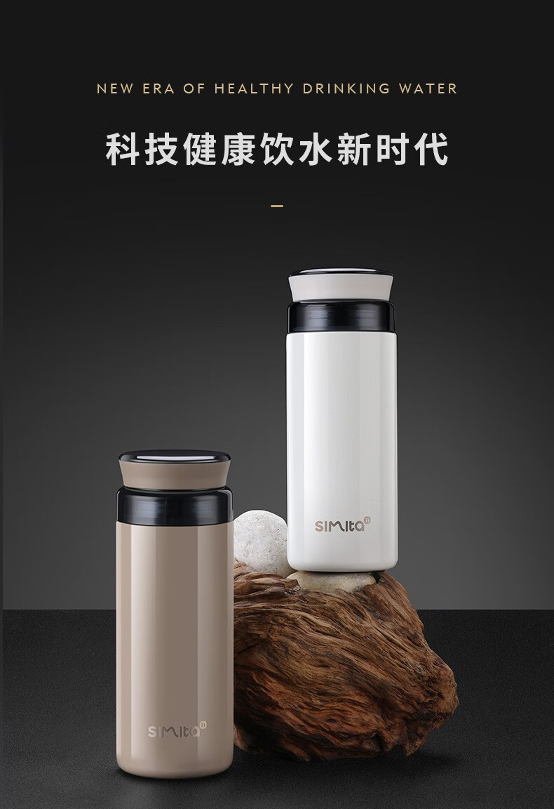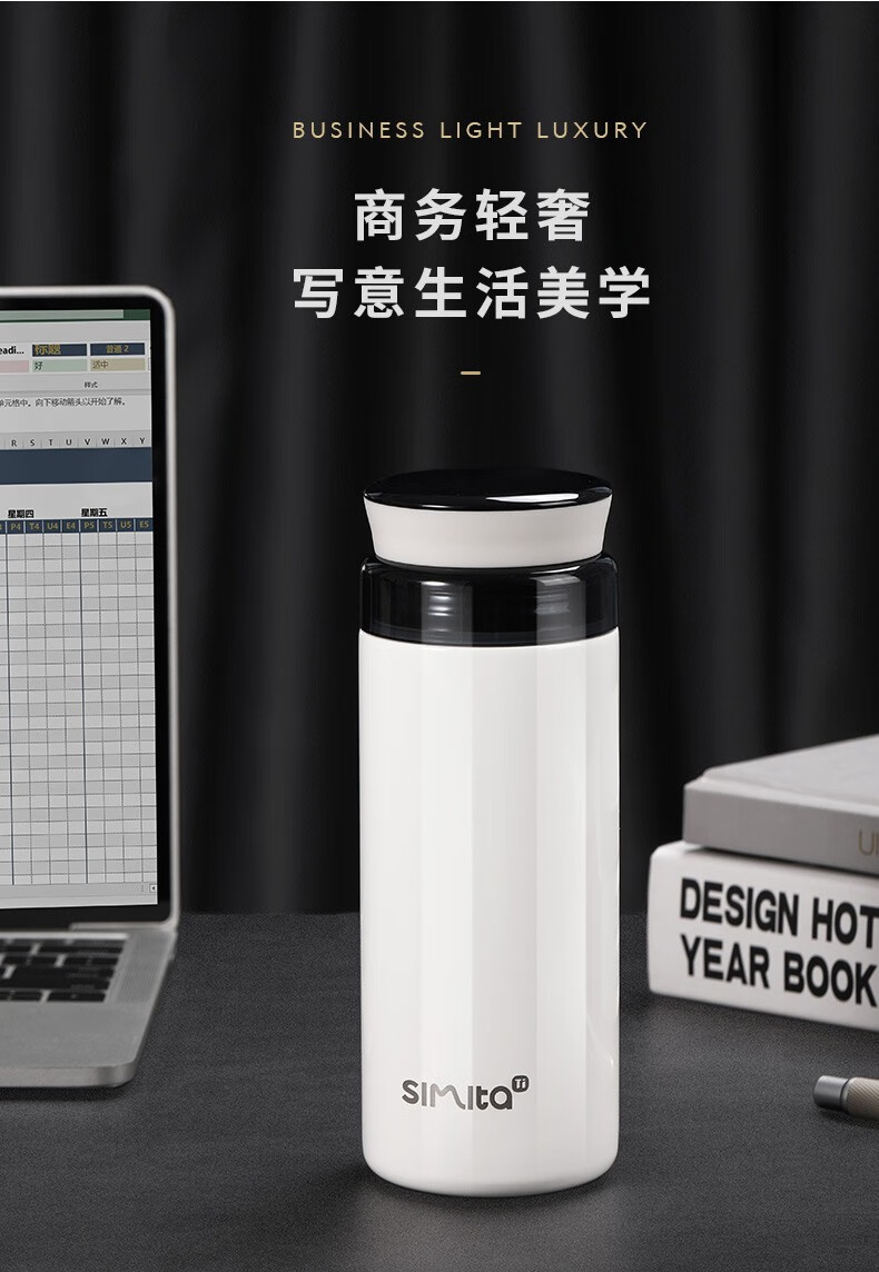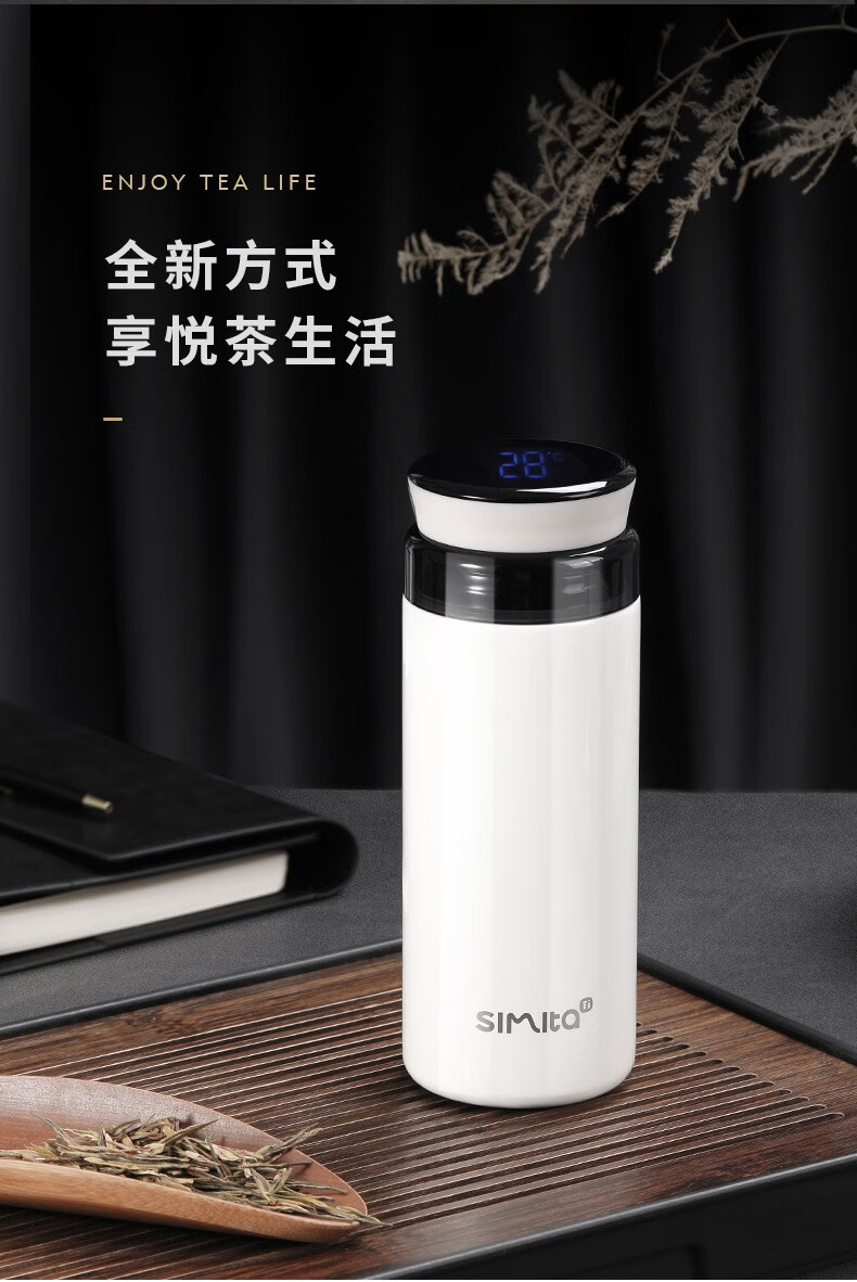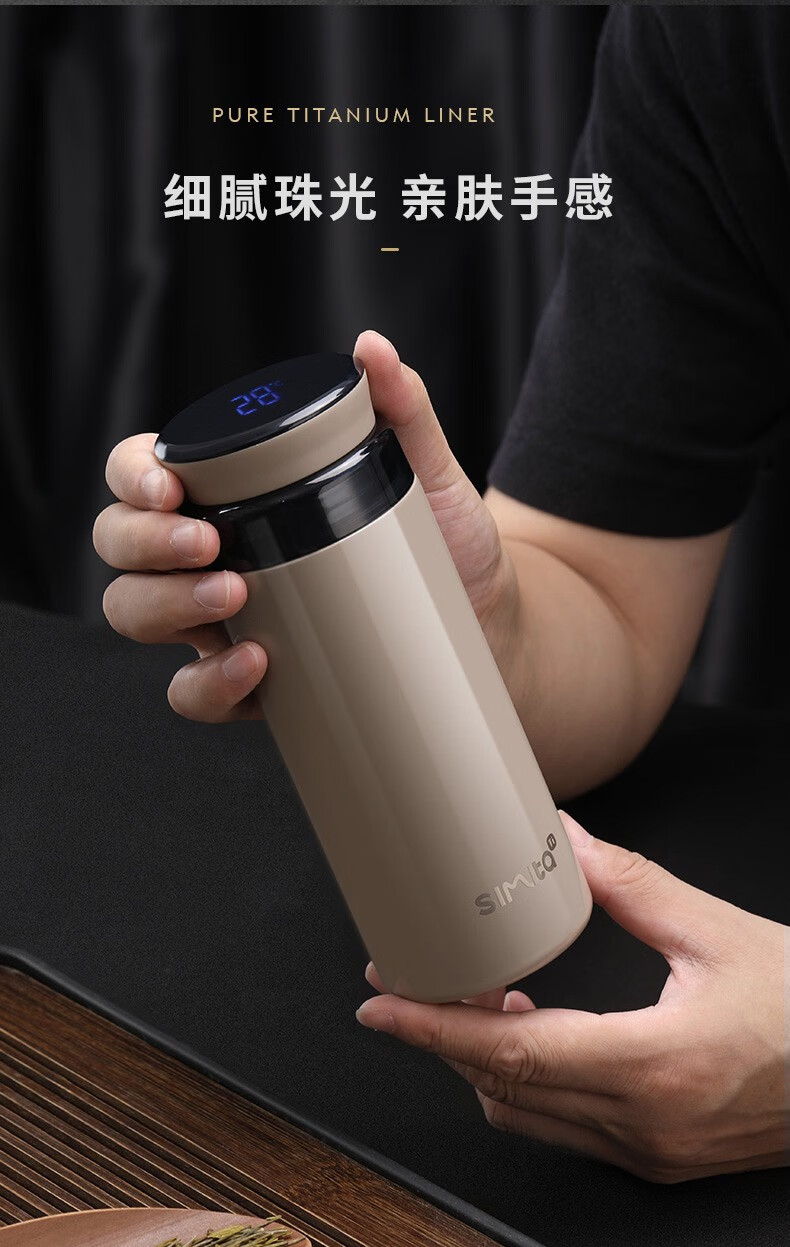 施密特(Simita)Simita纯钛保温杯男女士高颜值温显钛杯商务便携泡茶杯子刻字定制 白色 MTi1001-038A