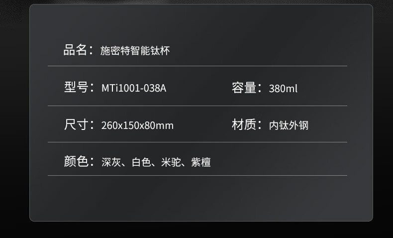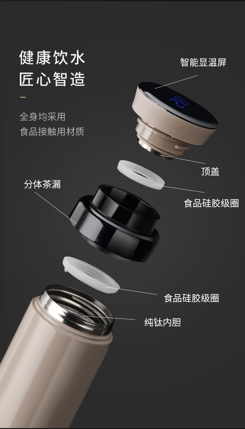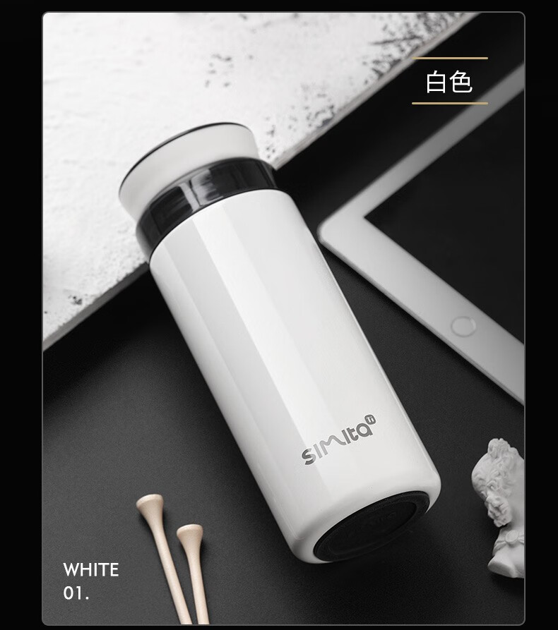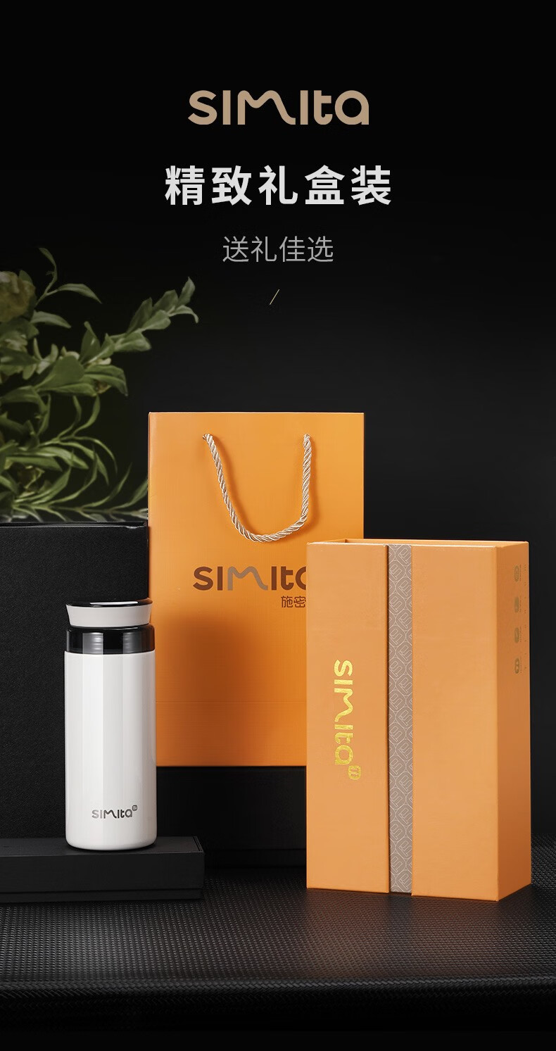 施密特(Simita)Simita纯钛保温杯男女士高颜值温显钛杯商务便携泡茶杯子刻字定制 白色 MTi1001-038A