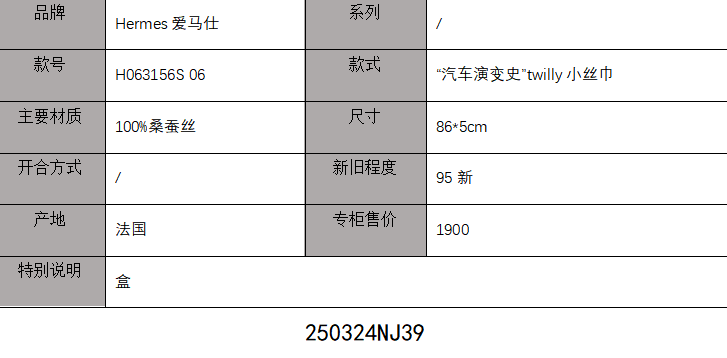 【95新】Hermes爱马仕 “汽车演变史”twilly小丝巾 250324NJ39