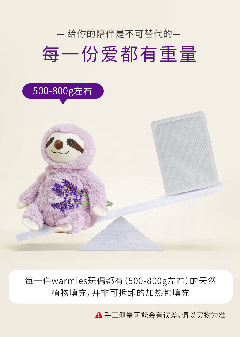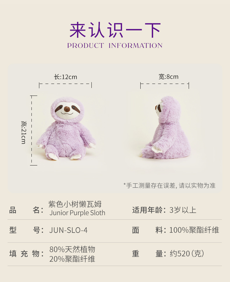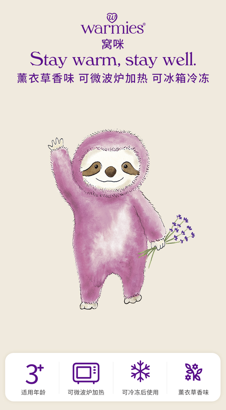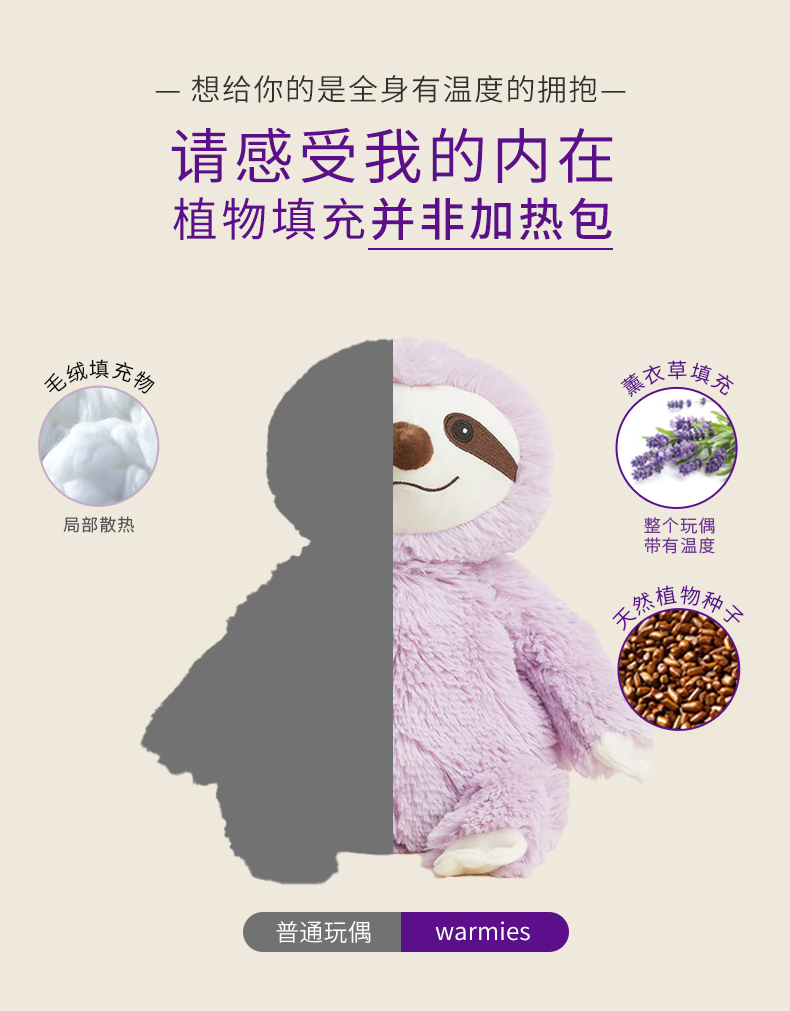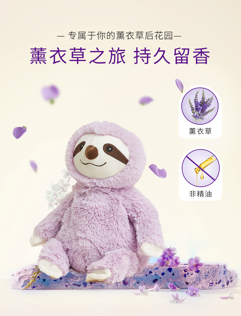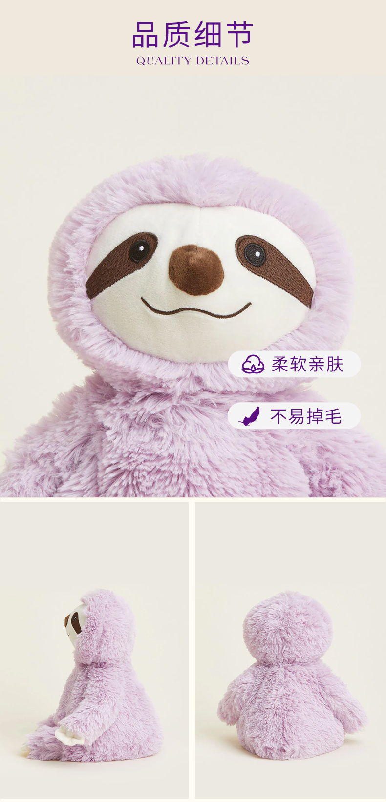 英国warmies 紫色小树懒瓦姆安抚玩偶公仔送礼毛绒可加热抱枕