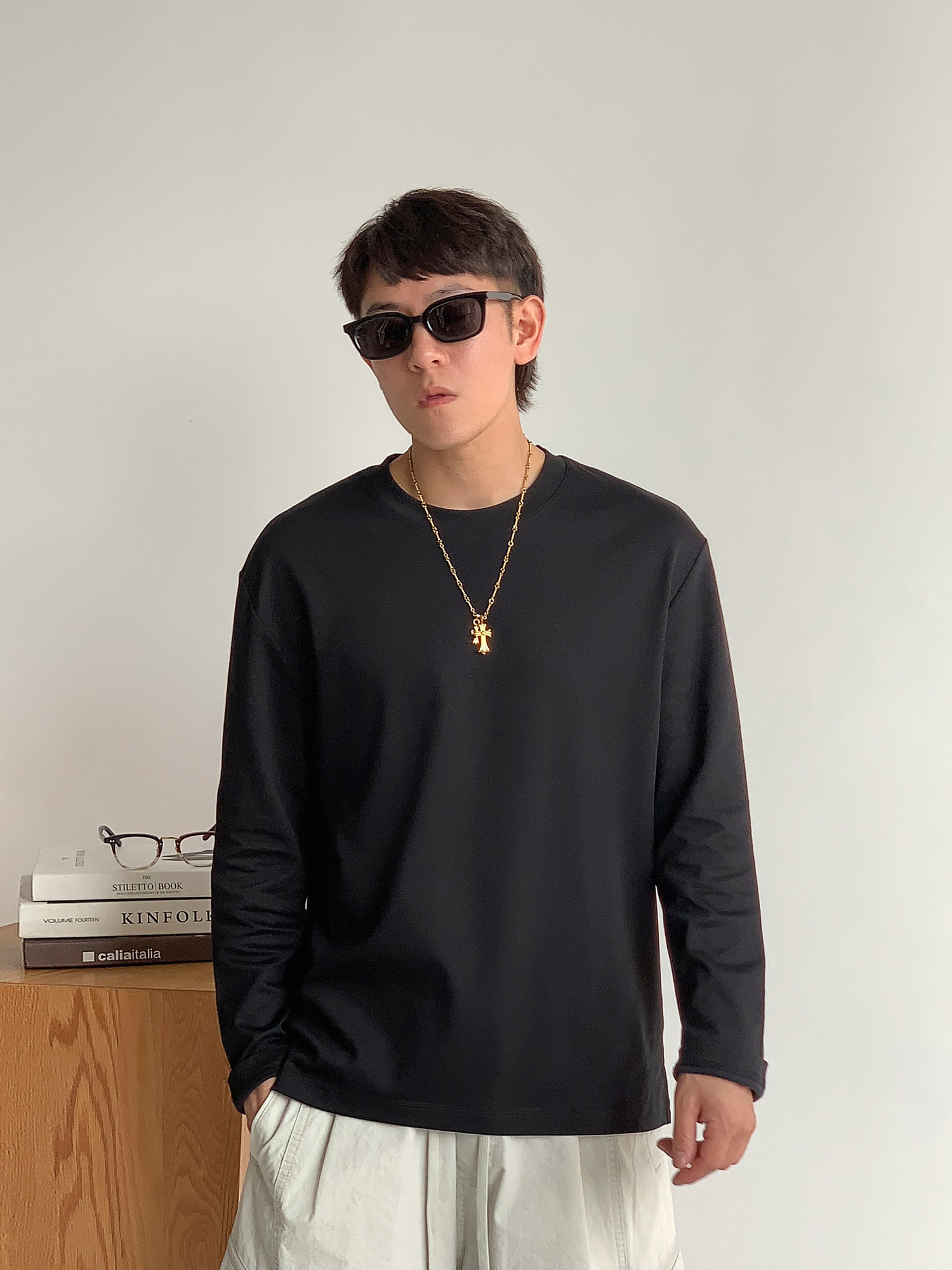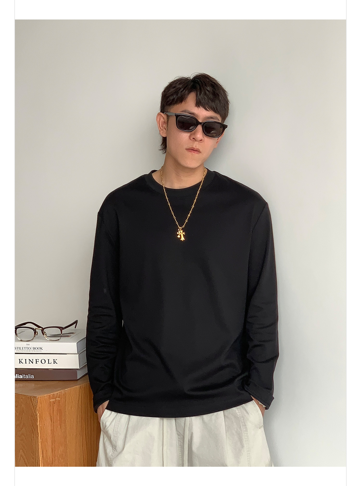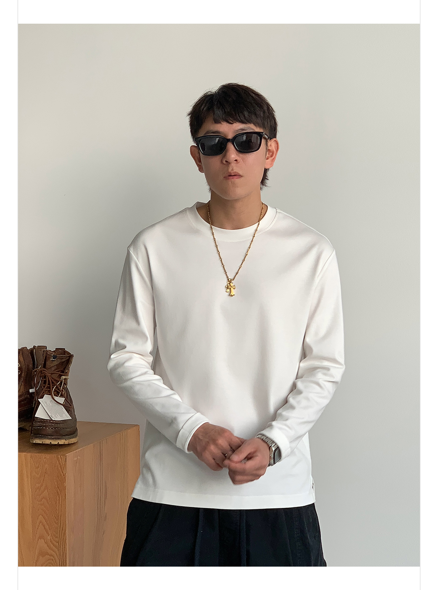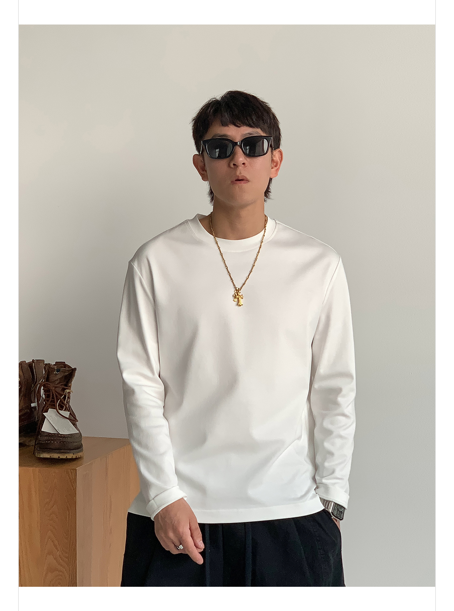 徐太浪260g透气纯棉基础款长袖T恤男夏季宽松休闲圆领打底衫上衣