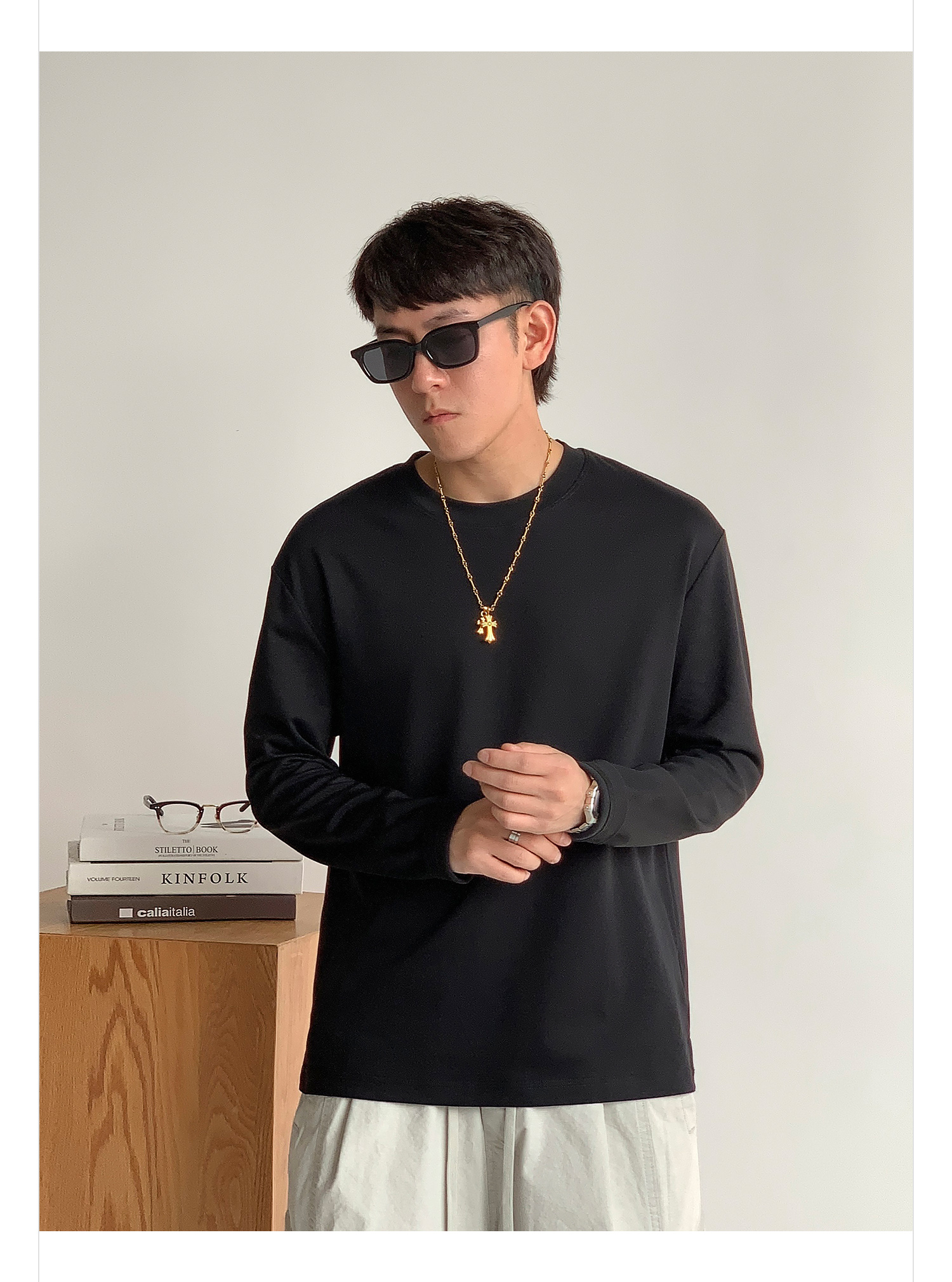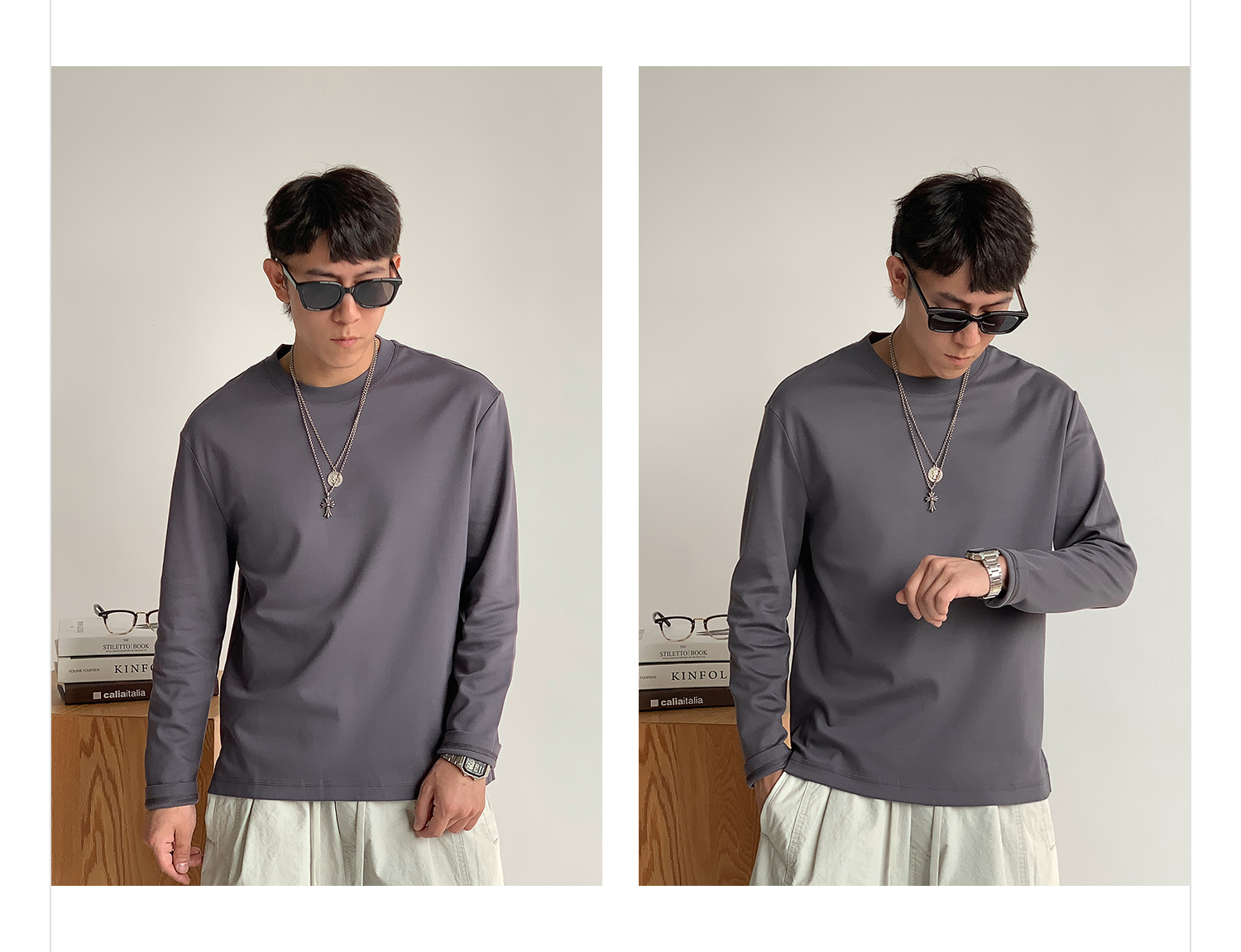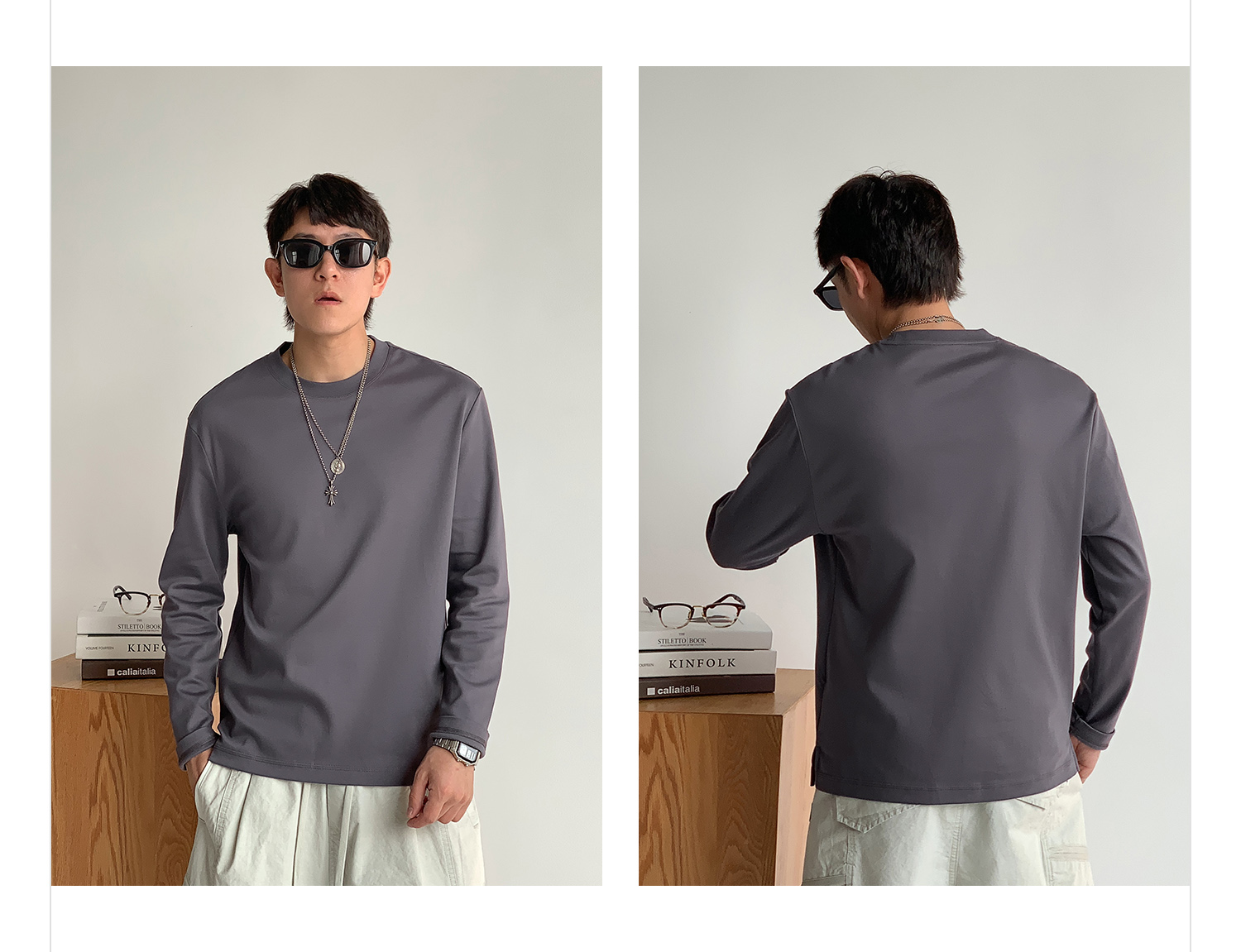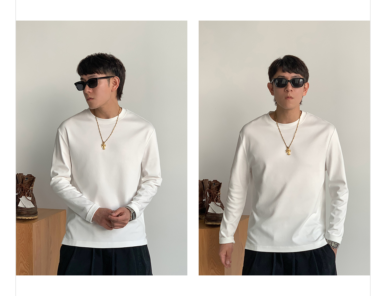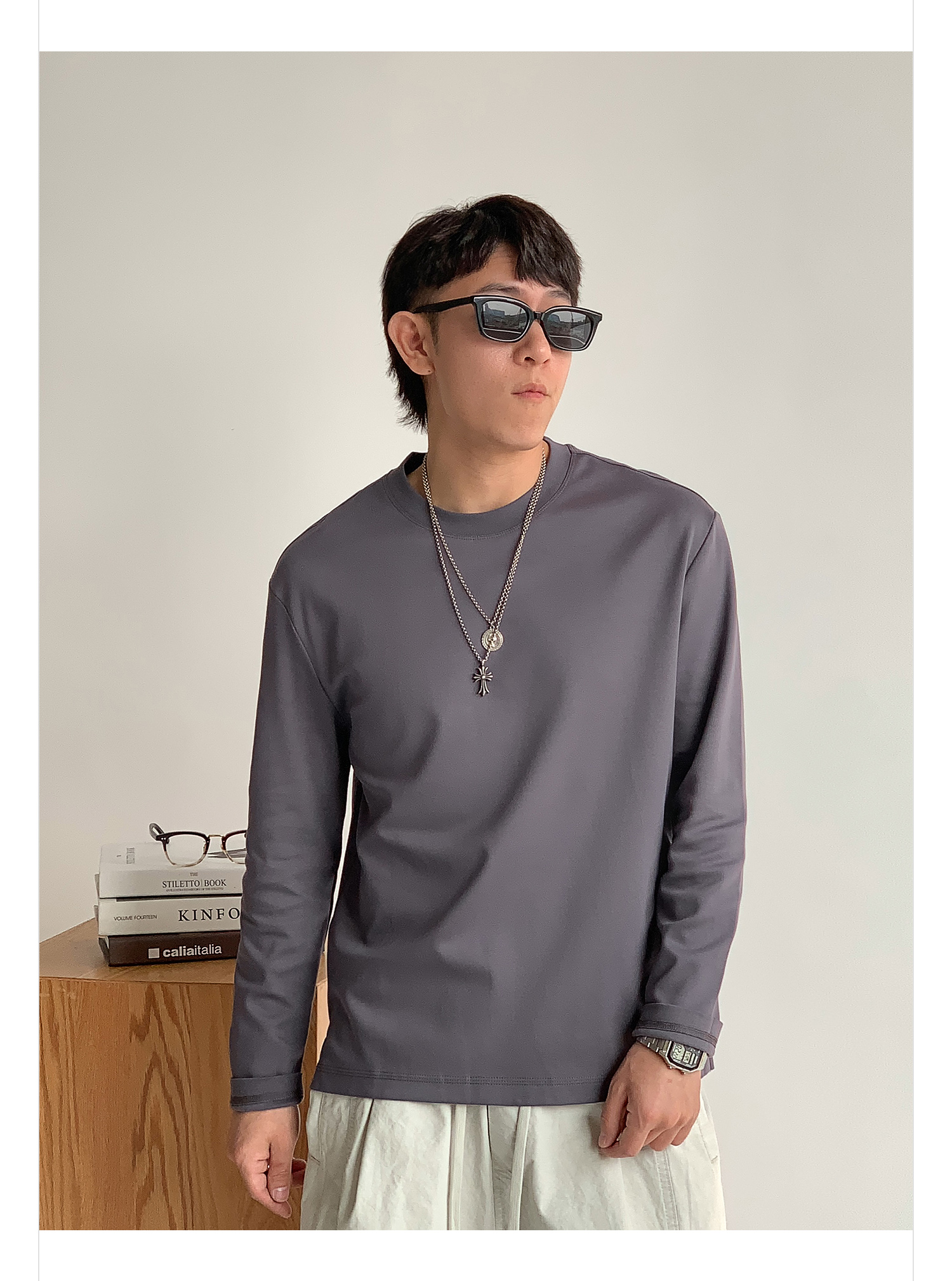 徐太浪260g透气纯棉基础款长袖T恤男夏季宽松休闲圆领打底衫上衣